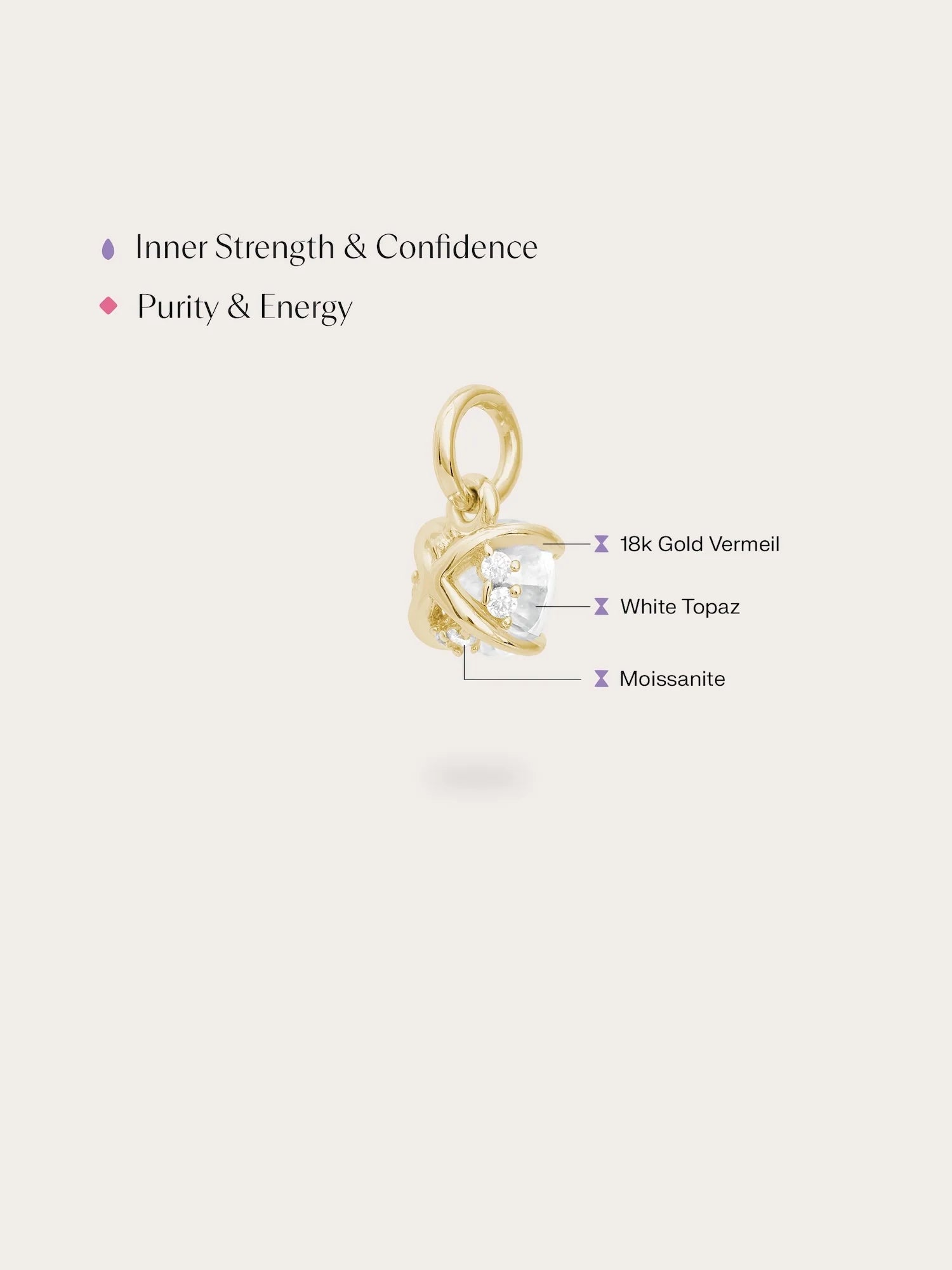 The April Birthstone Charm showcases a natural, diamond-cut white topaz, set in a charm inspired by the timeless “XO” symbol of hugs and kisses - symbolizing love and connection.