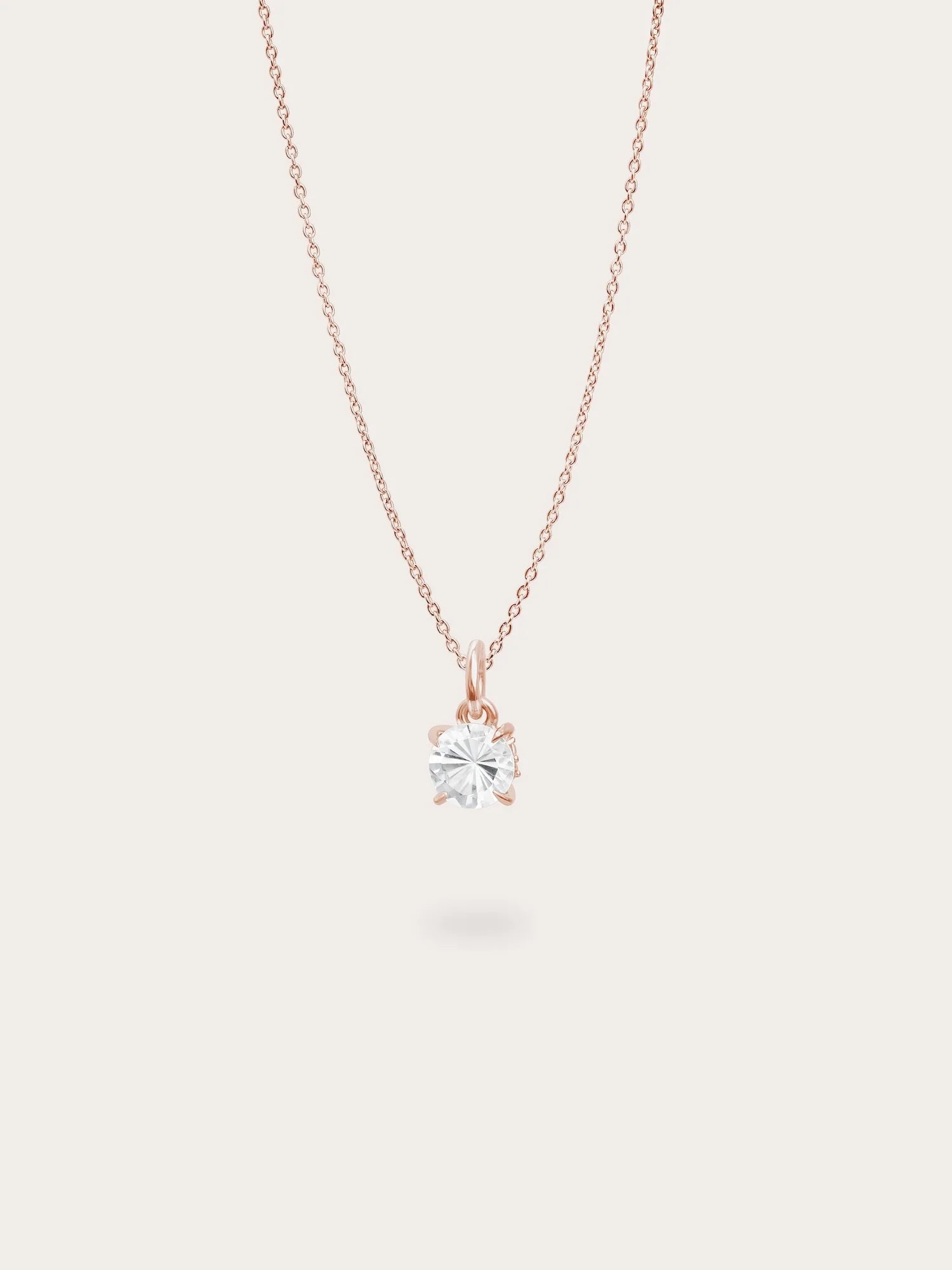 Adding a modern twist, the pendant features a hidden "X" design on the back. Accent moissanite stones are delicately set to peek out from beneath the focal stone. These embellishments create a dazzling profile, adding depth and brilliance to this meaningful piece. Handcrafted in 18k rose gold vermeil.
