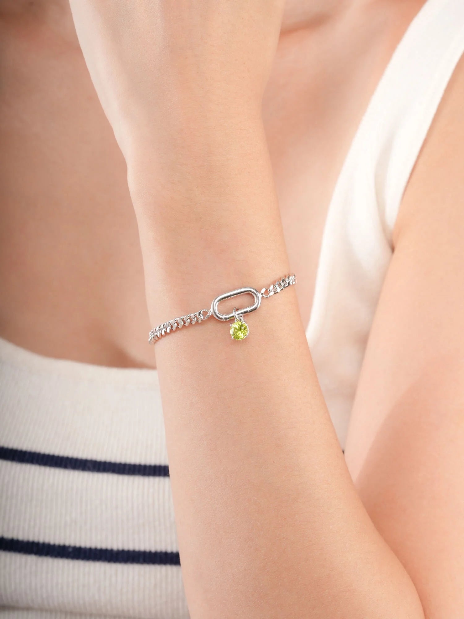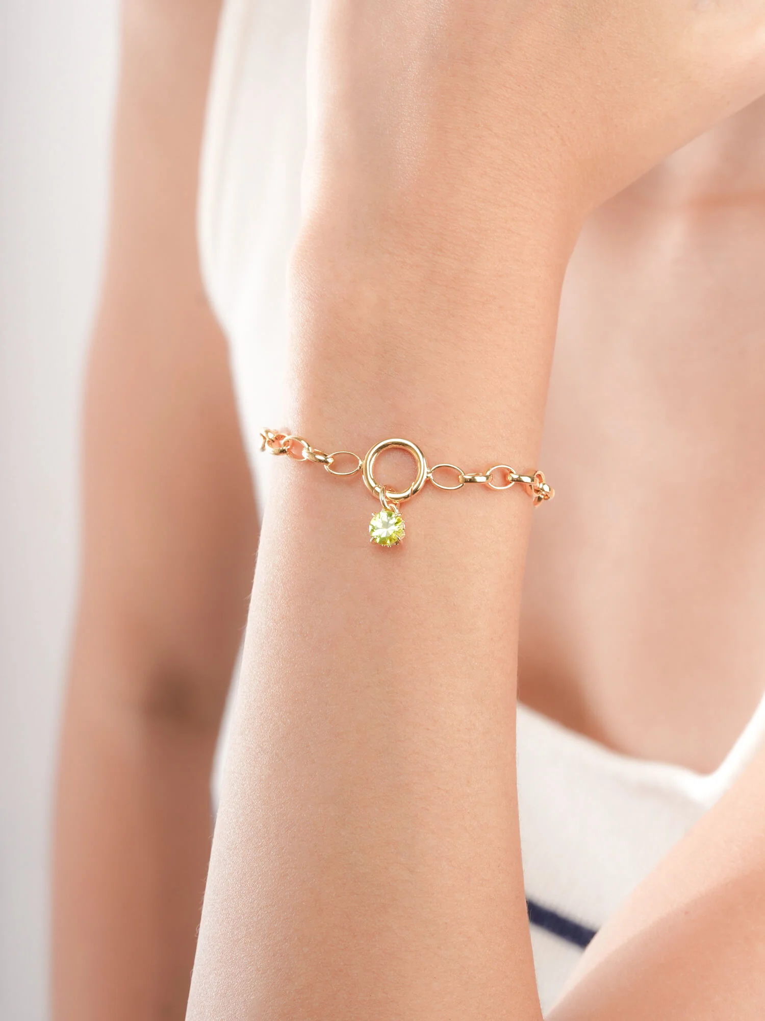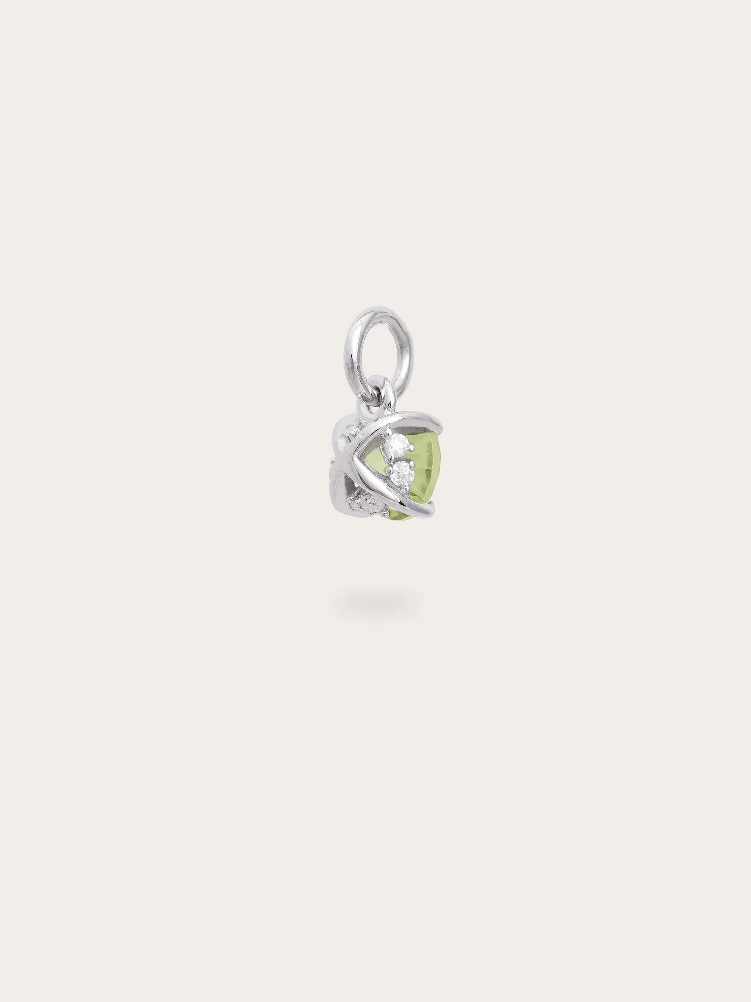 This birthstone charm features a natural, diamond-cut peridot. It's set in a charm inspired by a classic symbol representing love and connection.