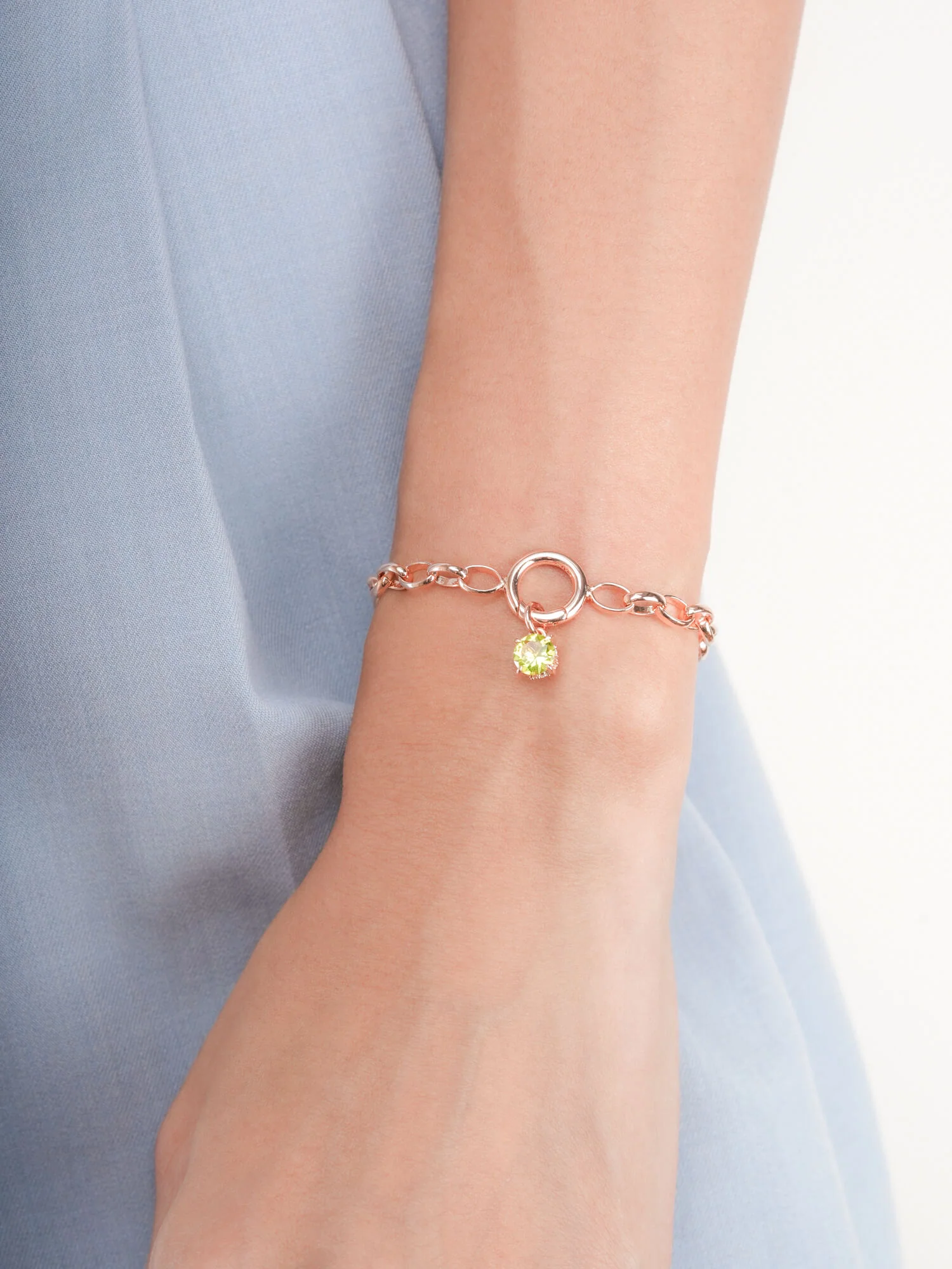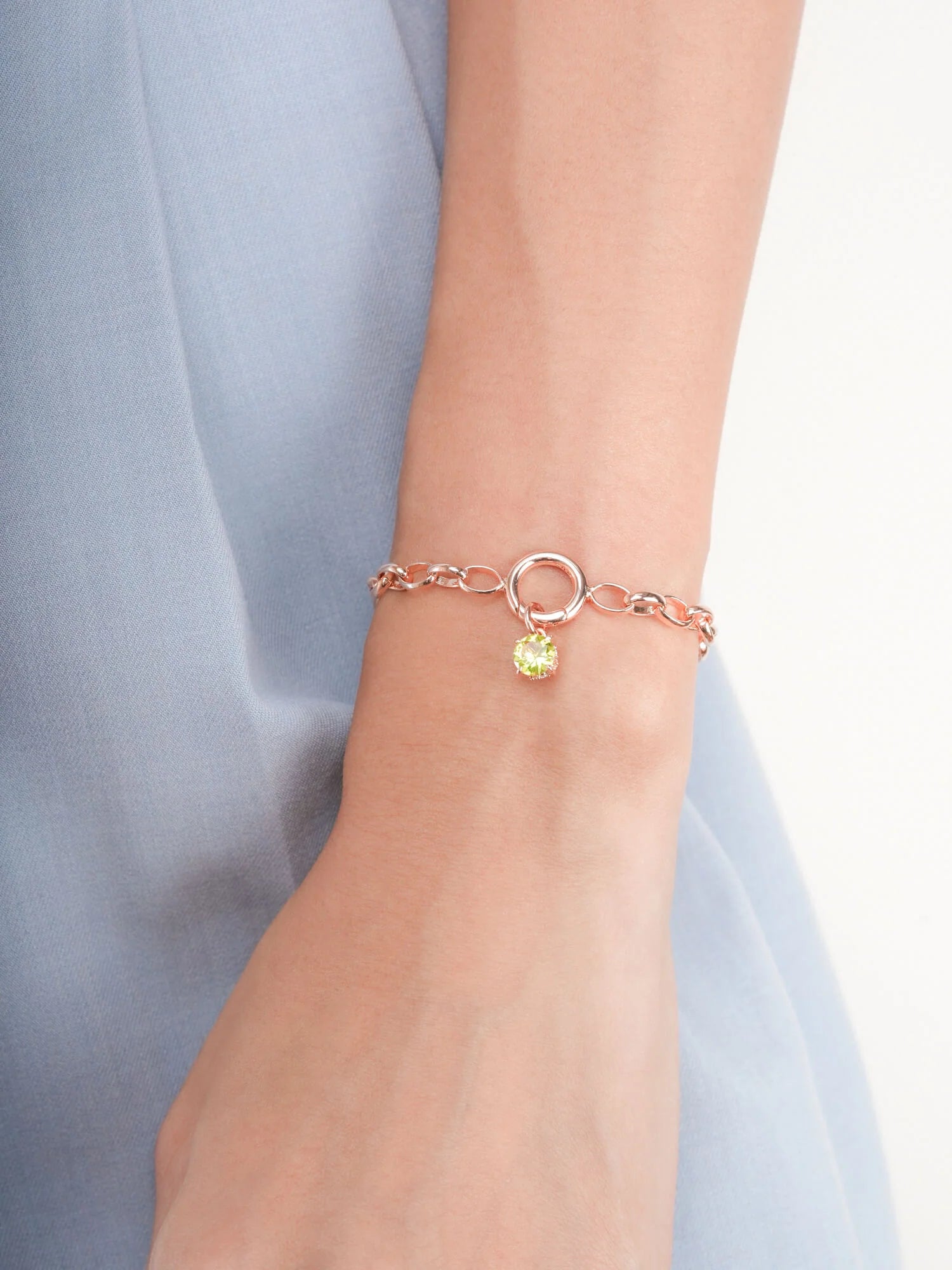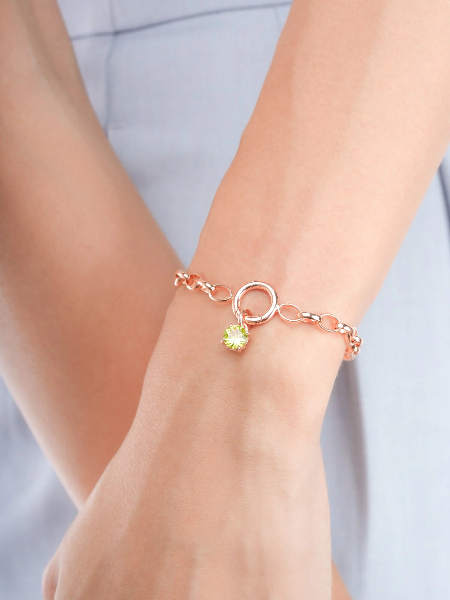 This birthstone charm features a natural, diamond-cut peridot. It's set in a charm inspired by a classic symbol representing love and connection.