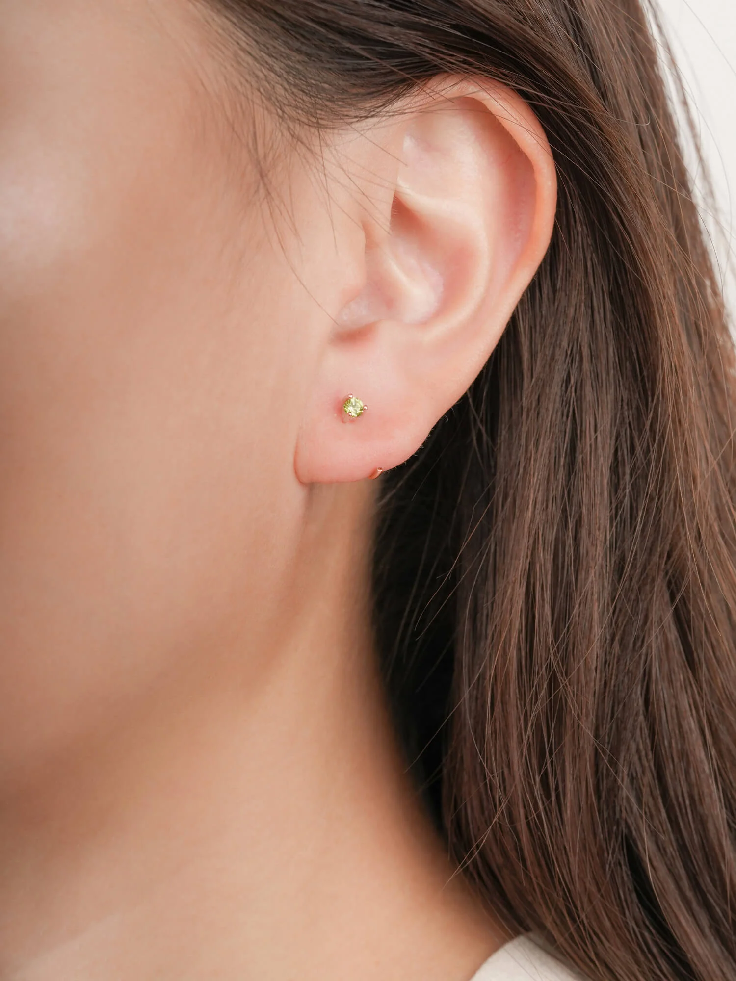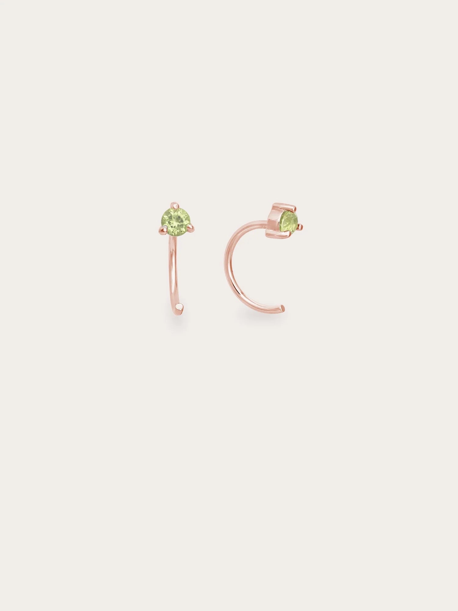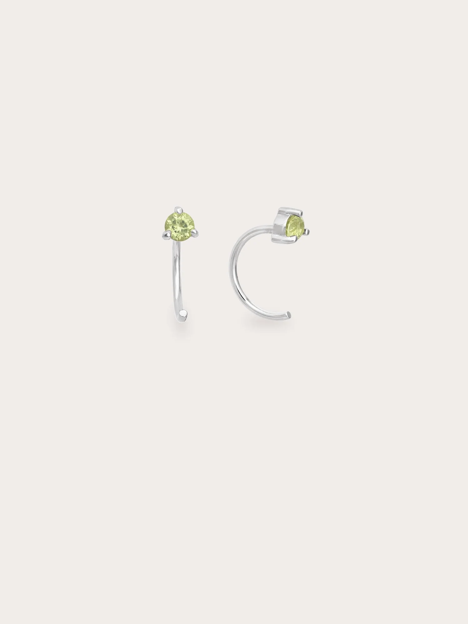 These mini hoop earrings feature natural peridot stones. Ideal for daily wear, these open hoops are easy to put on, lightweight, versatile, and comfortable. They're suitable for the 1st, 2nd, and 3rd piercings. Handmade with 18k gold vermeil.