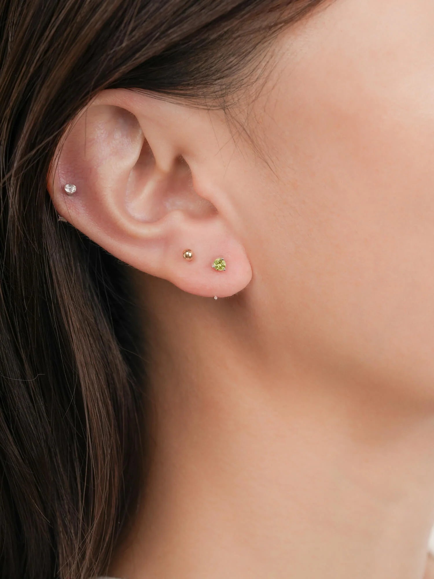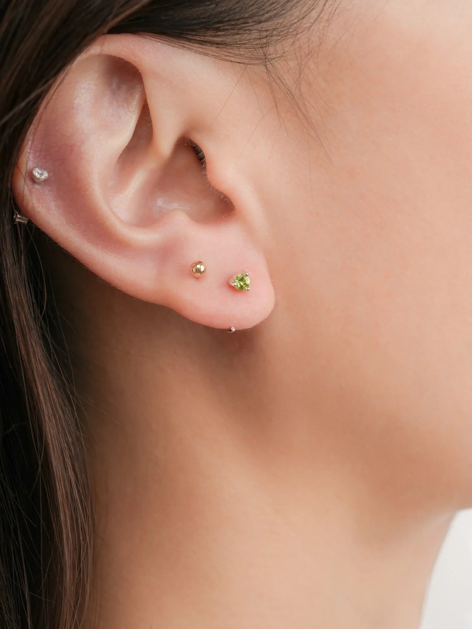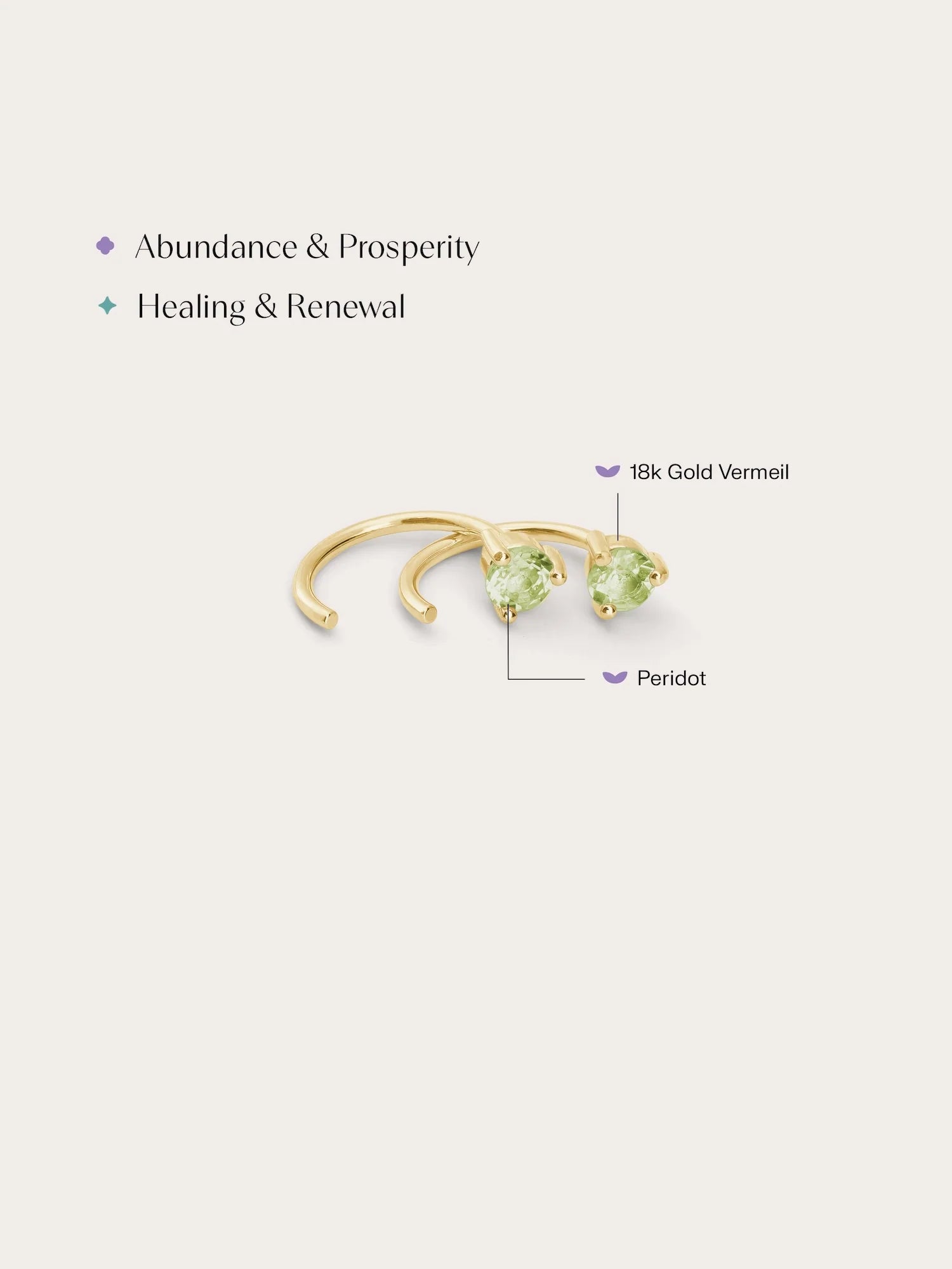 These mini hoop earrings feature natural peridot stones. Ideal for daily wear, these open hoops are easy to put on, lightweight, versatile, and comfortable. They're suitable for the 1st, 2nd, and 3rd piercings. Handmade with 18k gold vermeil.
