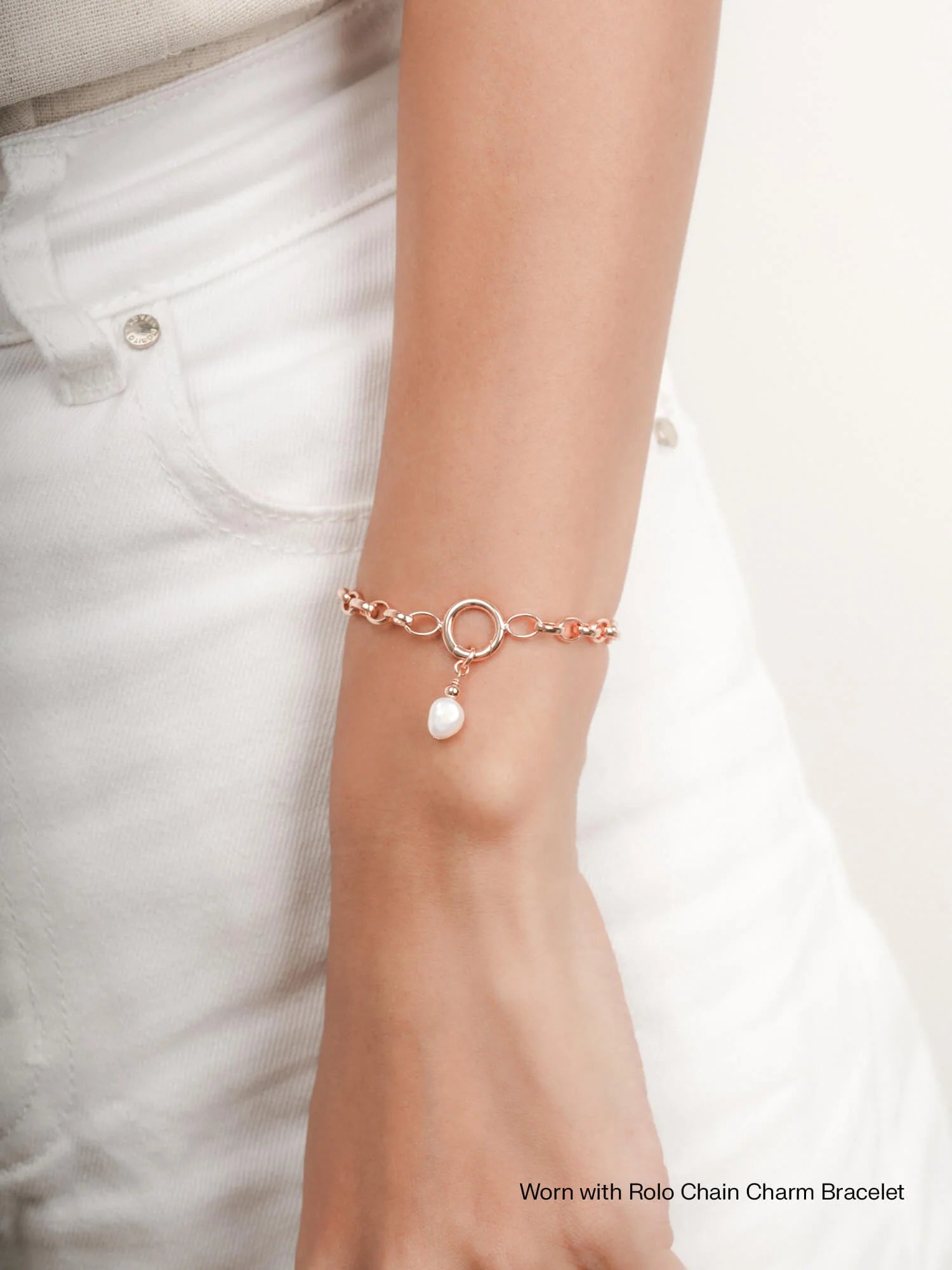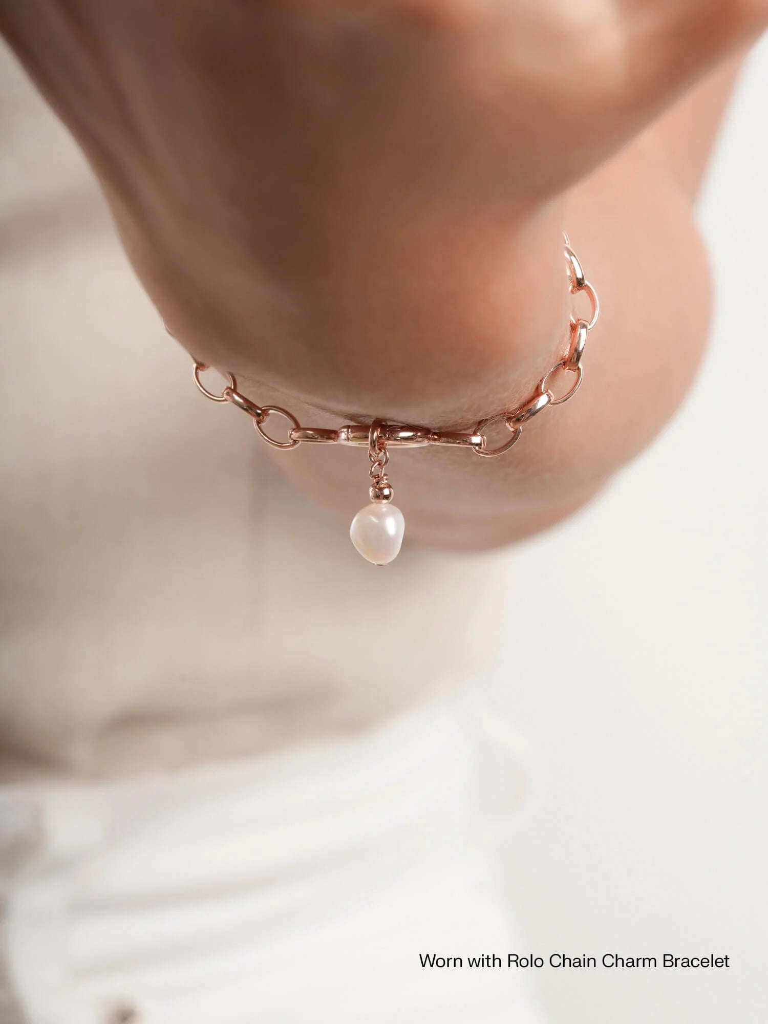 This baroque pearl drop ornament features a natural freshwater baroque pearl. Each pearl is unique, displaying the natural beauty of its imperfections. It is hand - crafted with 18k rose gold vermeil.