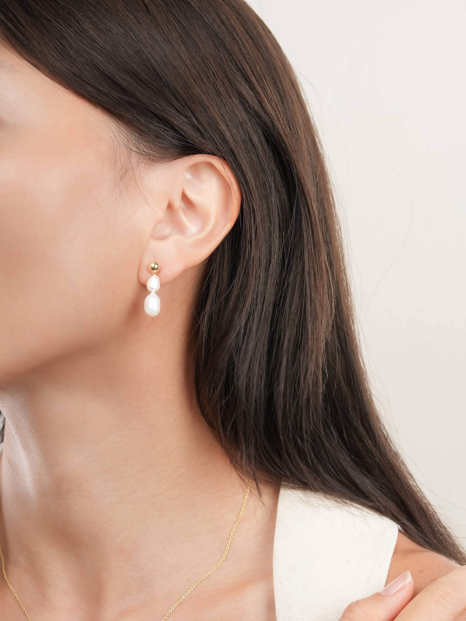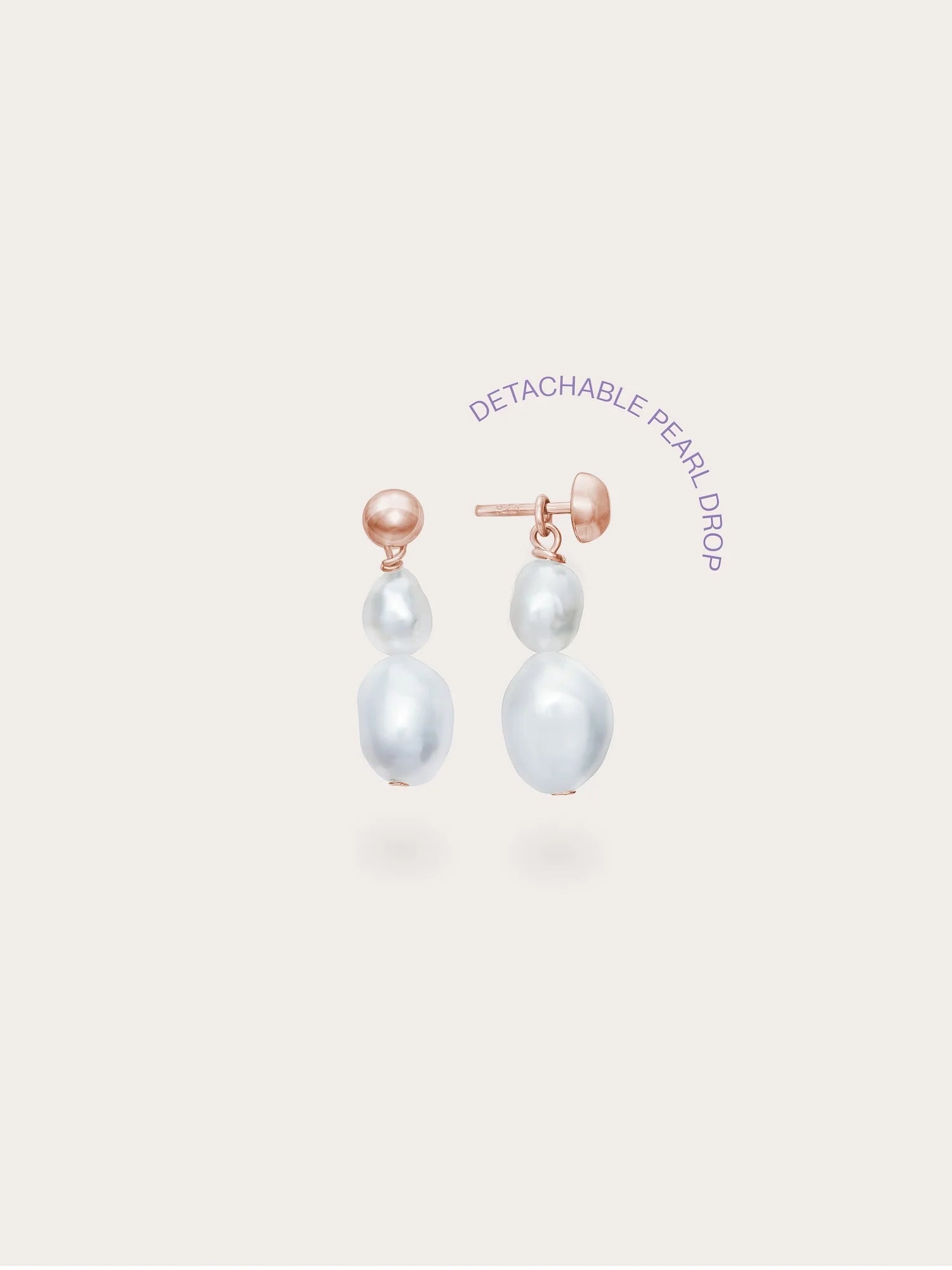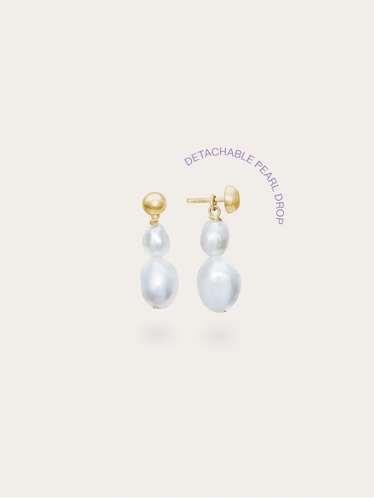 Experience luxury and versatility with these Baroque Pearl Two-Way Drop Earrings. Designed with detachable baroque pearl dangles, effortlessly transition between minimalist metal studs and an elegant drop style, making them ideal for any occasion. Handcrafted in 18k gold vermeil.