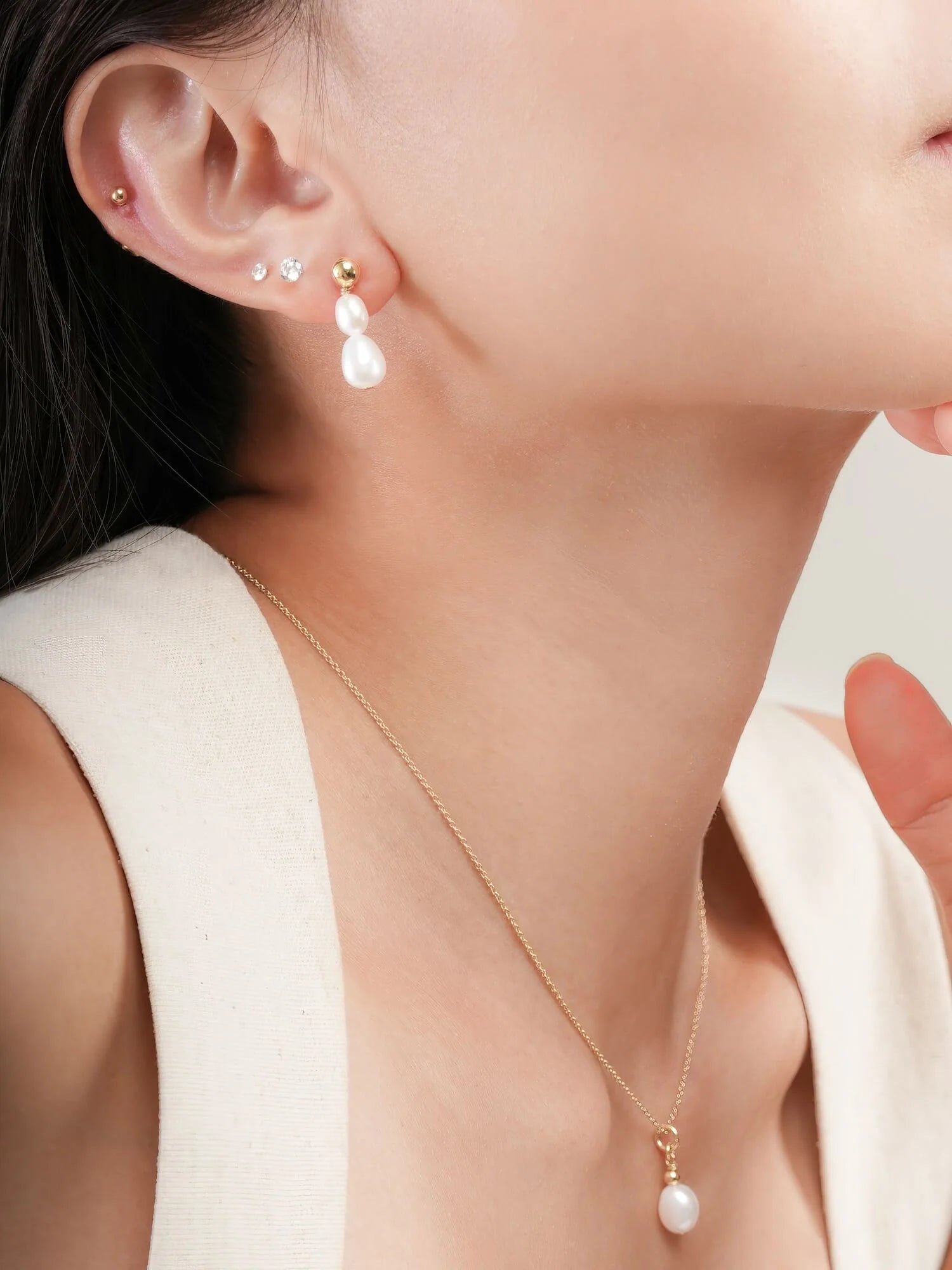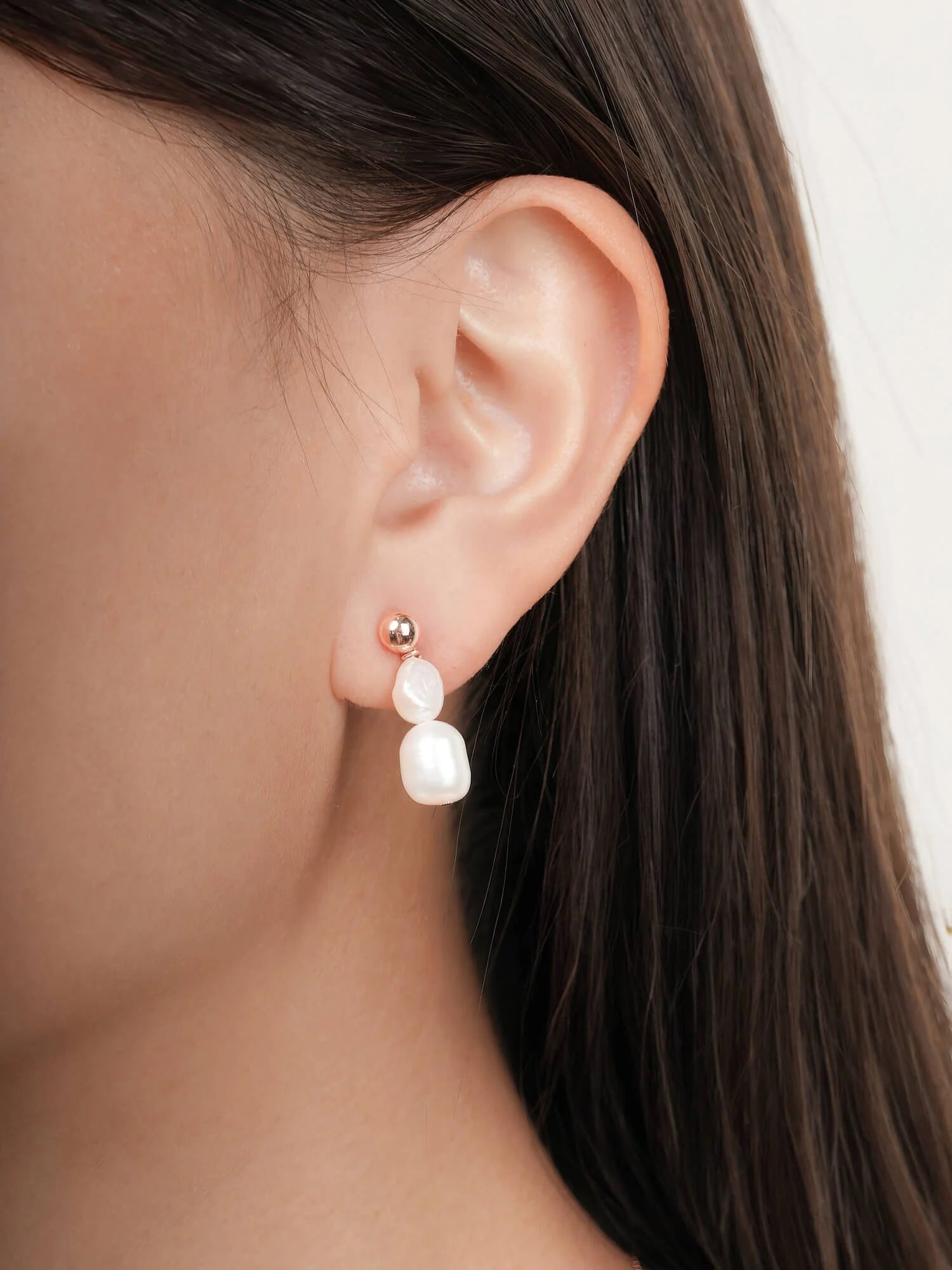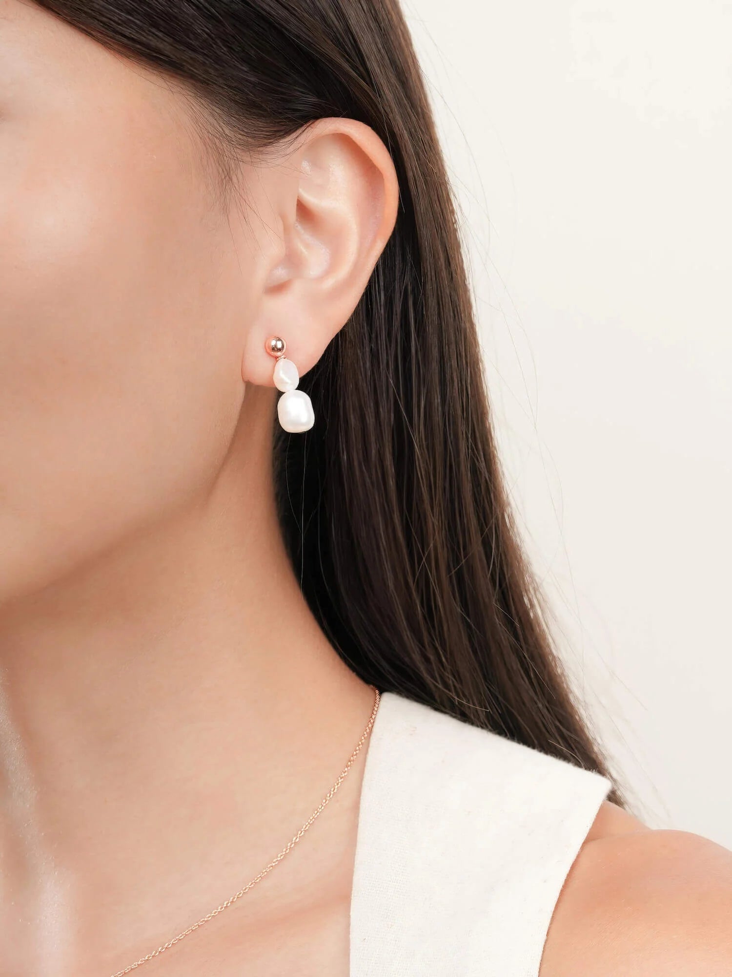 Experience luxury and versatility with these Baroque Pearl Two-Way Drop Earrings. Designed with detachable baroque pearl dangles, effortlessly transition between minimalist metal studs and an elegant drop style, making them ideal for any occasion. Handcrafted in 18k gold vermeil.