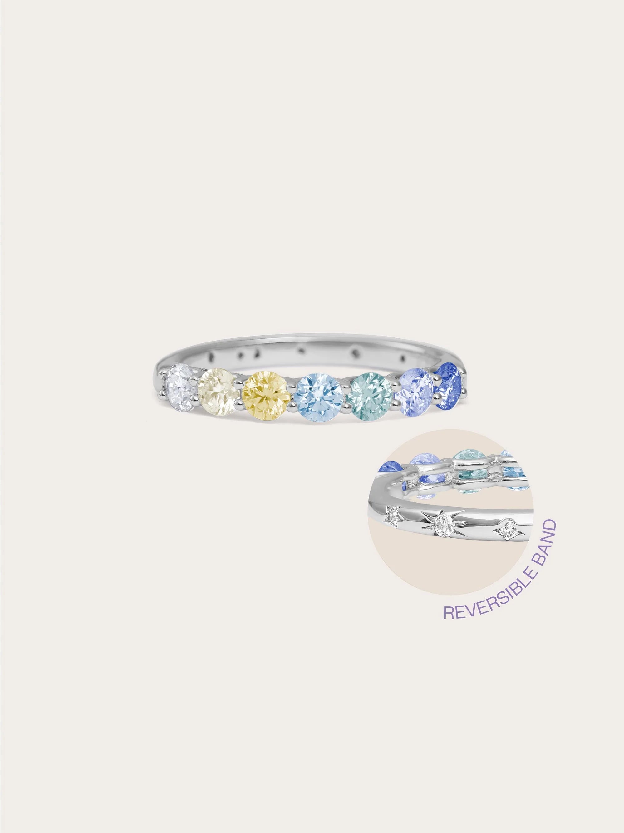 Its reversible design gives you two rings in one. The other side showcases a sparkly night scene with faint moon and star glimmers.