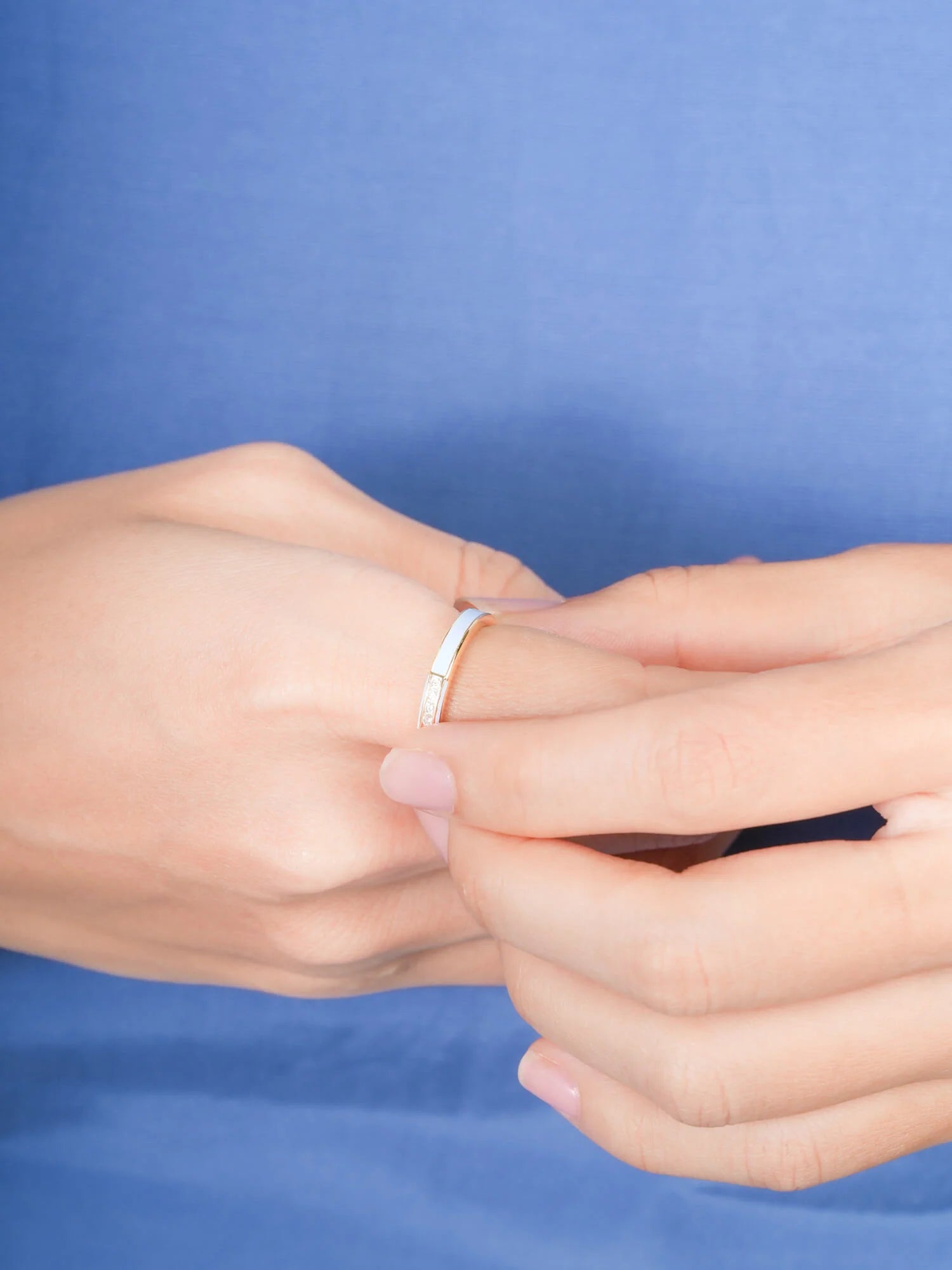 This enamel moissanite ring is both elegant and fun. It can be stacked with other rings or worn alone. Whether you show the pastel enamel side or the sparkling moissanite side, it always looks polished for daily wear.