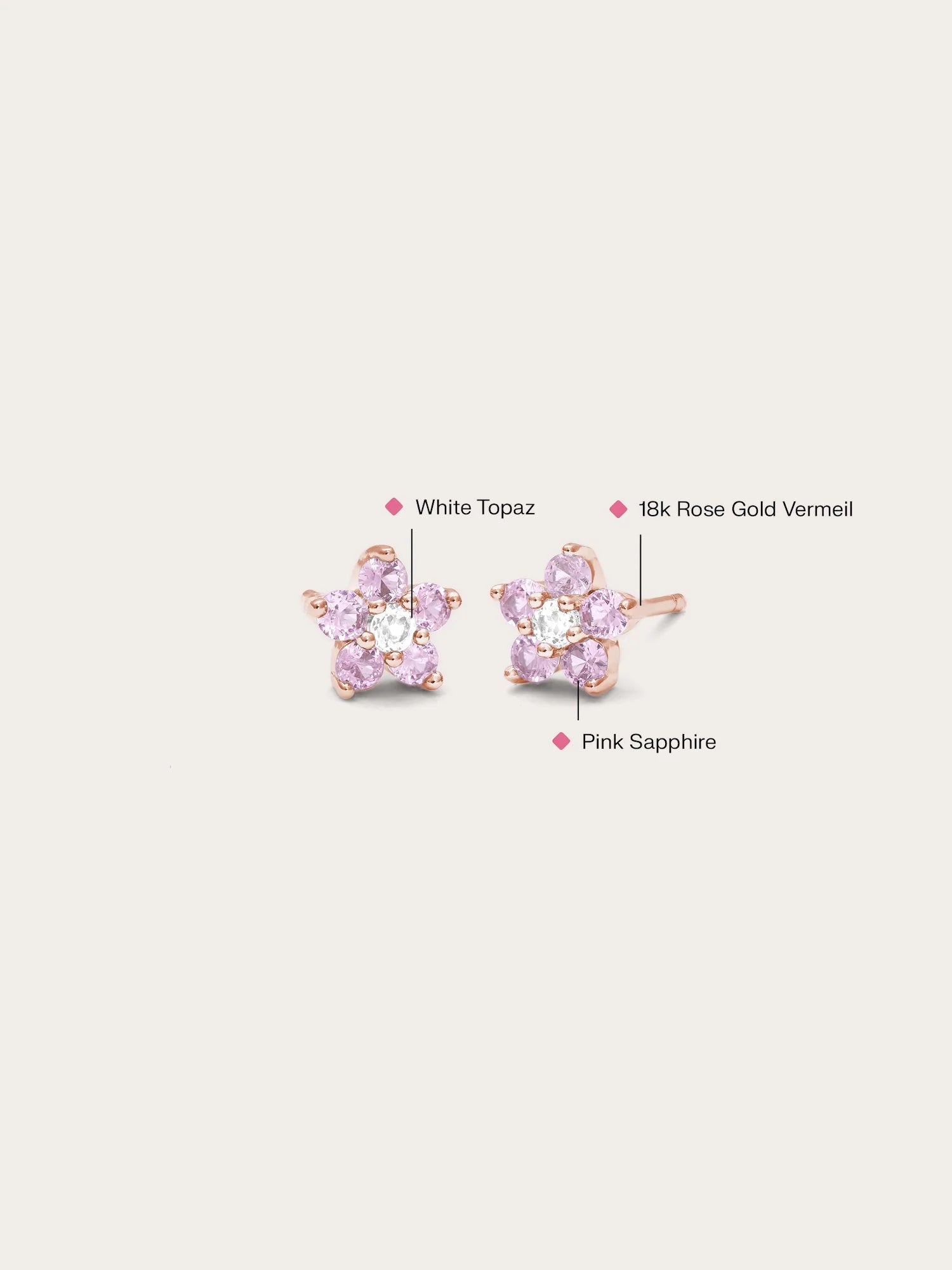 Celebrate the joy of new beginnings with the Blush Blossom Stud Earrings, inspired by the beauty of blooming flowers. Featuring five radiant pink sapphires, these earrings symbolize the arrival of good fortune and grace. Handcrafted in 18k rose gold vermeil.