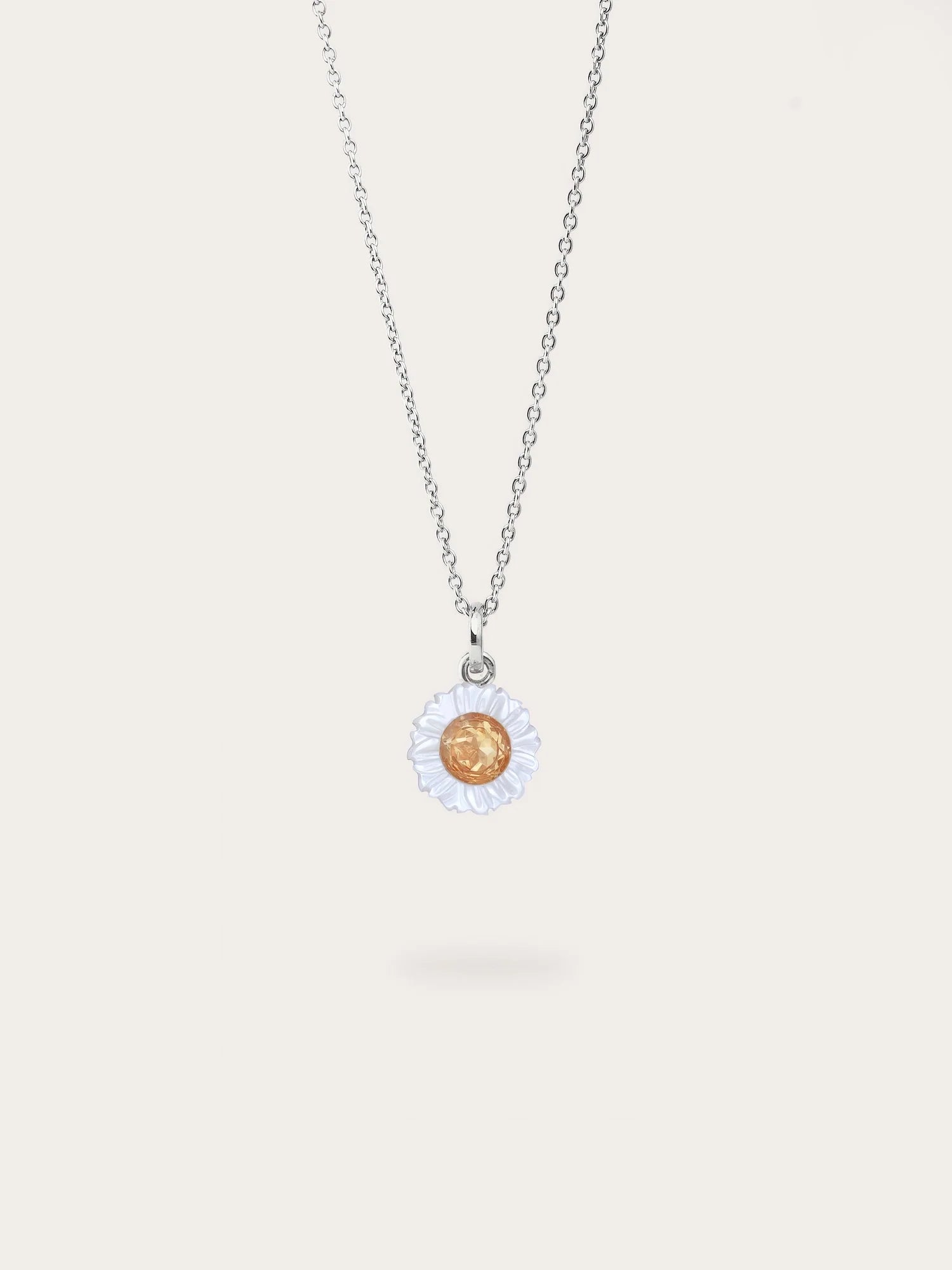 This carved flower necklace is exquisitely hand-carved from a special shell material and features a shiny gemstone. It's handcrafted with a gold-plated finish.