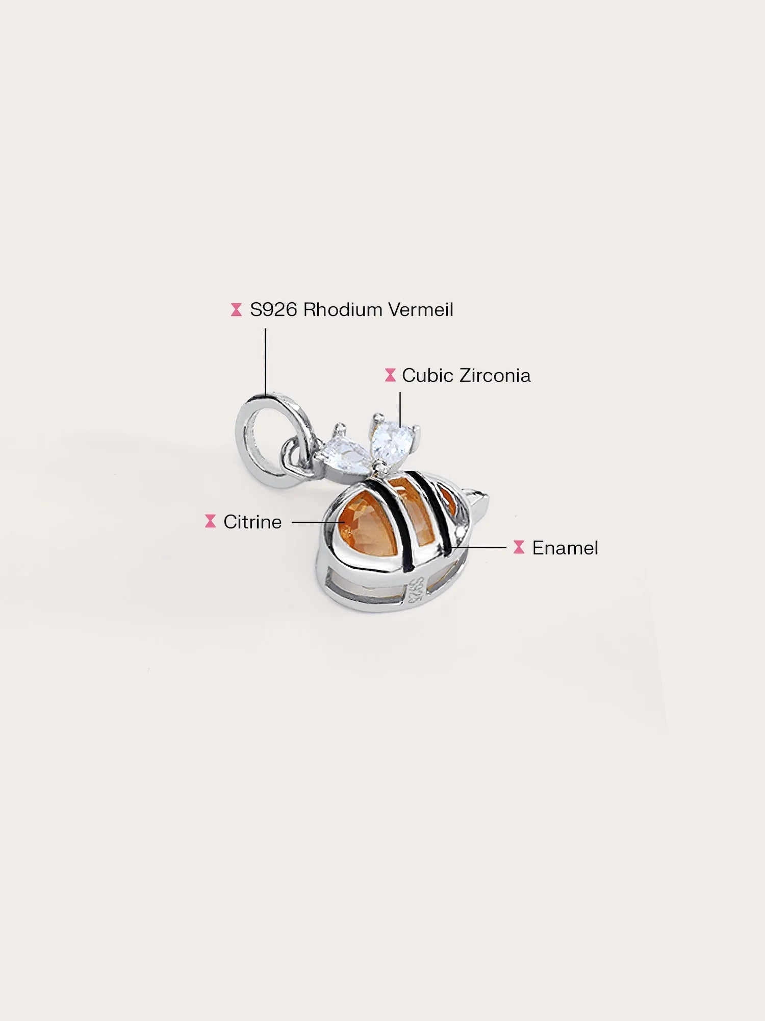 This citrine bee ornament comes with a beautifully designed bee pendant set with a citrine stone. It's hand - crafted using a special rhodium - plated sterling silver material.