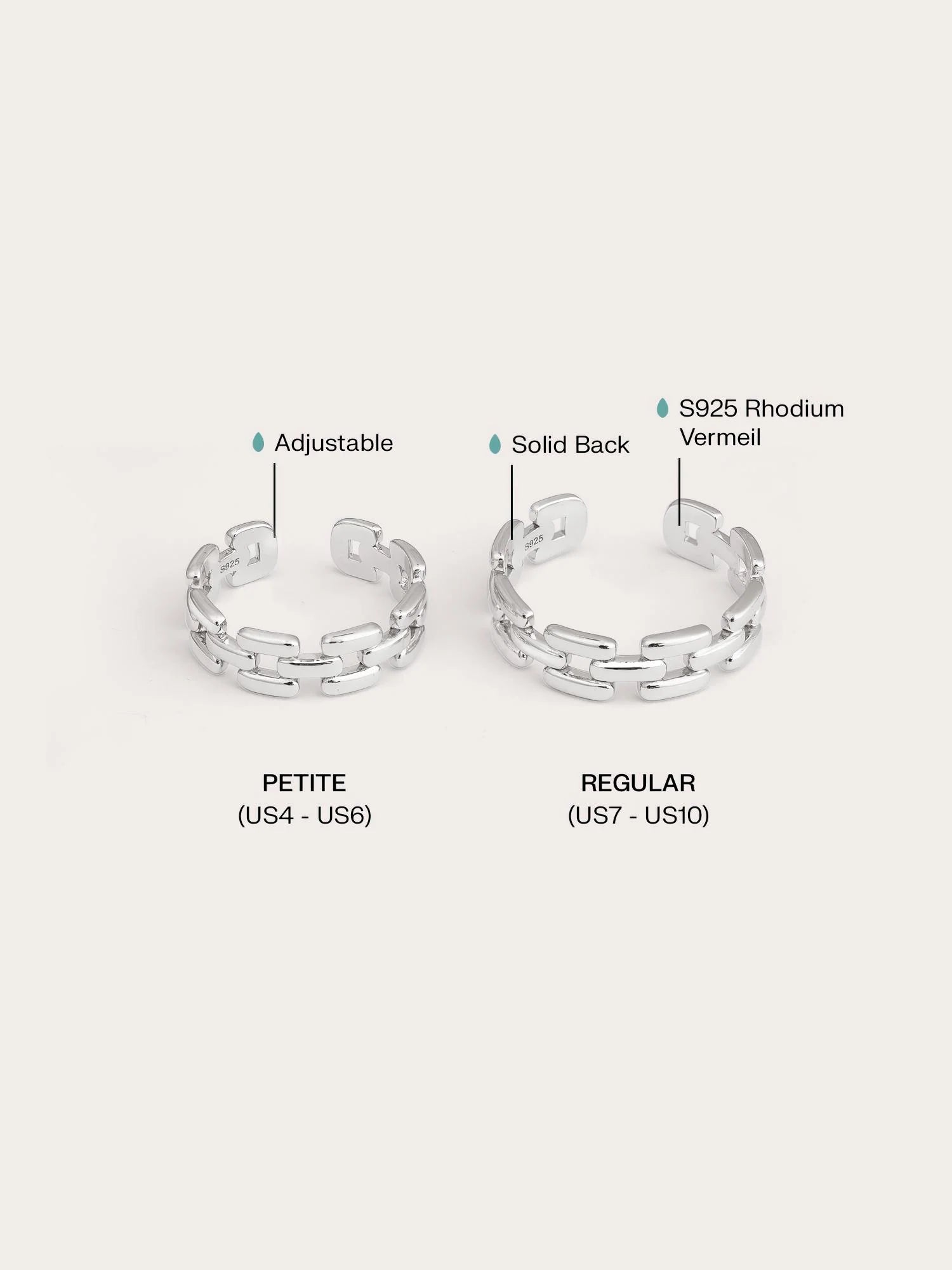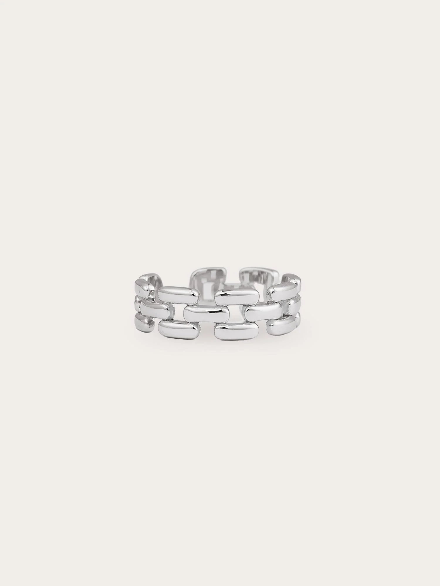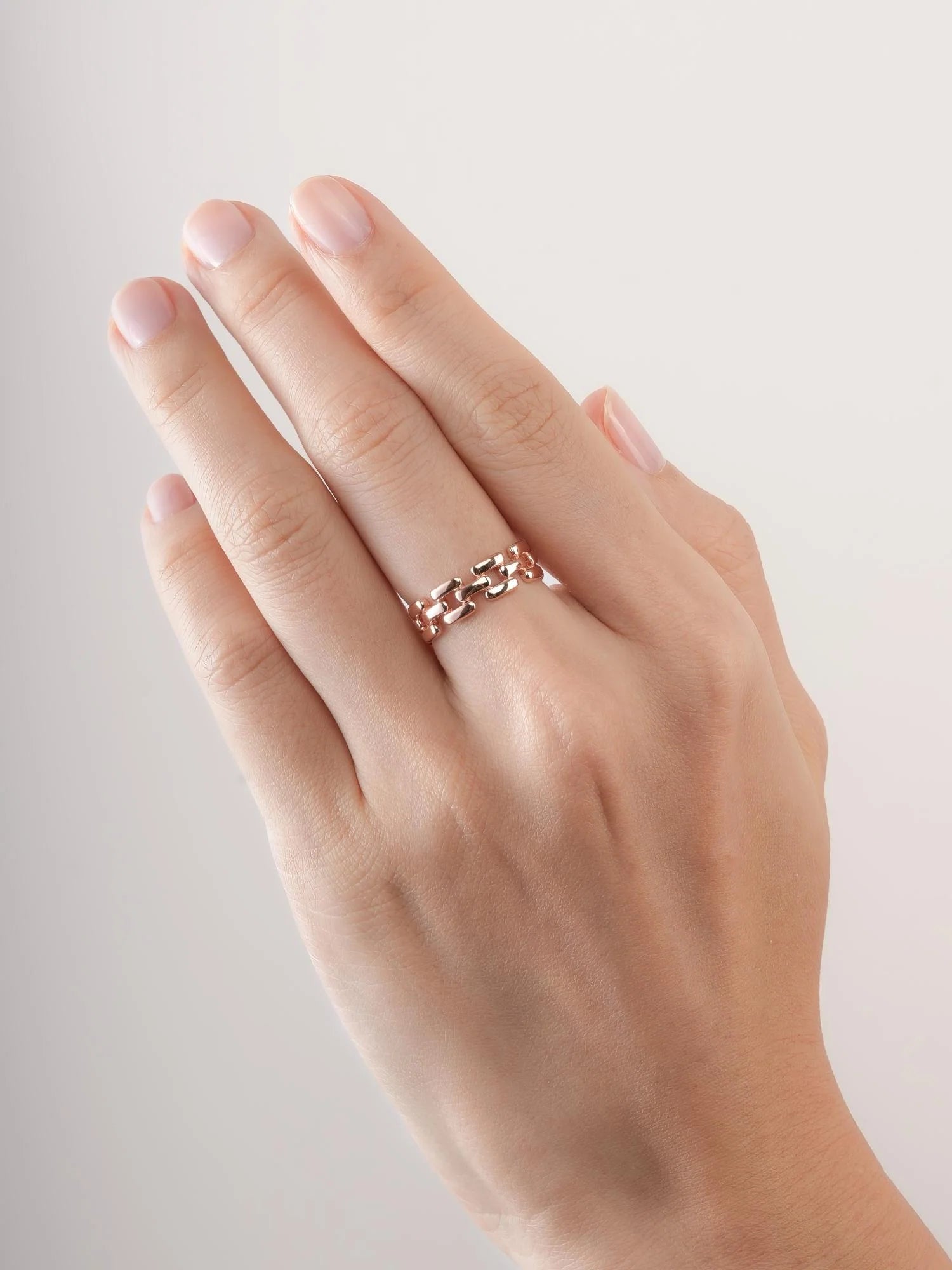 This ring features chain links inspired by watches. It's ideal for daily wear, combining classic allure with modern fashion. Handmade in 18k gold vermeil.