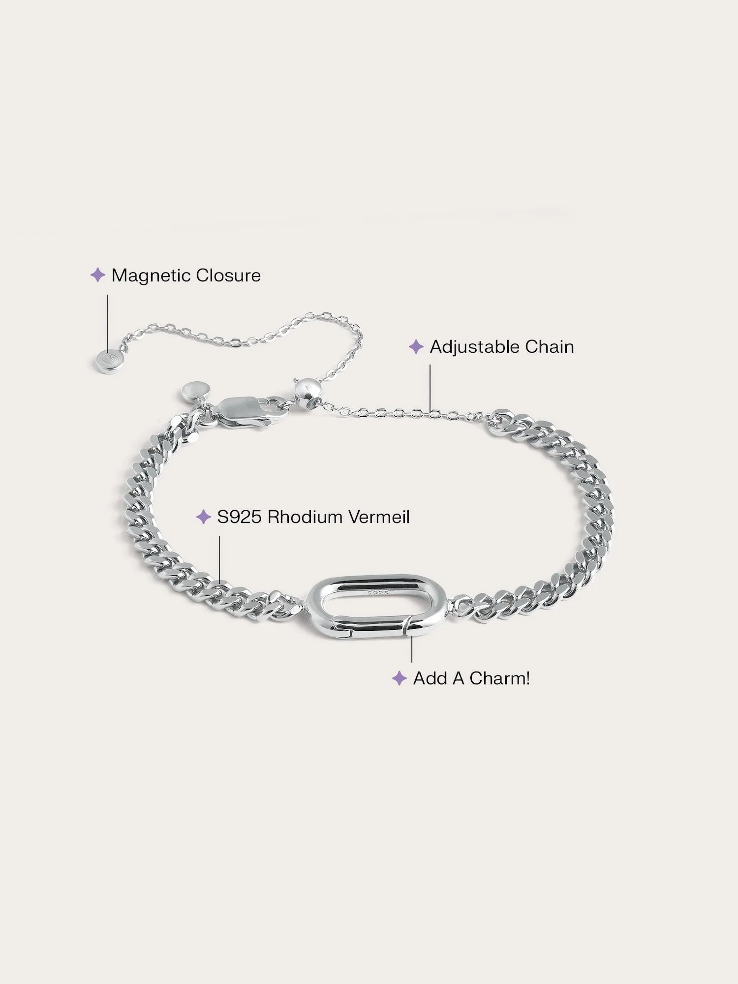 Enhance your bracelet collection with this curb chain charm bracelet. It is hand - crafted with a special plating on silver.