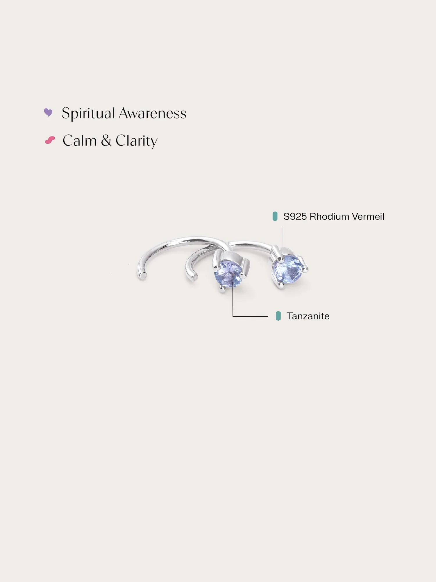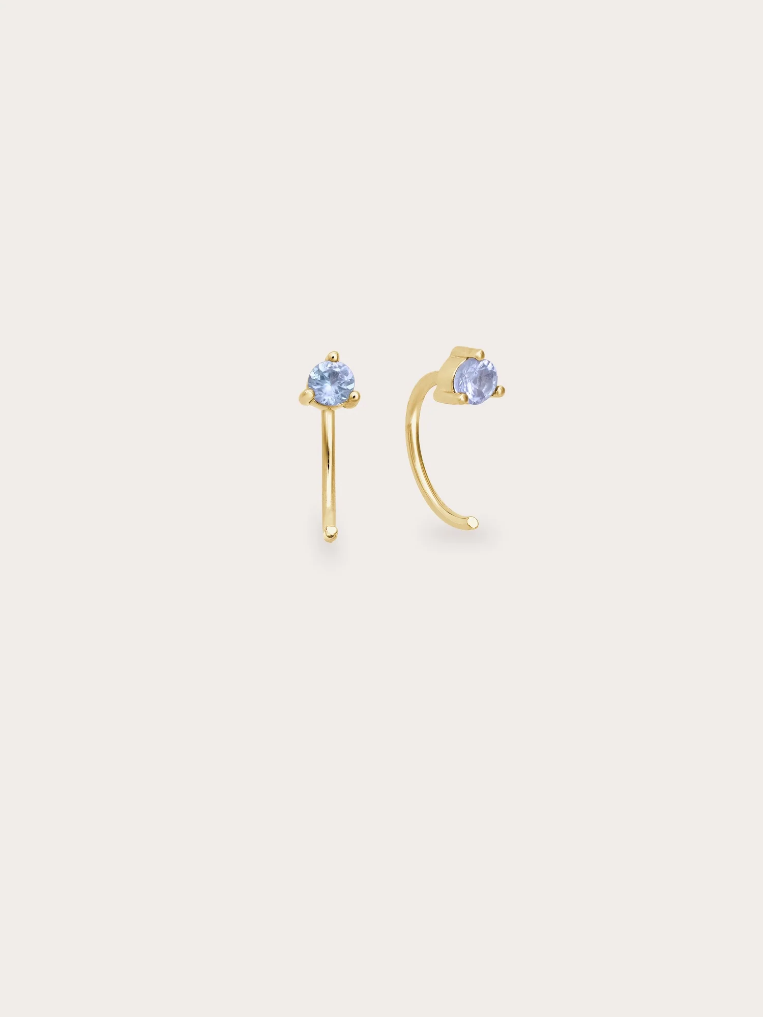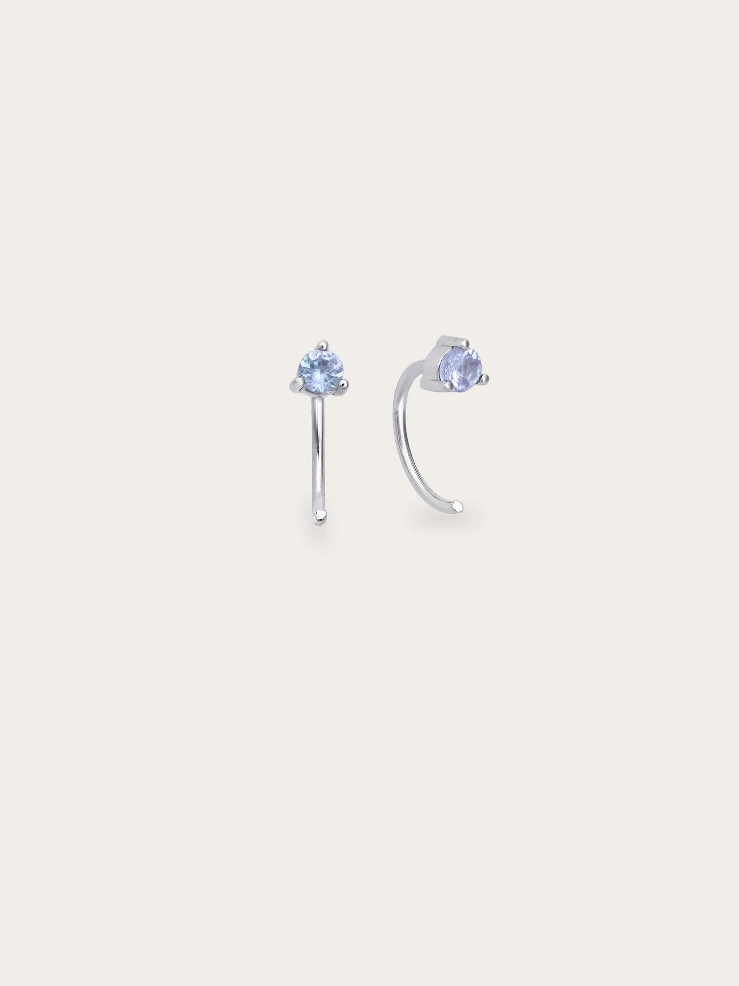 These mini hoop earrings feature natural blue gemstones. Ideal for daily wear, these open hoops are easy to wear, lightweight, adaptable, and comfortable. They're suitable for the first, second, and third ear piercings. Handmade with a type of plated silver.