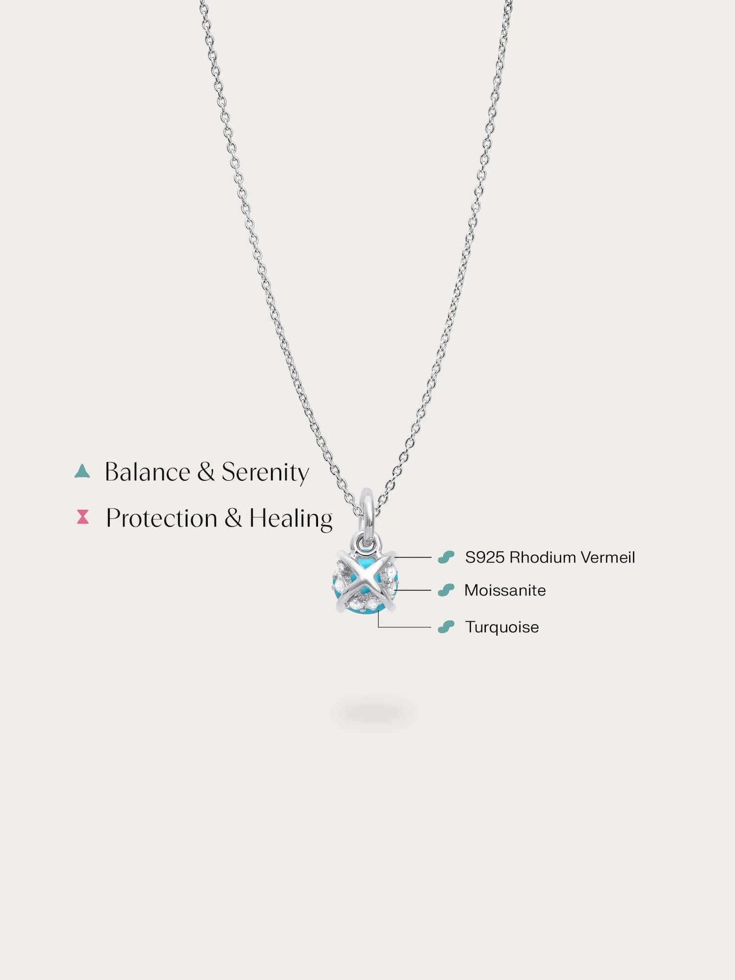 Adding a modern twist, the pendant features a hidden "X" design on the back. Accent moissanite stones are delicately set to peek out from beneath the focal stone. These embellishments create a dazzling profile, adding depth and brilliance to this meaningful piece. Handcrafted in S925 rhodium vermeil.
