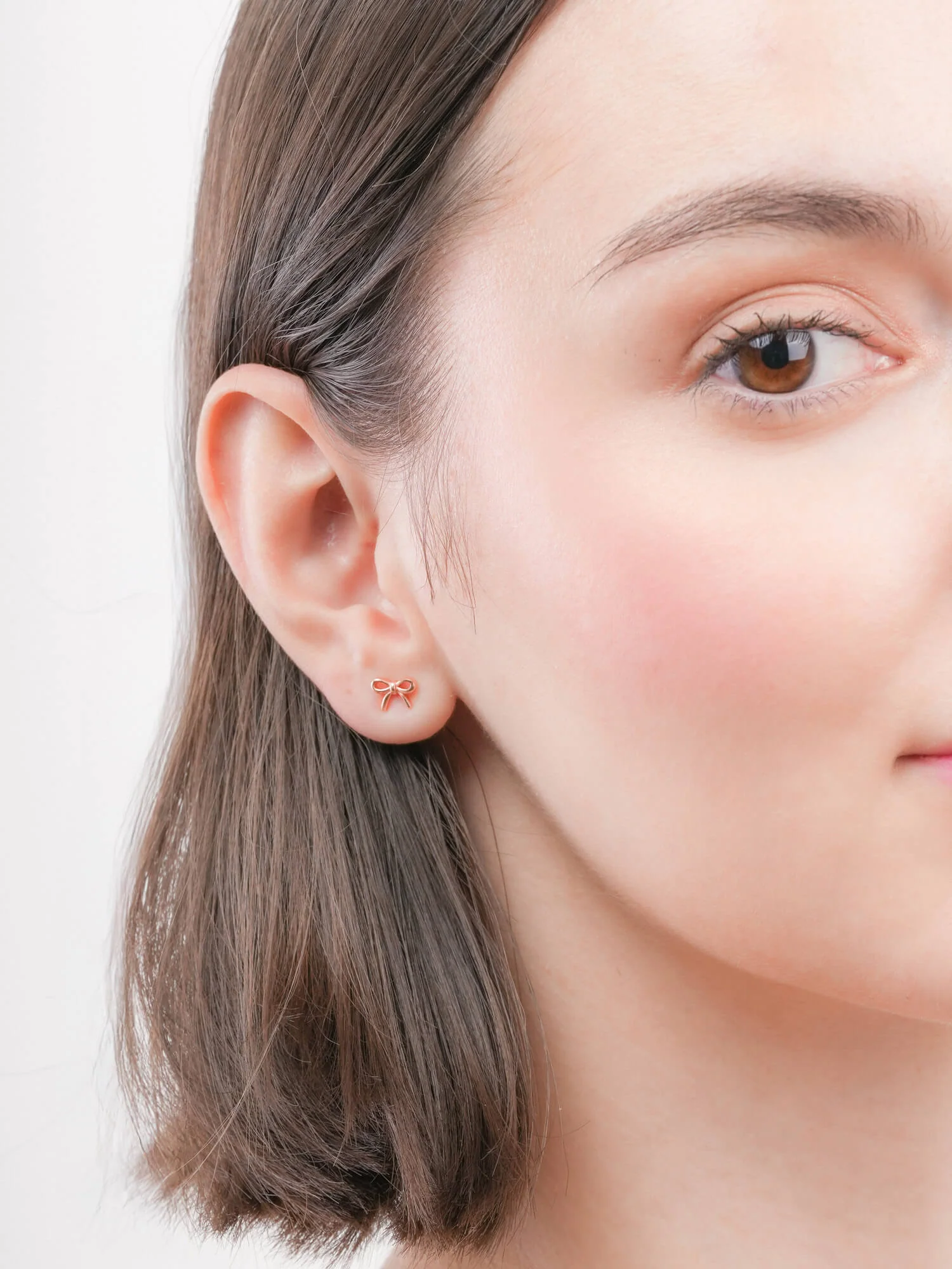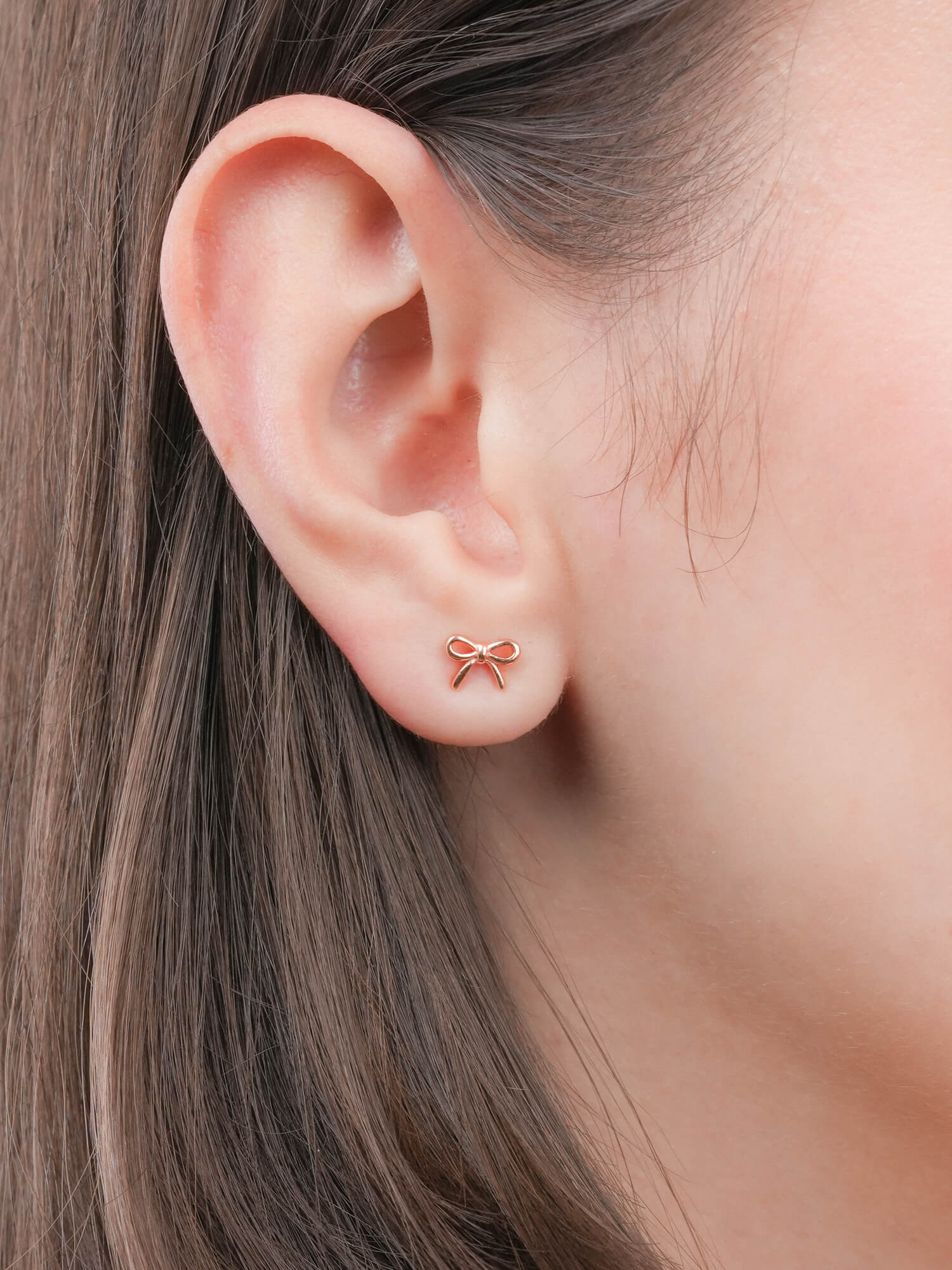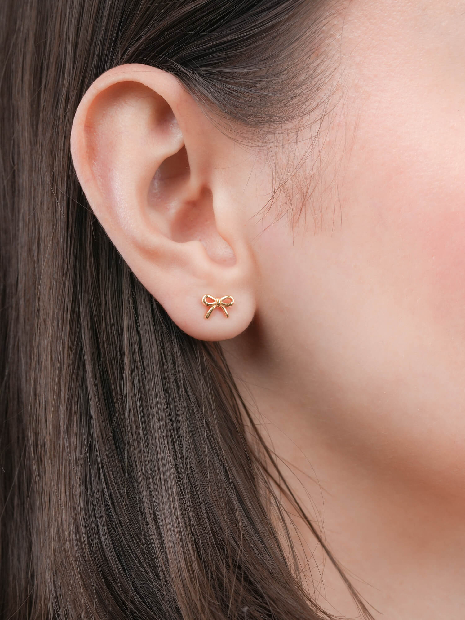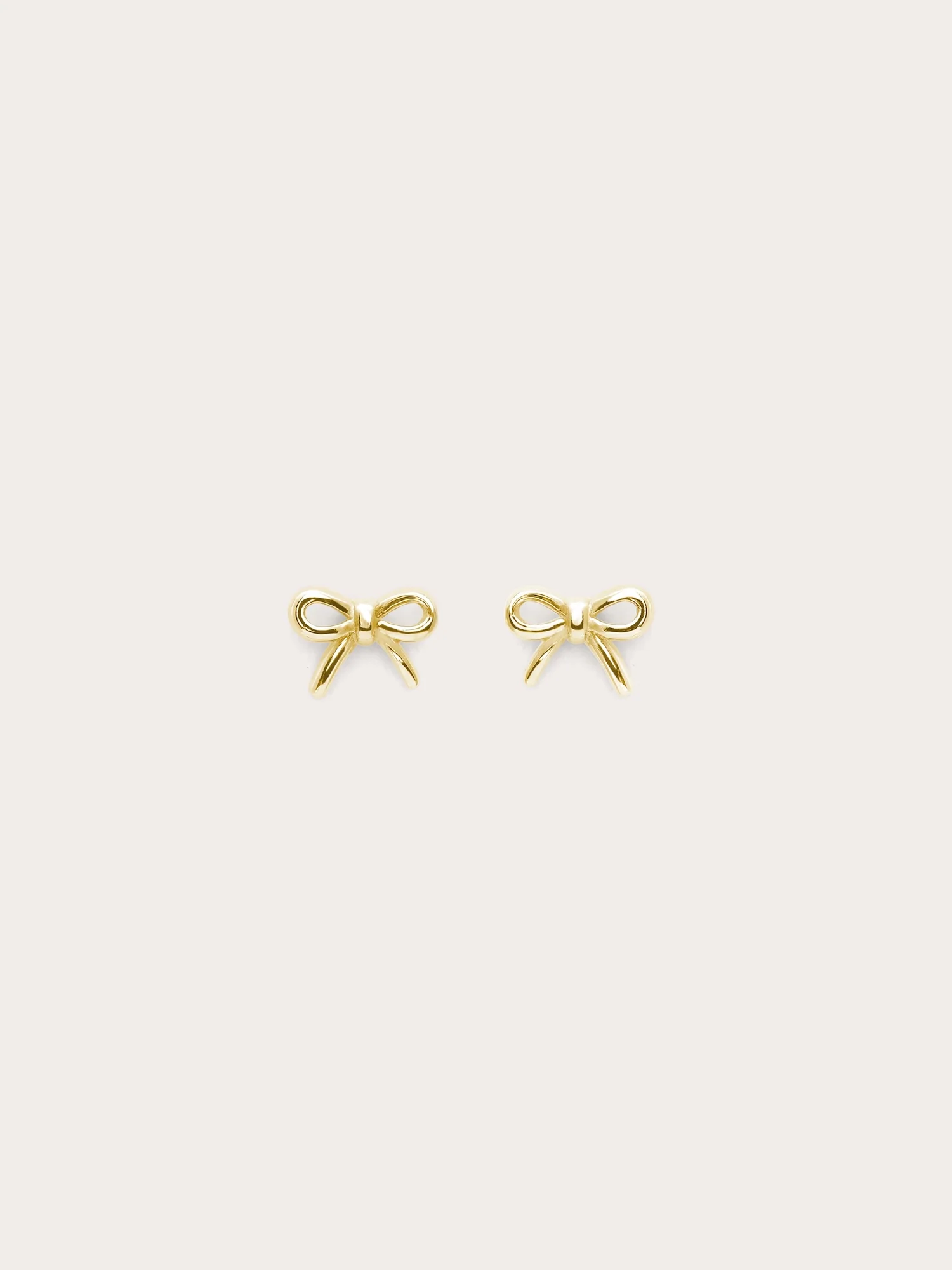 These delicate ribbon bow stud earrings showcase a fine ribbon design, symbolizing connections and important bonds. They are handcrafted in 18k gold vermeil.