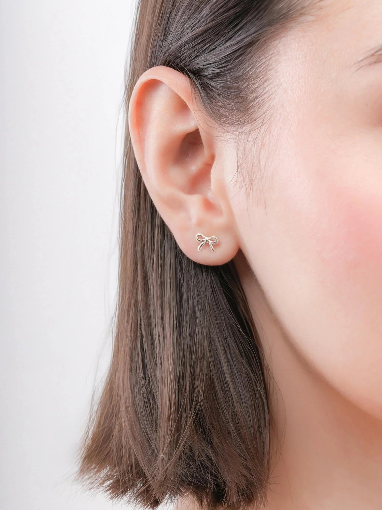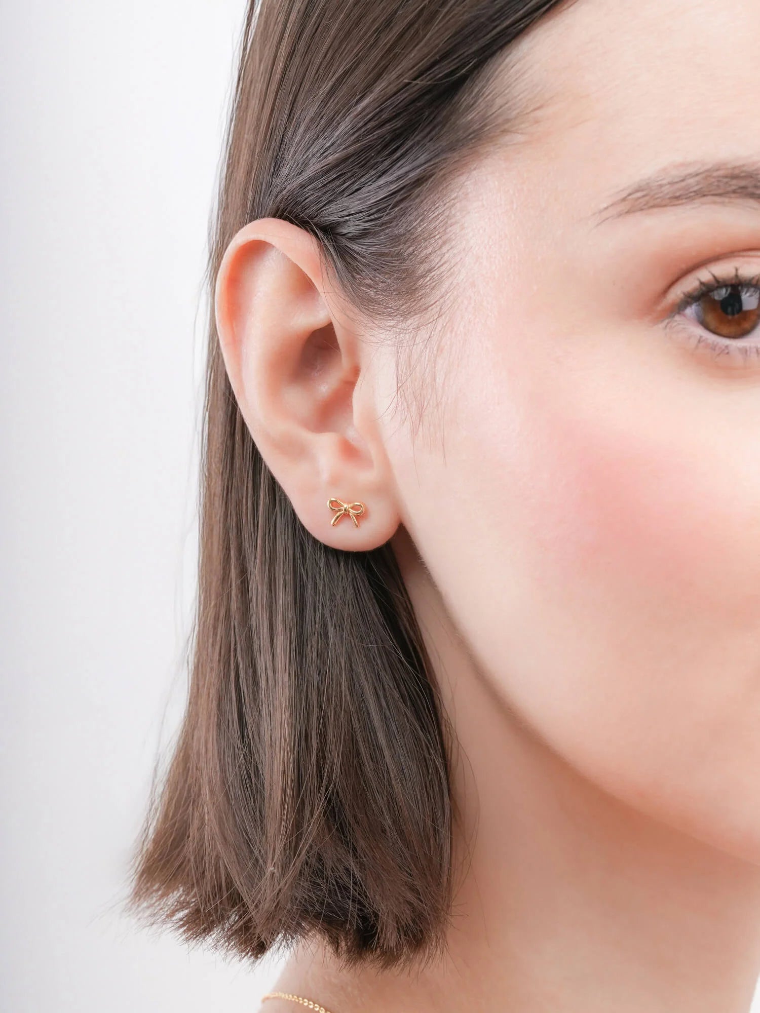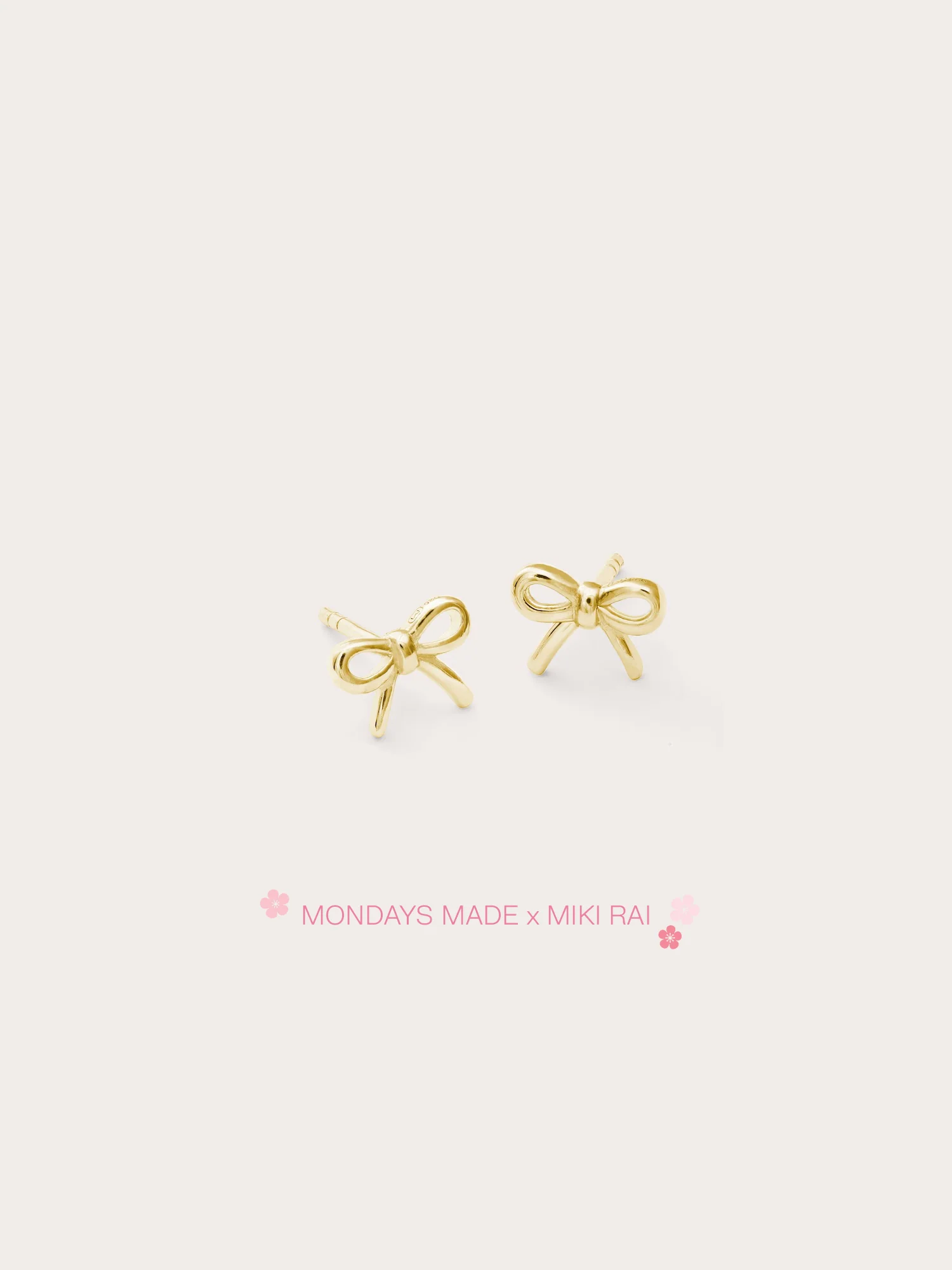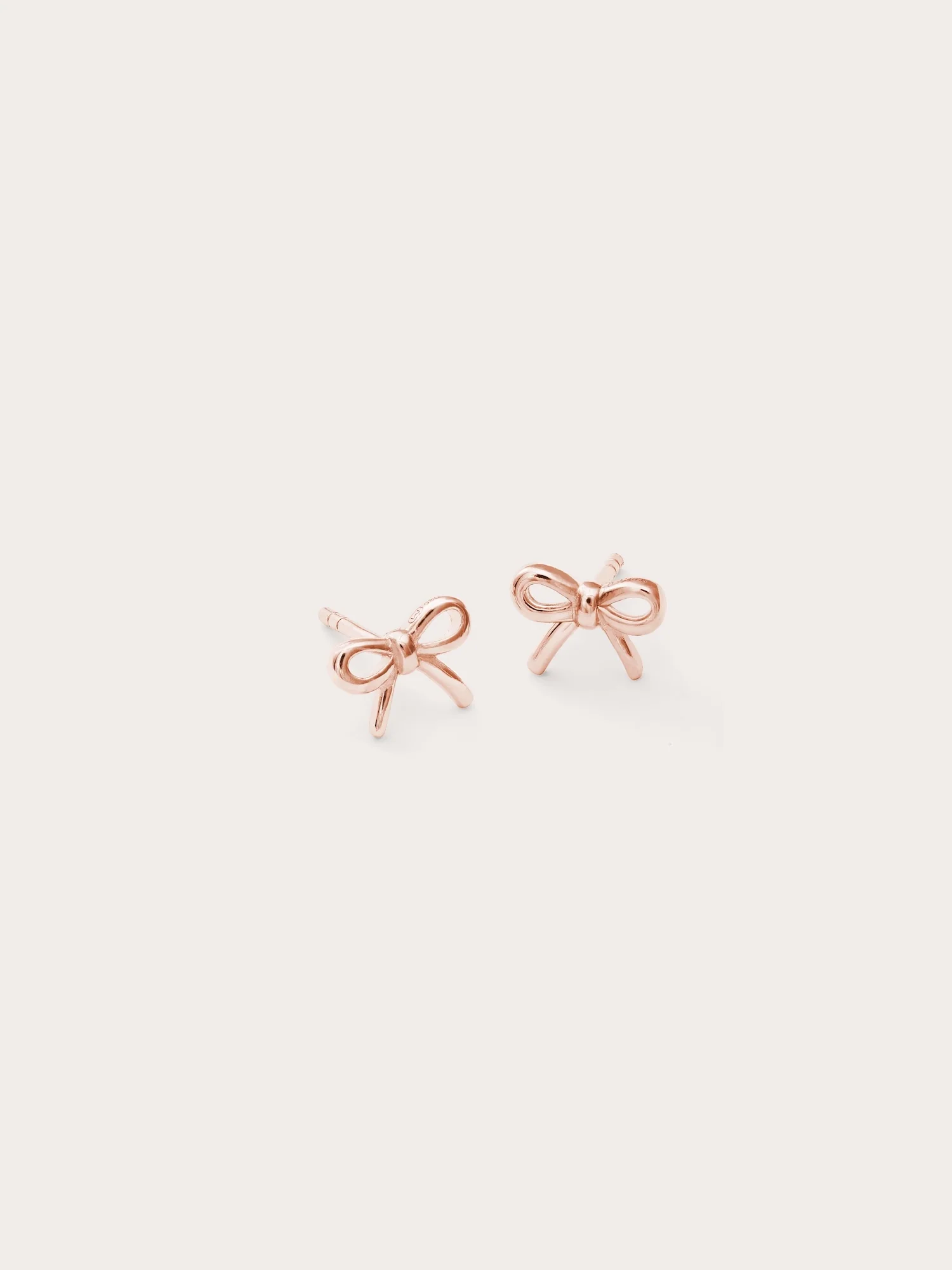 These delicate ribbon bow stud earrings showcase a fine ribbon design, symbolizing connections and important bonds. They are handcrafted in 18k gold vermeil.