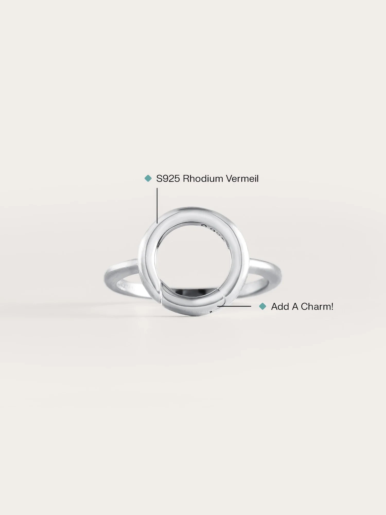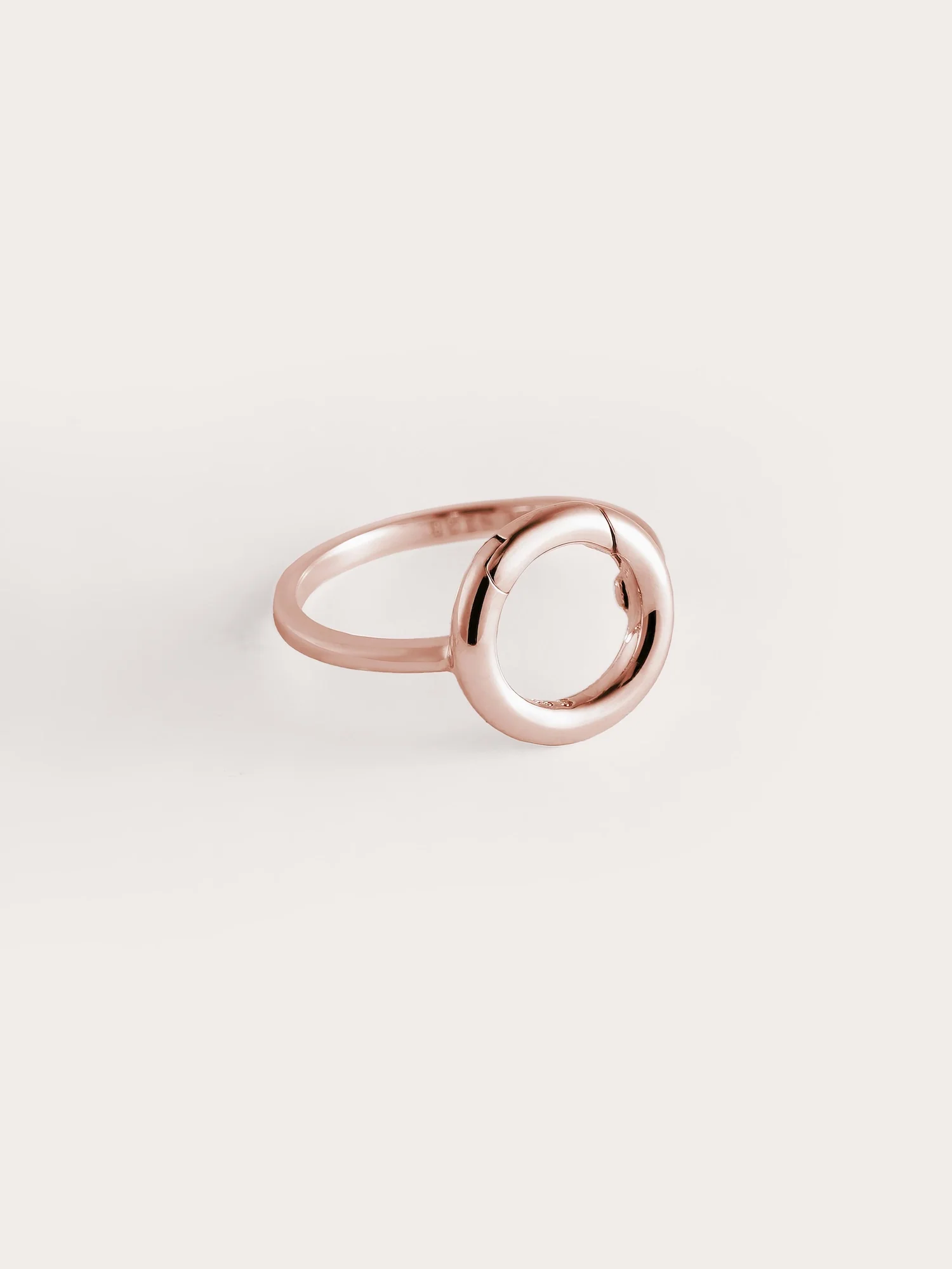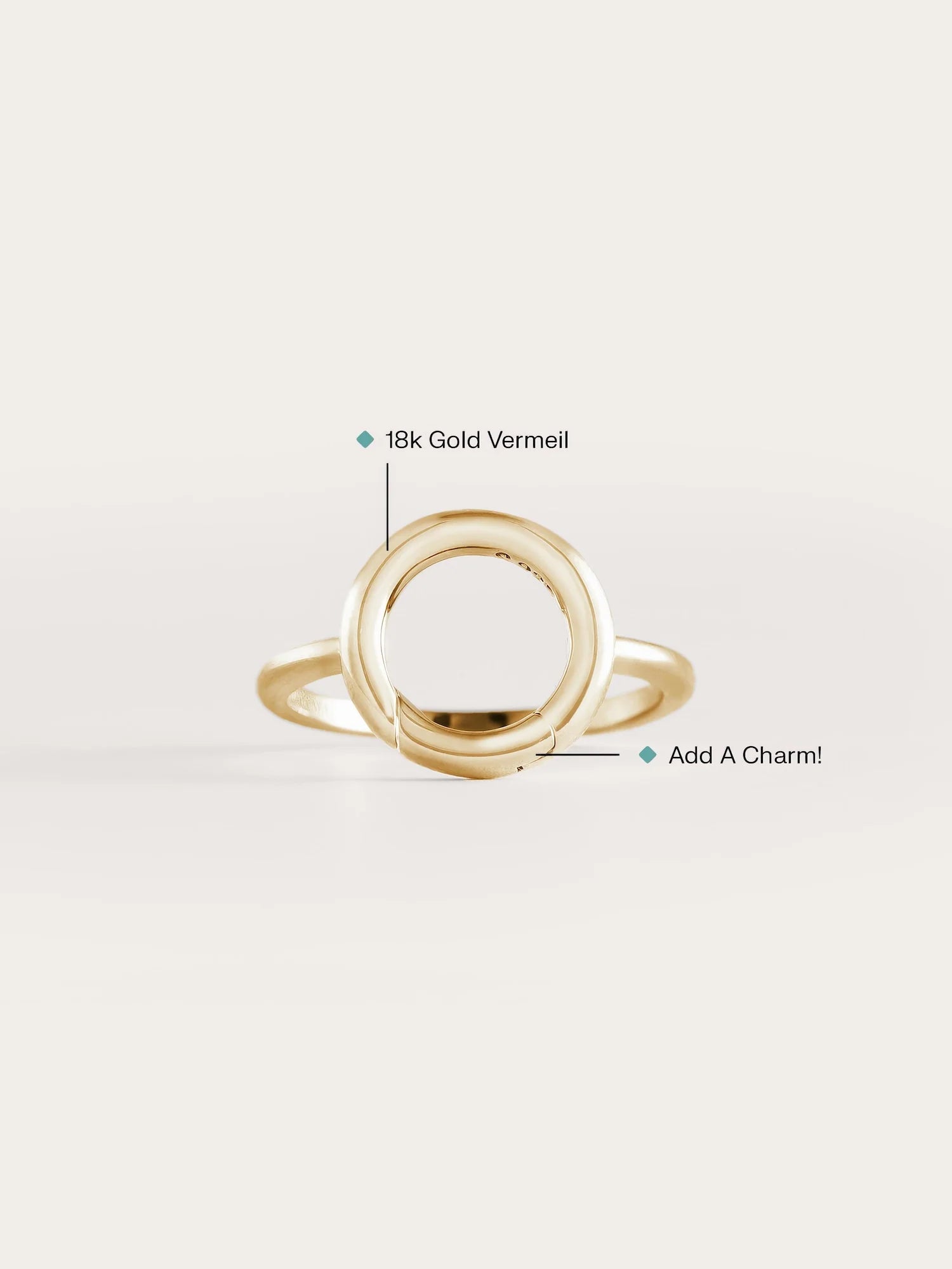 This ring features a classic donut-shaped charm and can be worn in two styles. Wear it alone for a stylish look or use it as a base to add your favorite ornaments. It is handcrafted with 18k rose gold vermeil.
