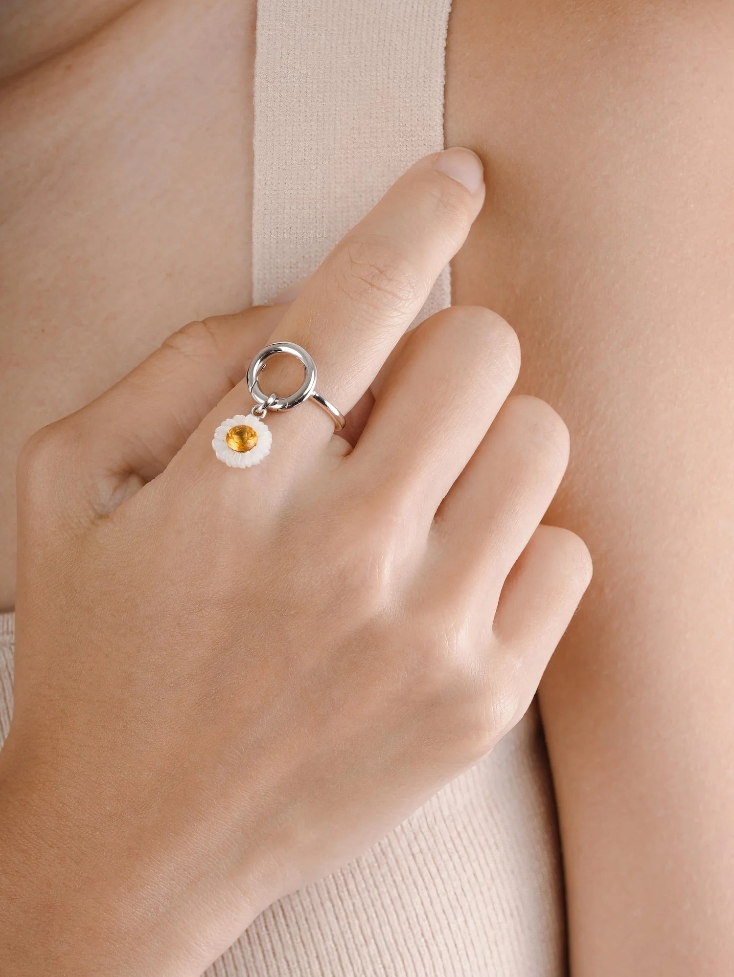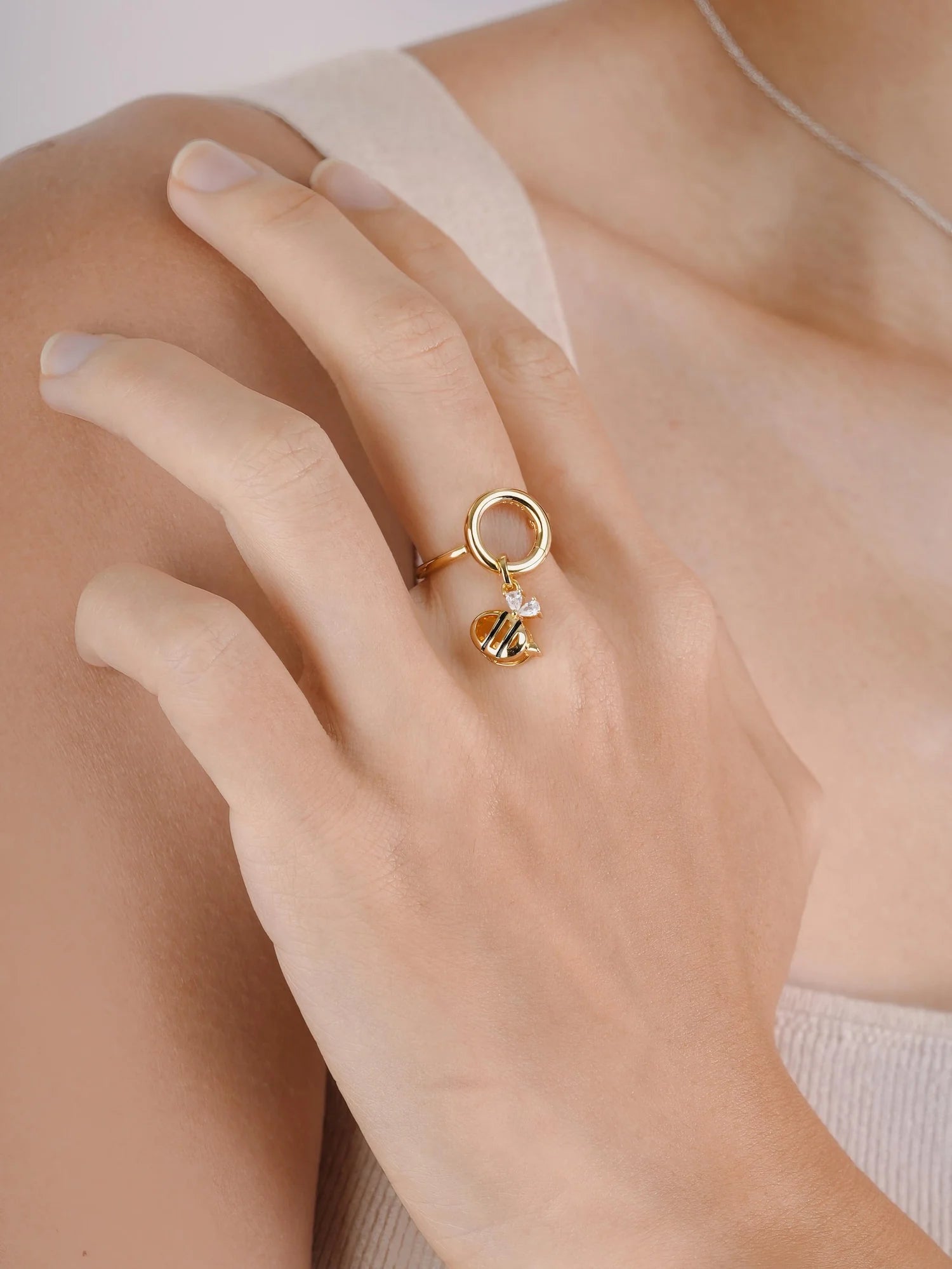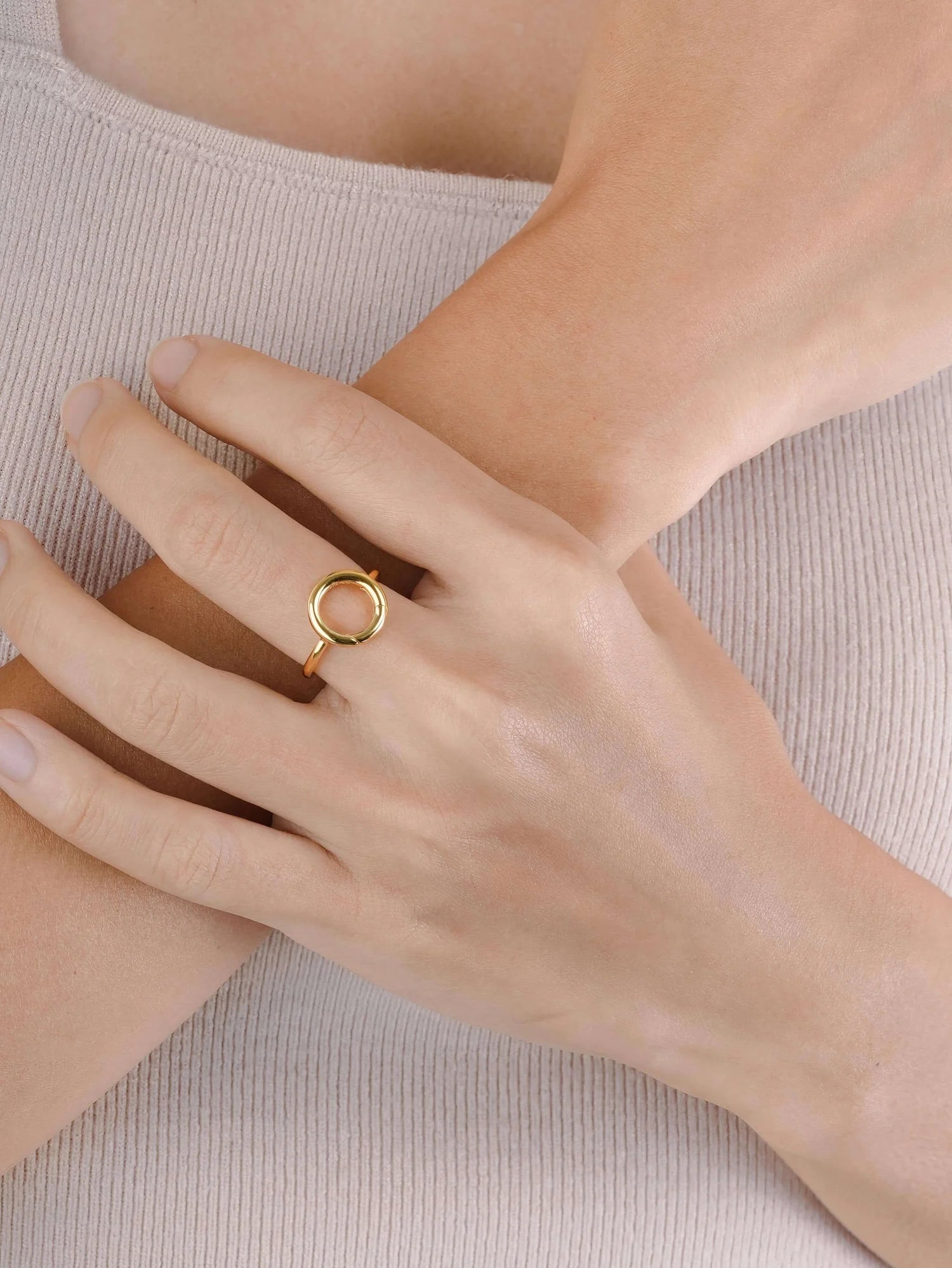 This ring features a classic donut-shaped charm and can be worn in two styles. Wear it alone for a stylish look or use it as a base to add your favorite ornaments. It is handcrafted with 18k rose gold vermeil.