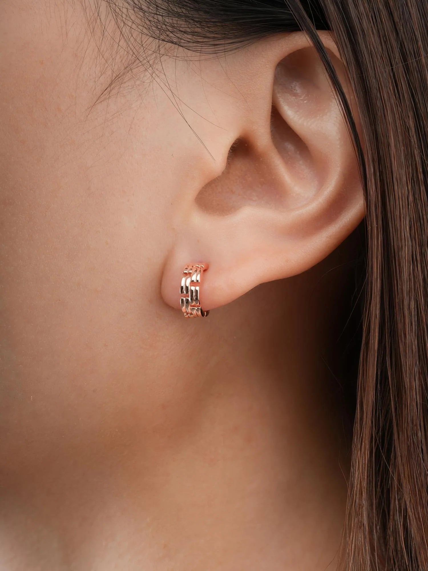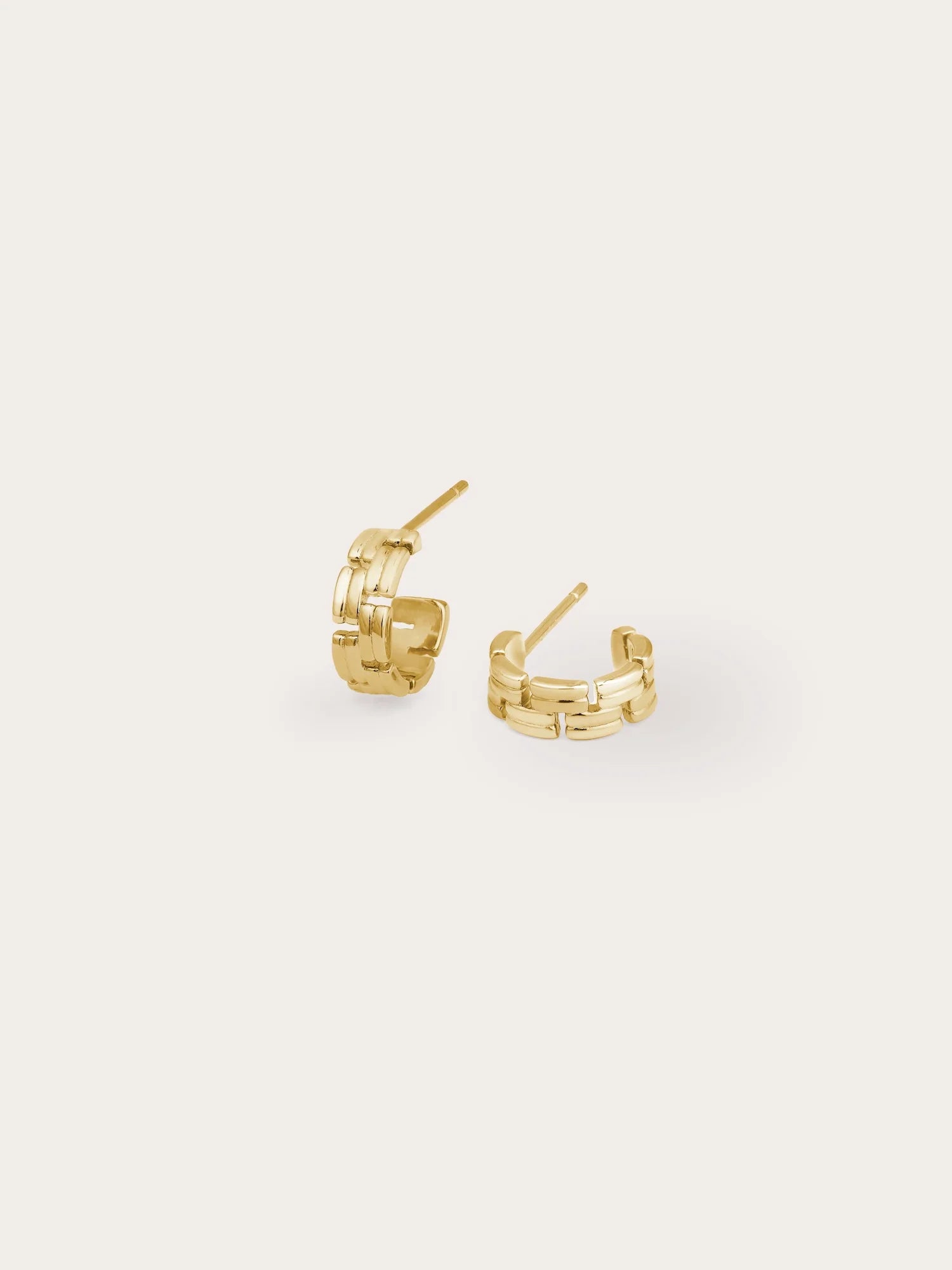 Inspired by the Bagheera watch collection, the simple lineaments of the Duo Link Chain Hoop Earrings add subtle glamour to any look. Designed for a comfortable, snug fit, these earrings complement both professional and casual looks. Handcrafted in 18k gold vermeil.