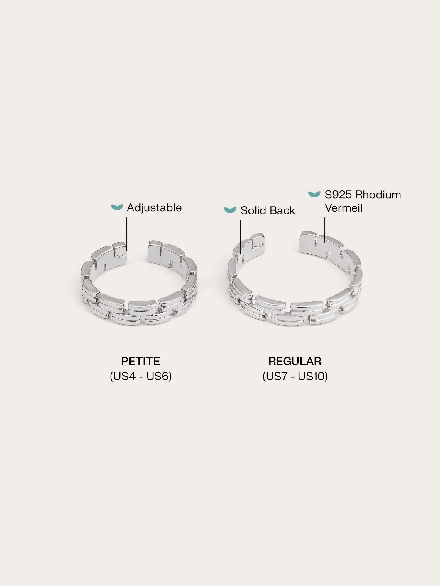 Inspired by the Bagheera watch collection, the simple lineaments of the Duo Link Chain Ring adds a timeless chic to any ring stack, making it perfect for stacking. Handcrafted in S925 rhodium vermeil.