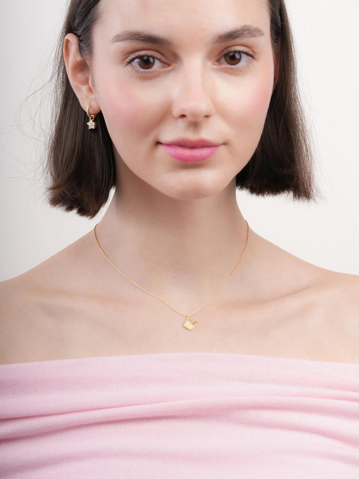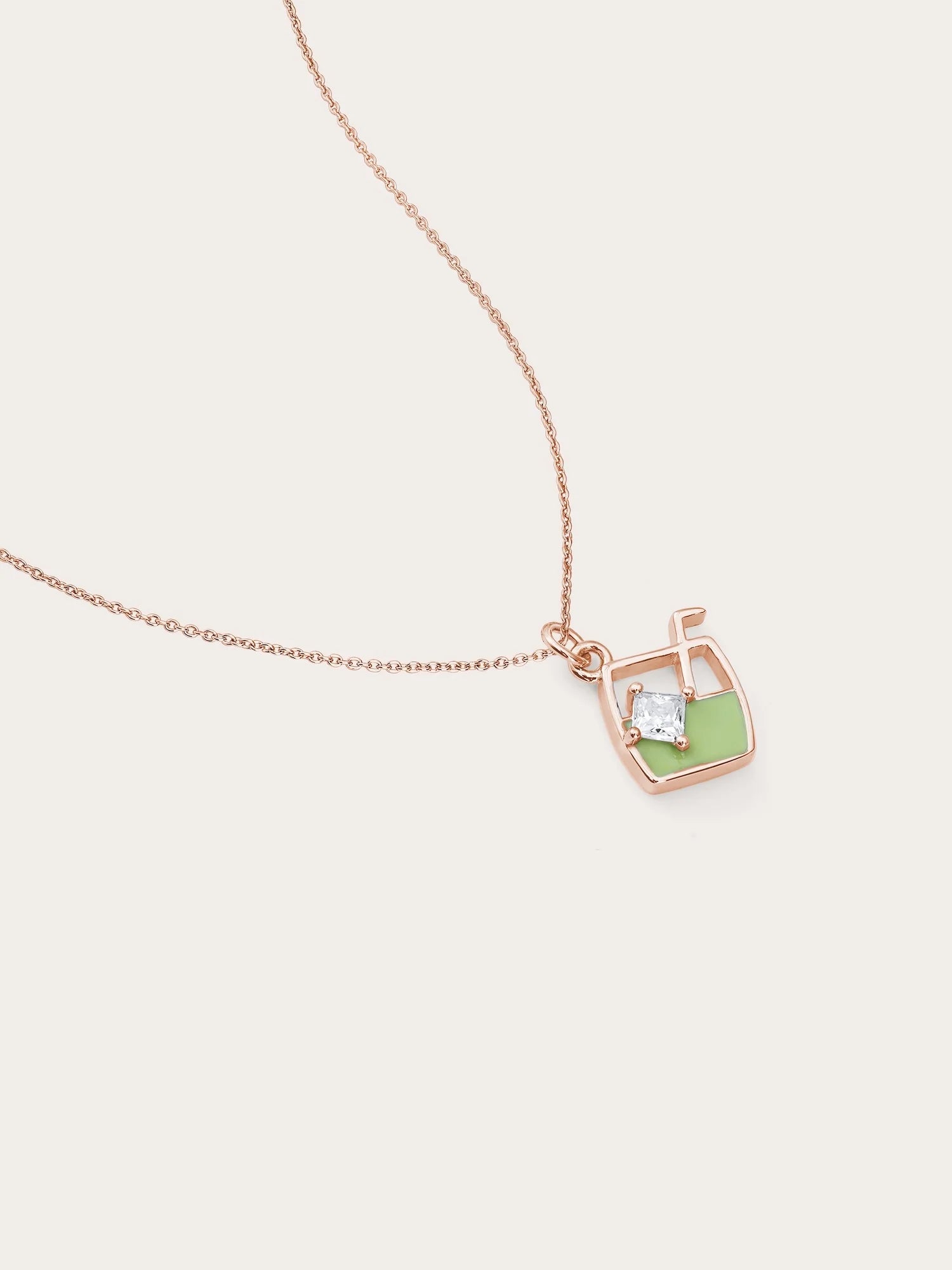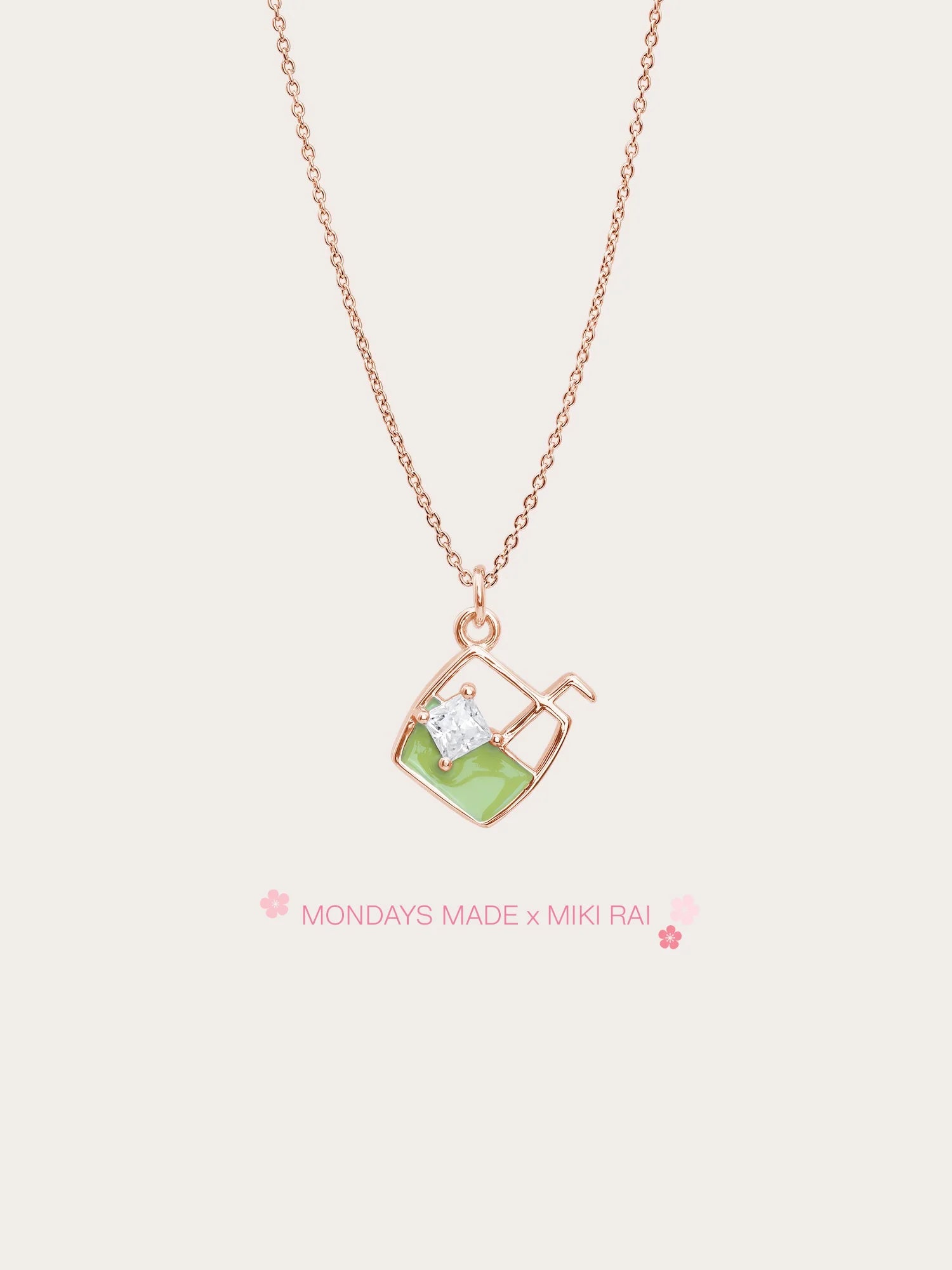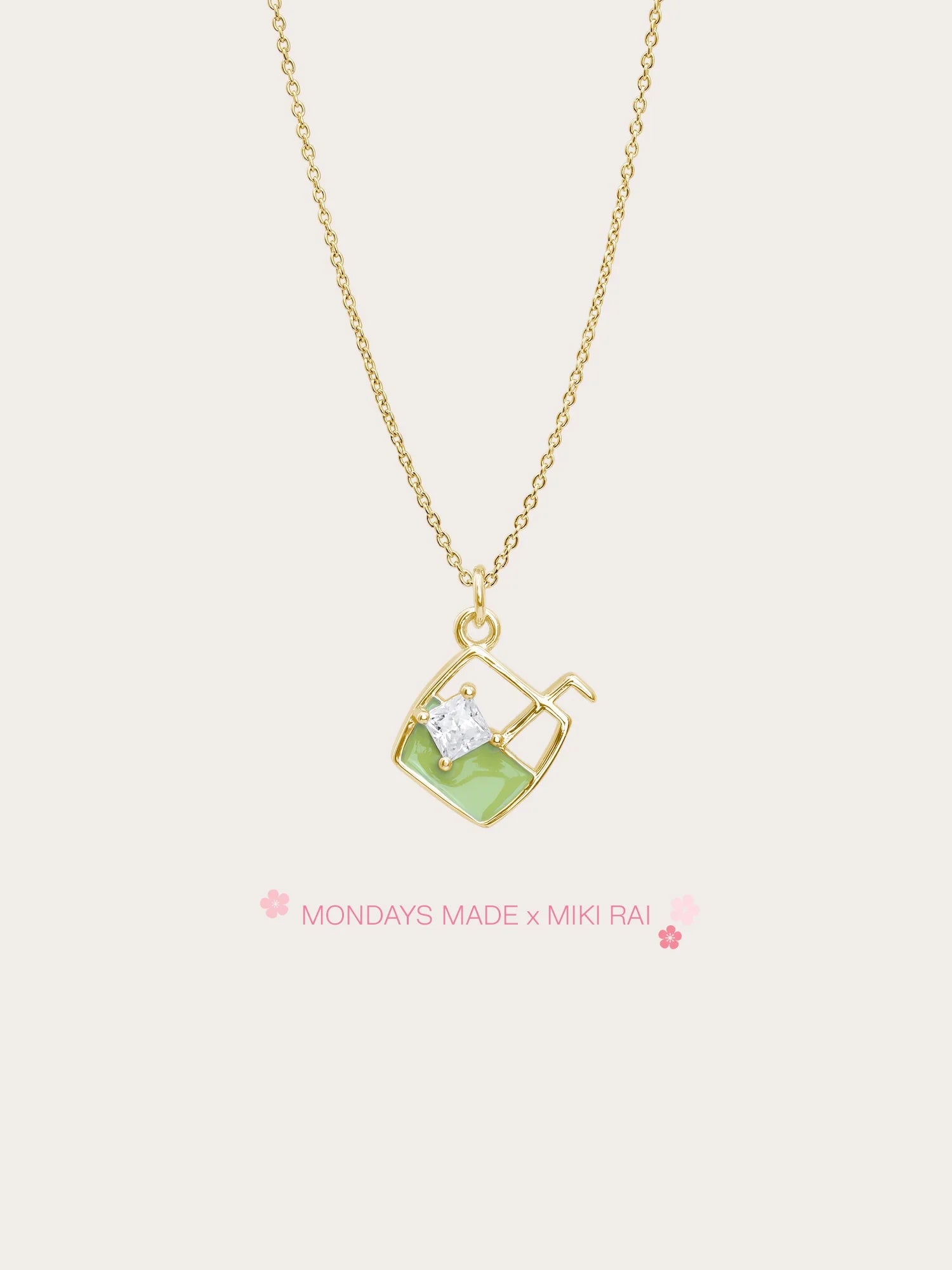 Inspired by Miki’s love for matcha, the Everyday Matcha Necklace features a hand-painted enamel pendant, accented with a radiant princess-cut moissanite for a touch of sparkle.