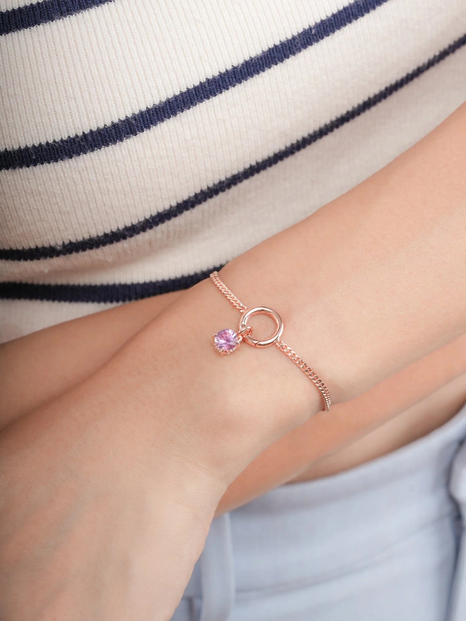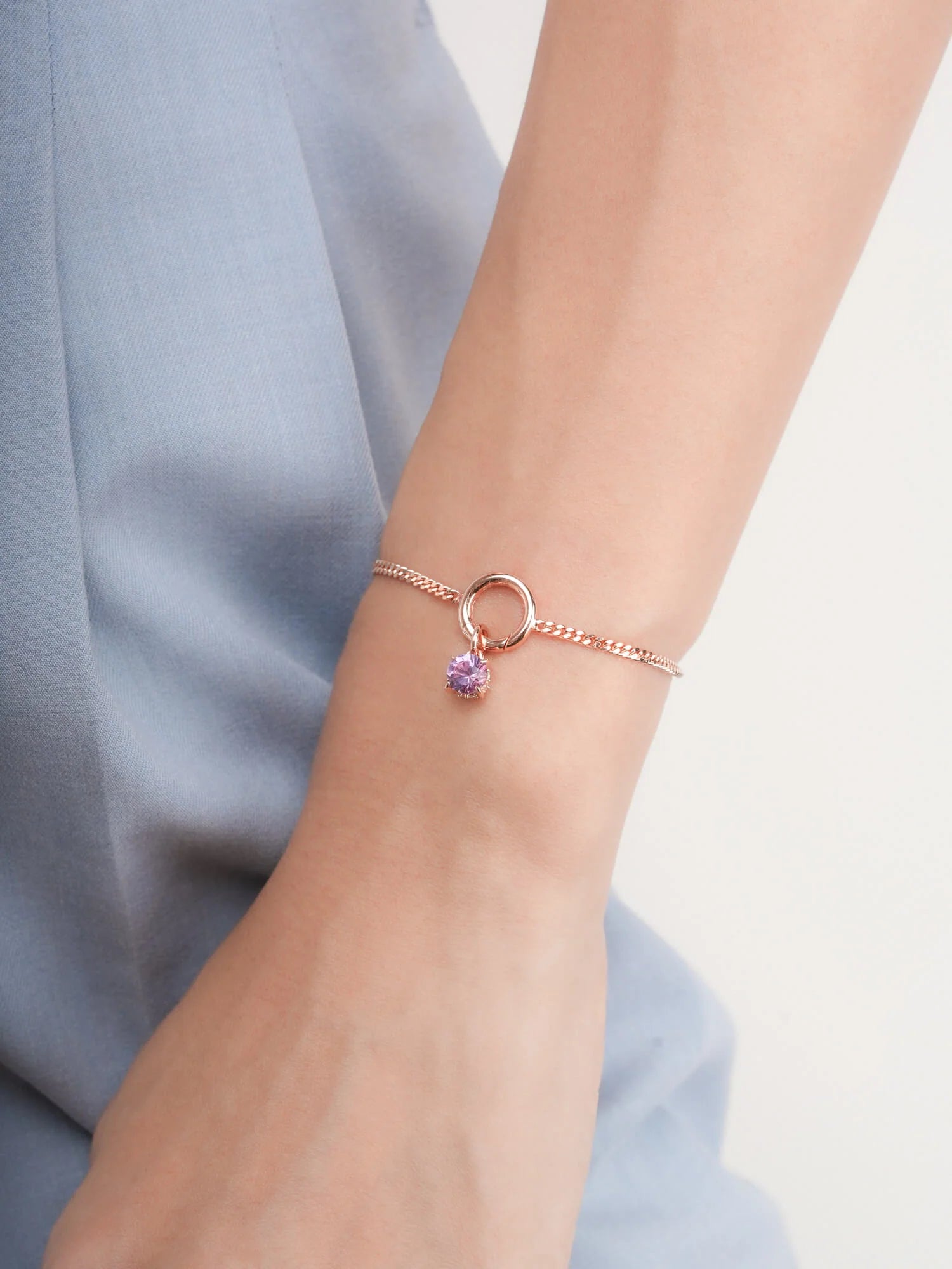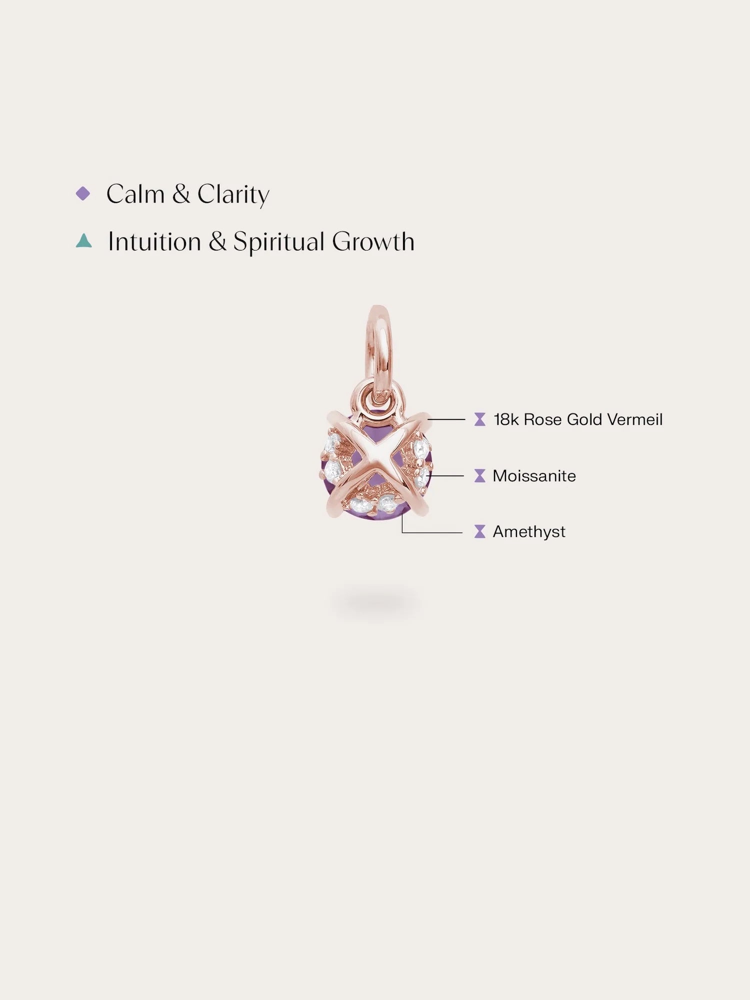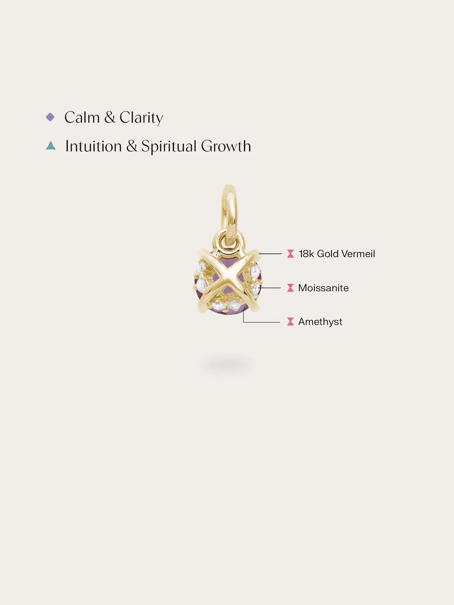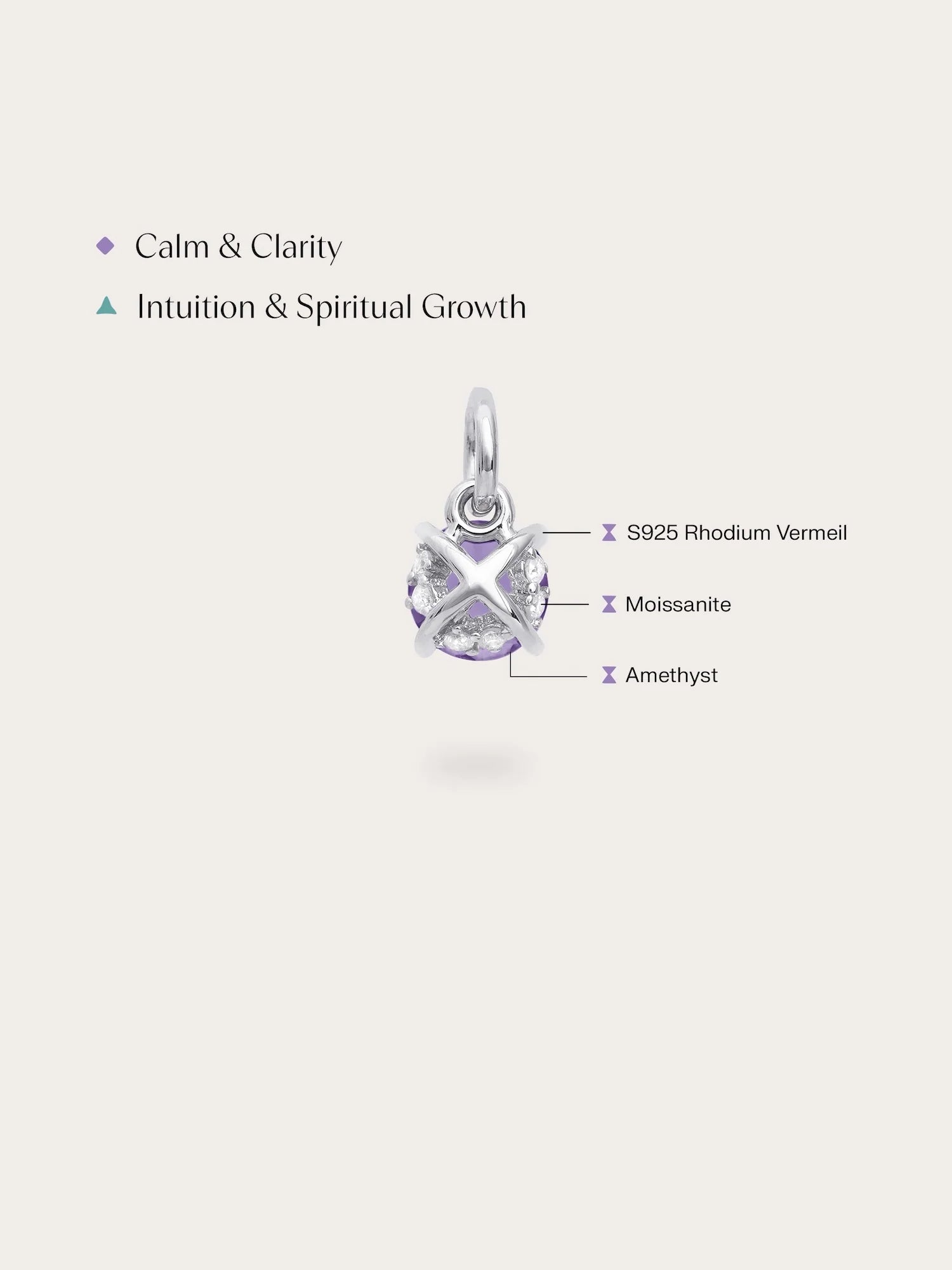 The February Birthstone Charm showcases a natural, diamond-cut amethyst, set in a charm inspired by the timeless “XO” symbol of hugs and kisses - symbolizing love and connection.
