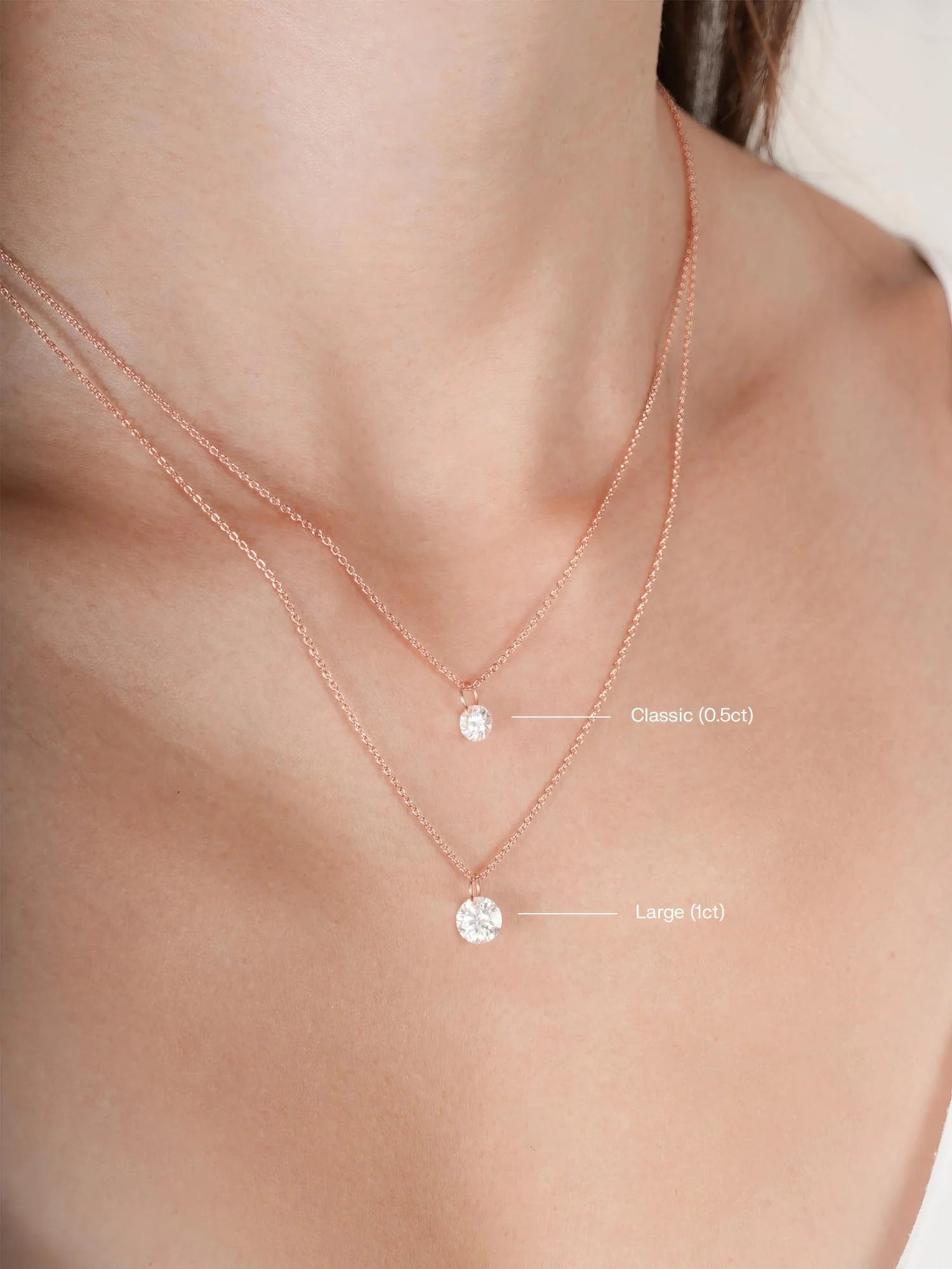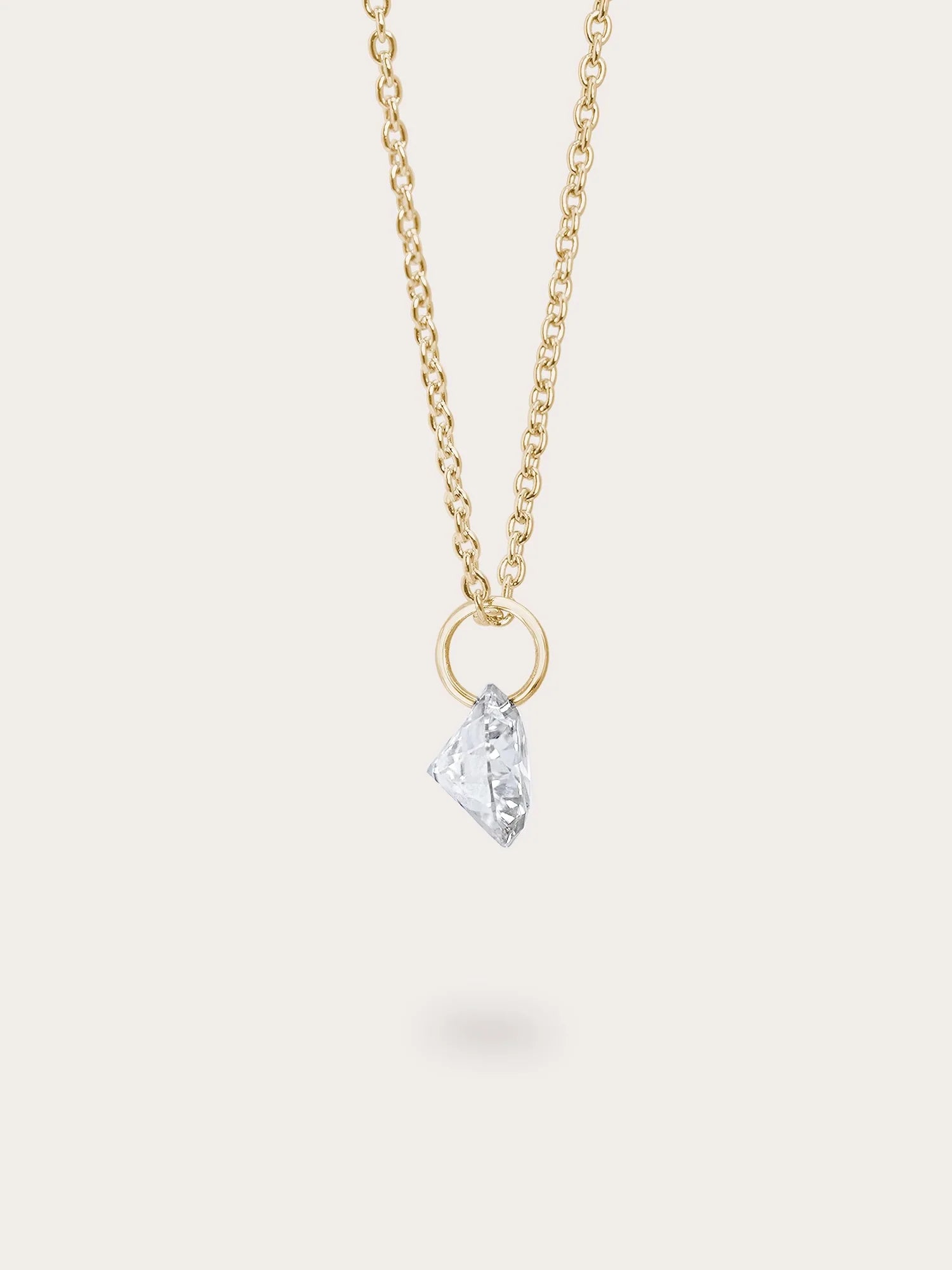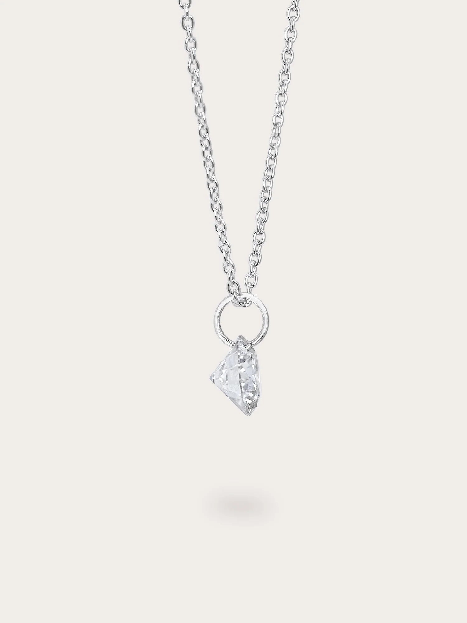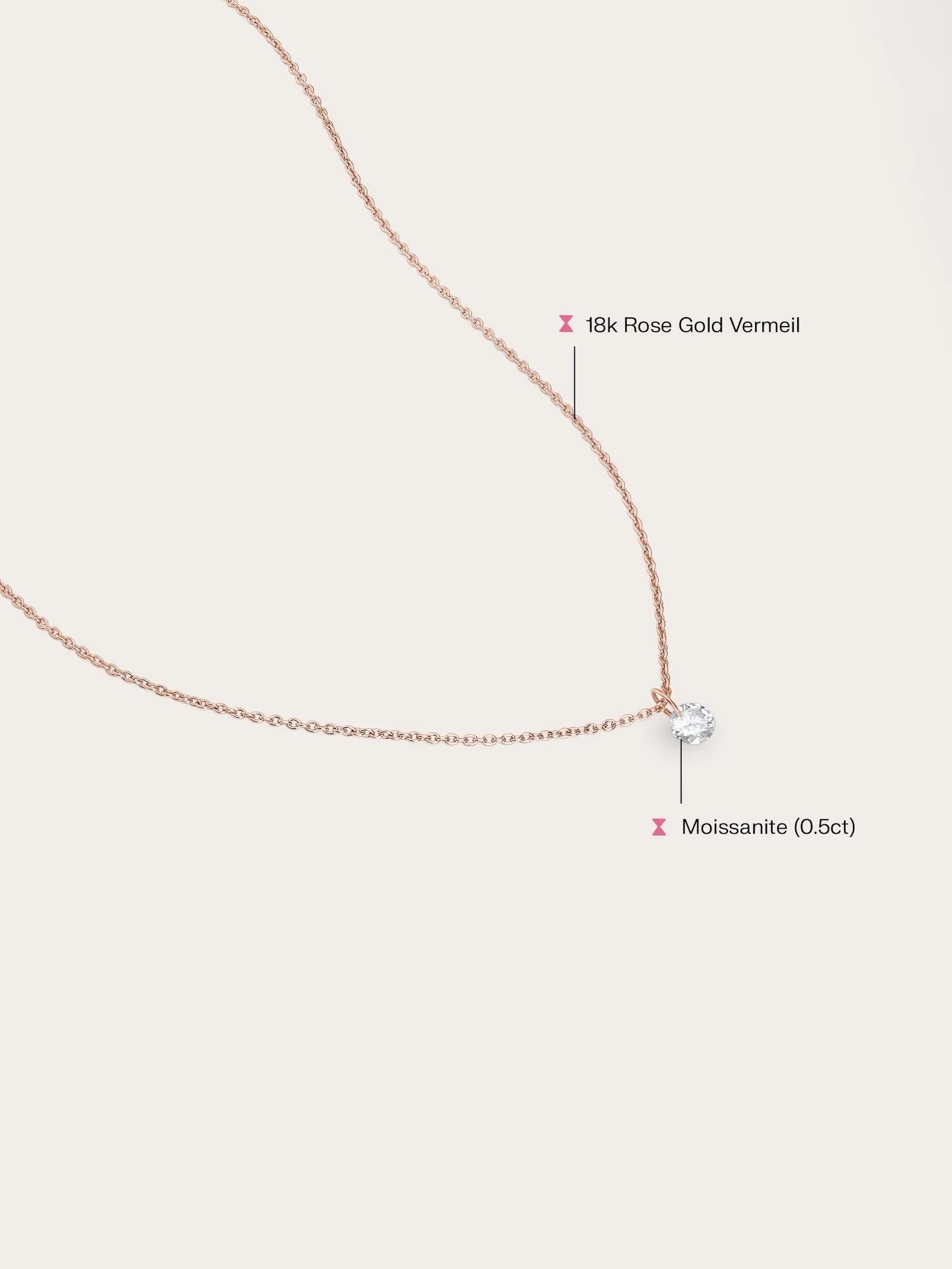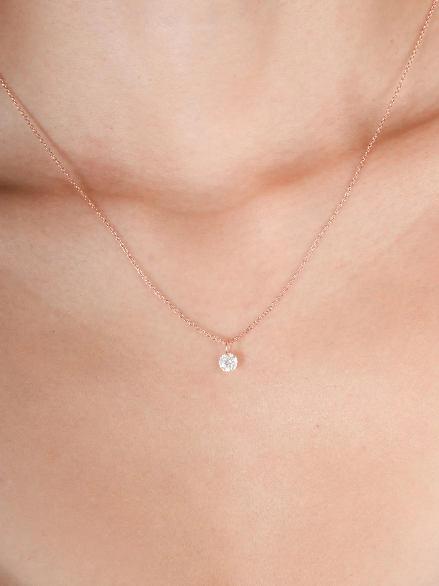 A single moissanite stone is delicately suspended in a floating setting in this necklace. Without prongs, this unique design enables light to shine on the stone from all angles, boosting its sparkle. It's hand - crafted with 18k rose gold vermeil.