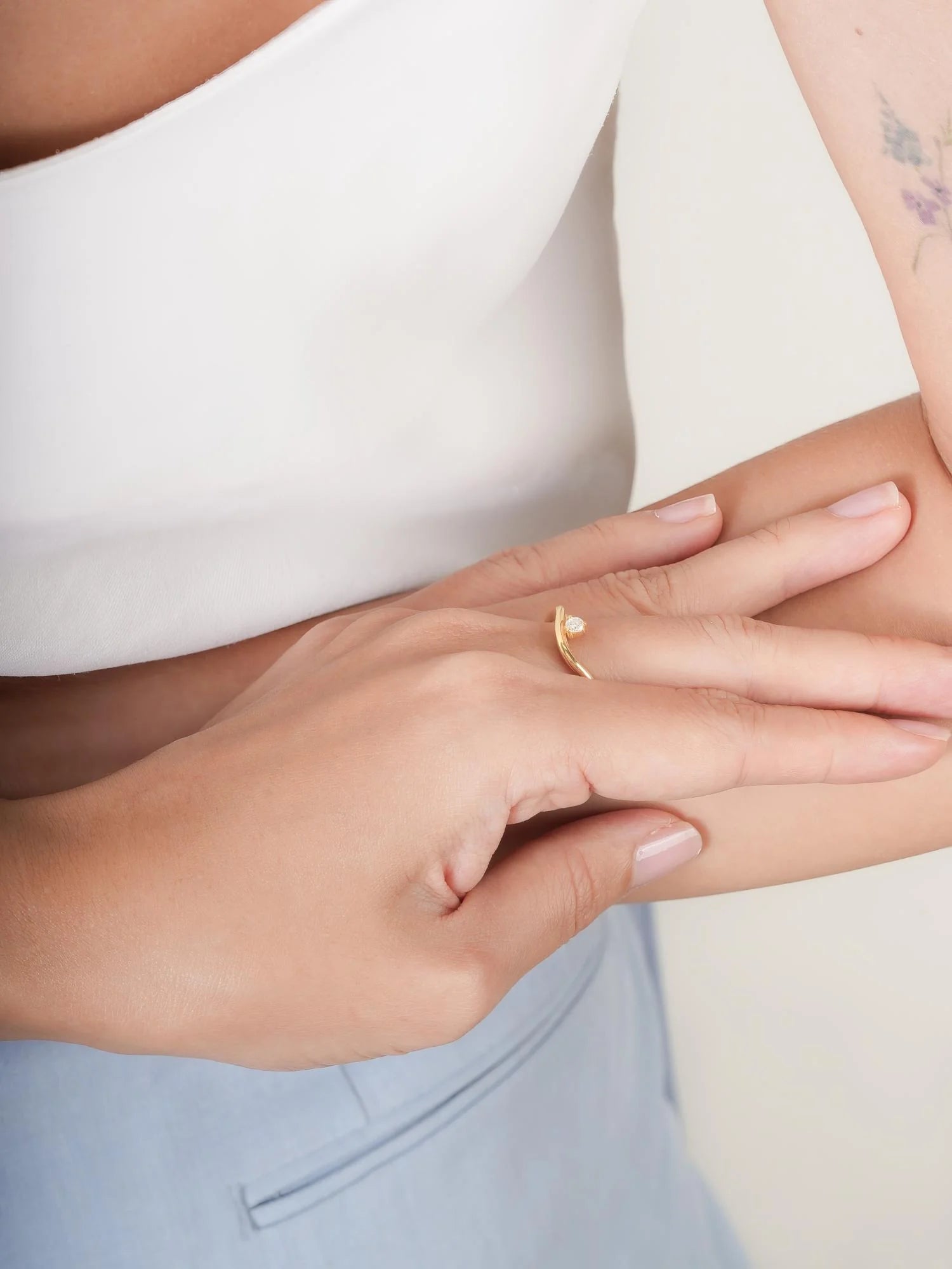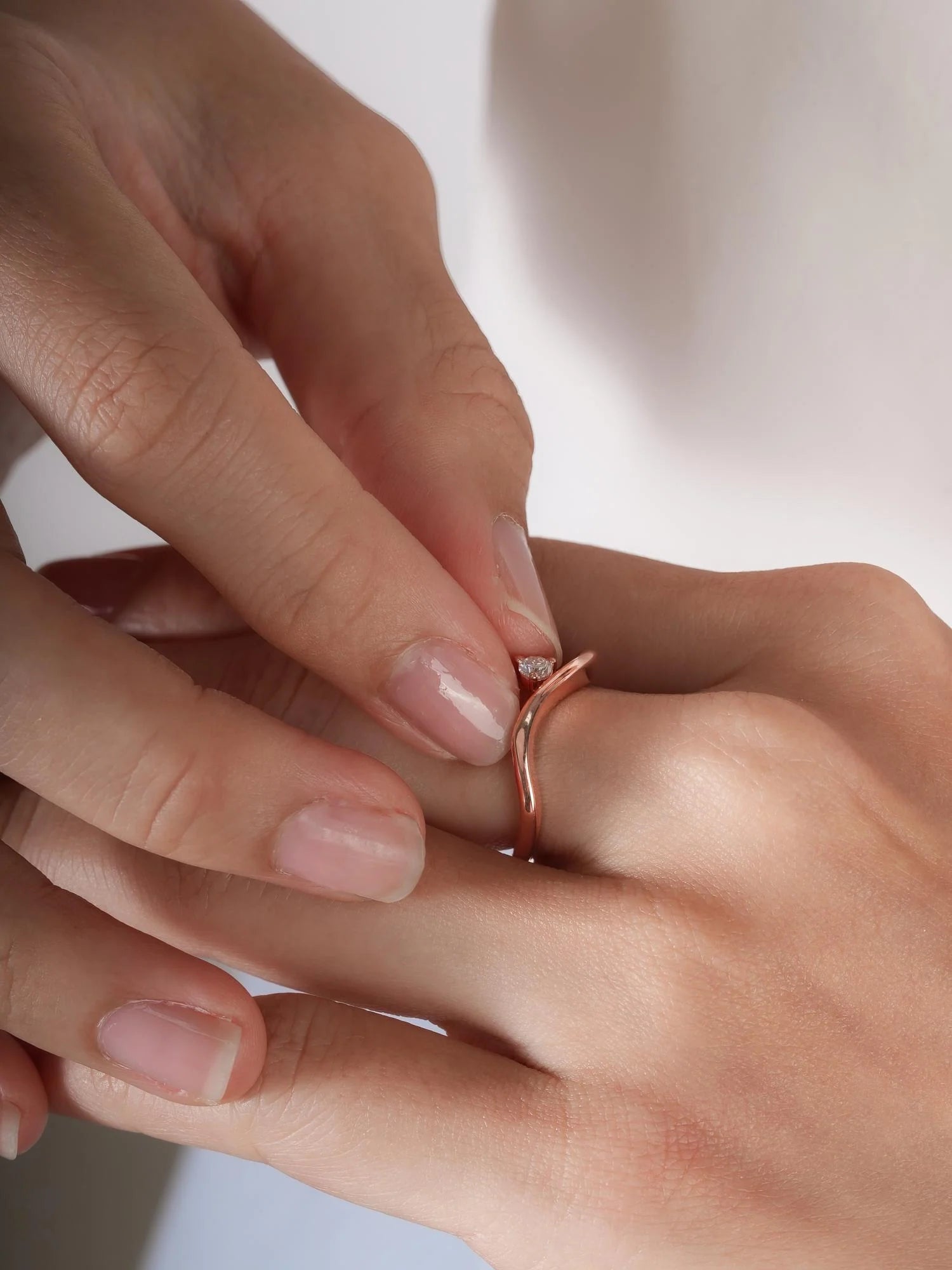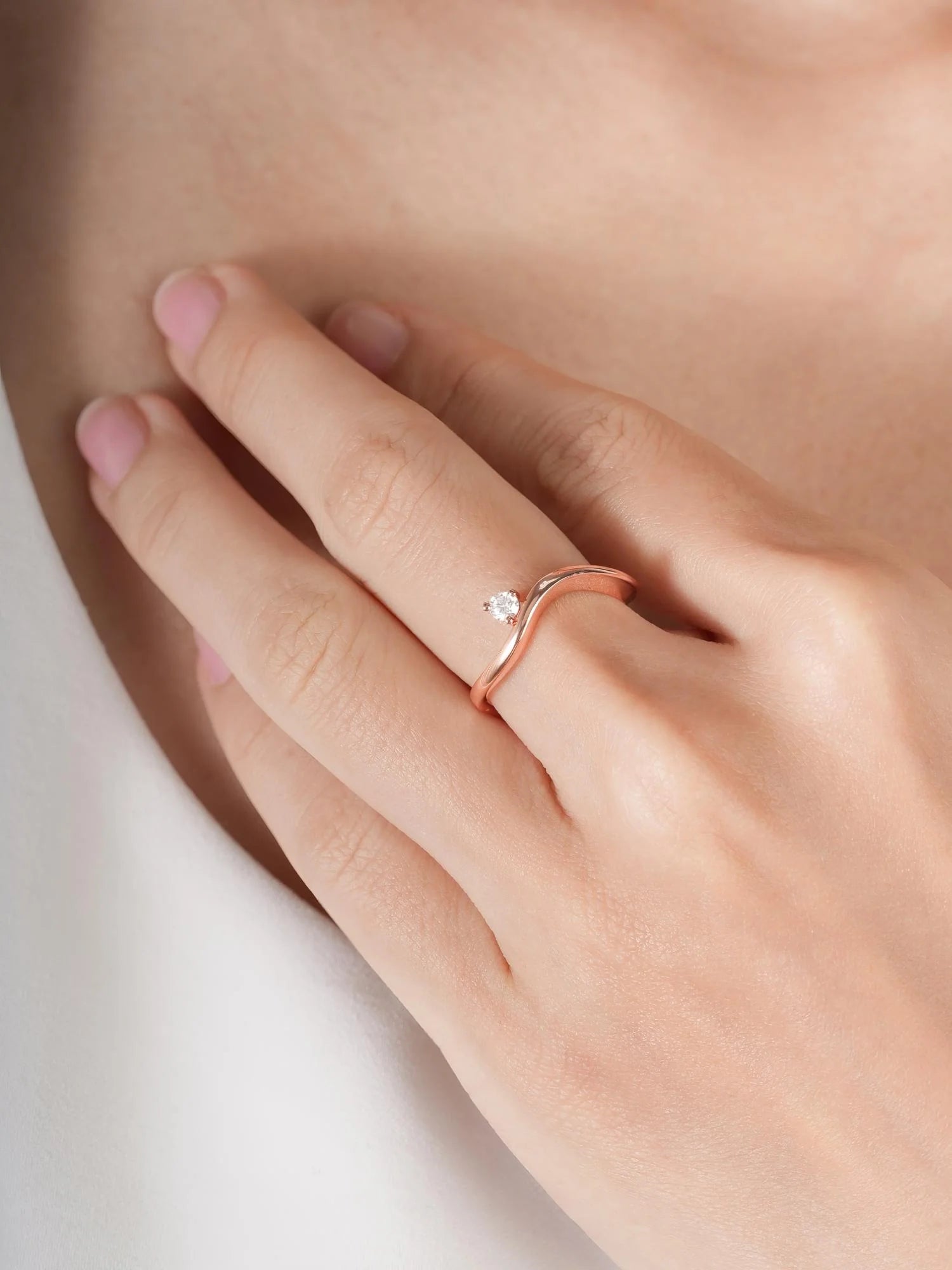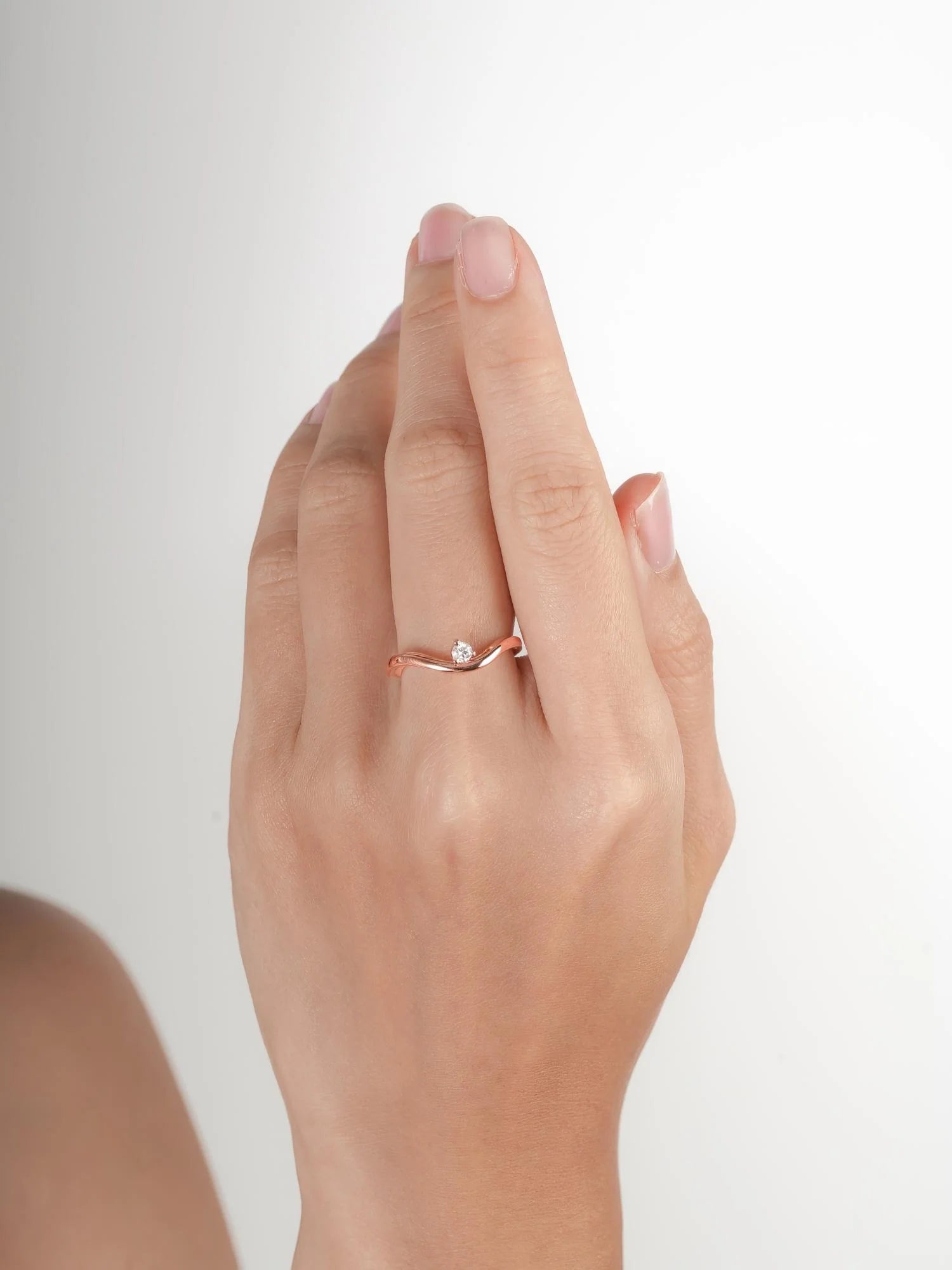 Explore the distinctive charm of this floating moissanite wave ring. It has a dazzling moissanite stone that moves along the curved band, producing a captivating floating effect. It is hand - crafted using a material with a thick rhodium plating on a base metal.