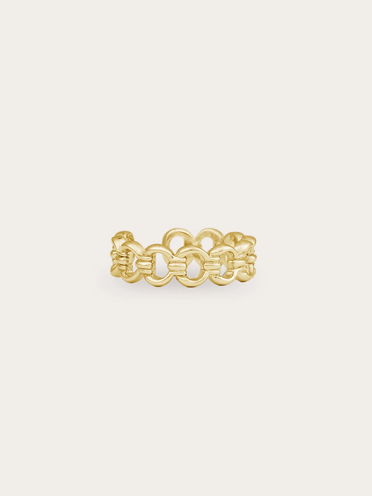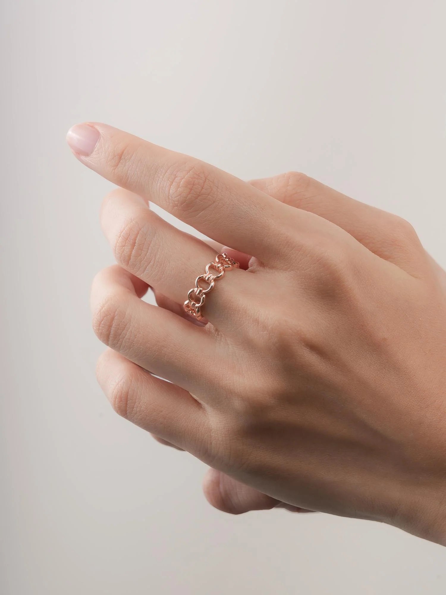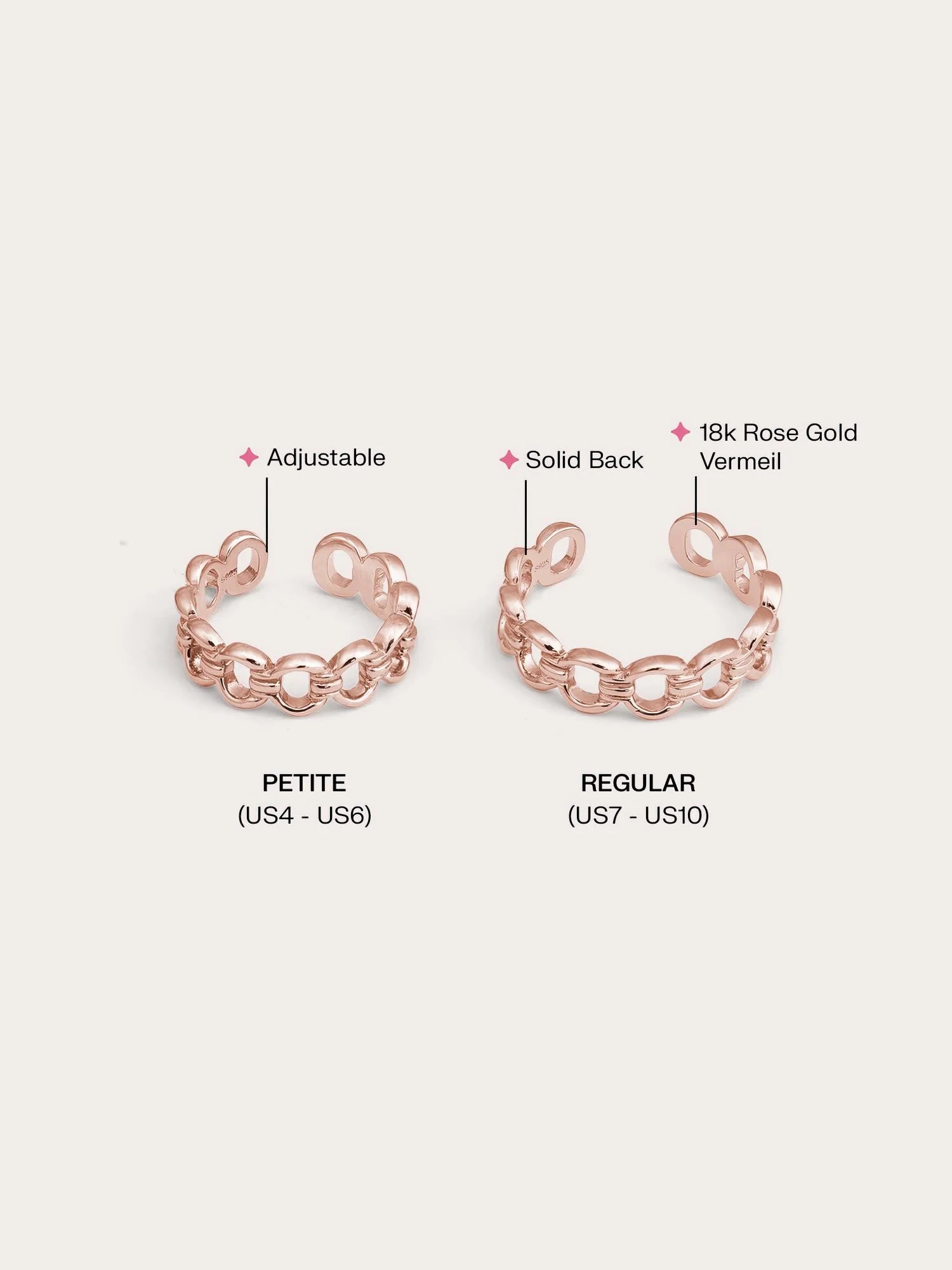 This ring combines the delicate details of cocktail watches with a modern touch, making it a great accessory for any time of the day. It is handcrafted in 18k rose gold vermeil.