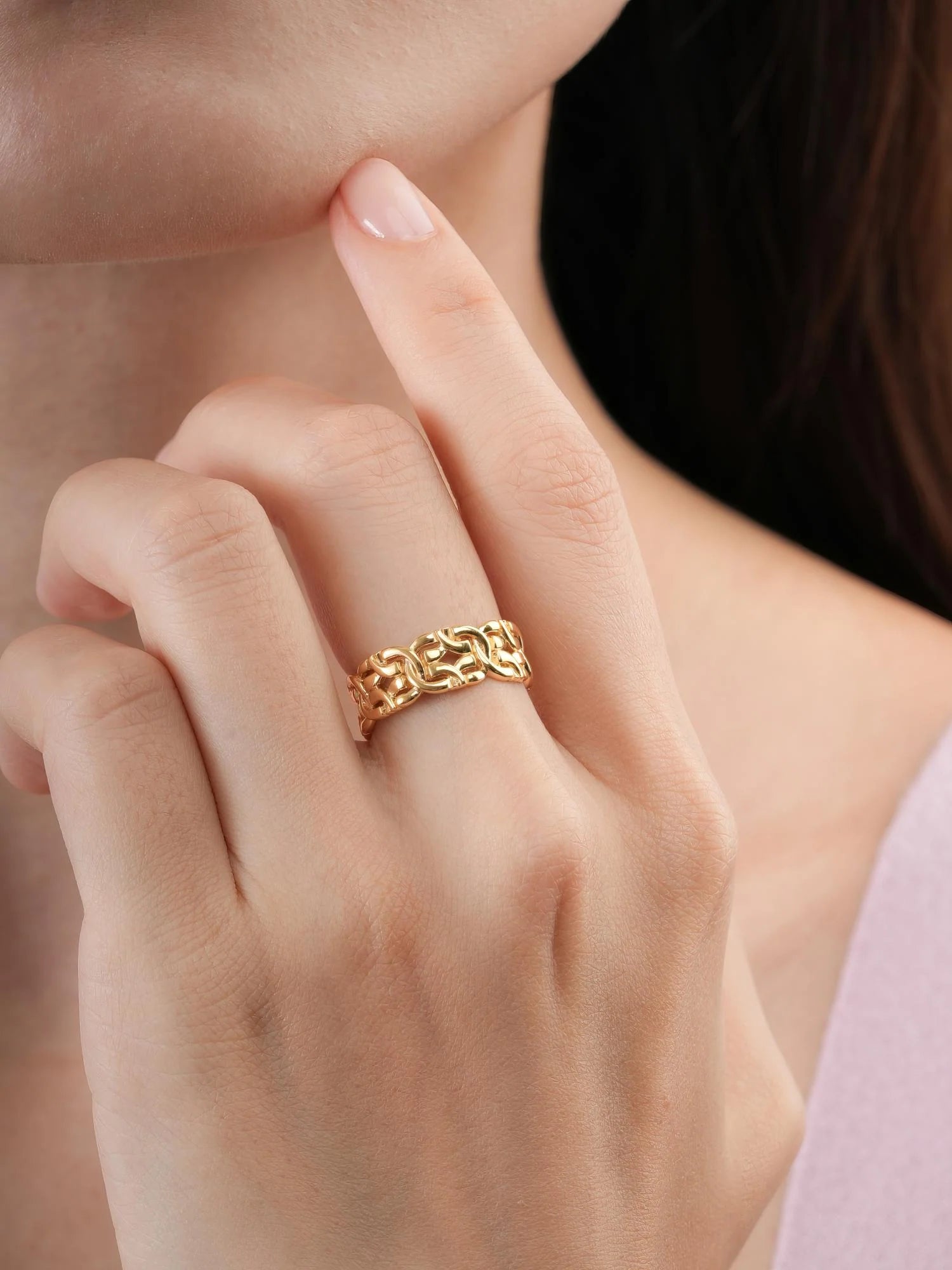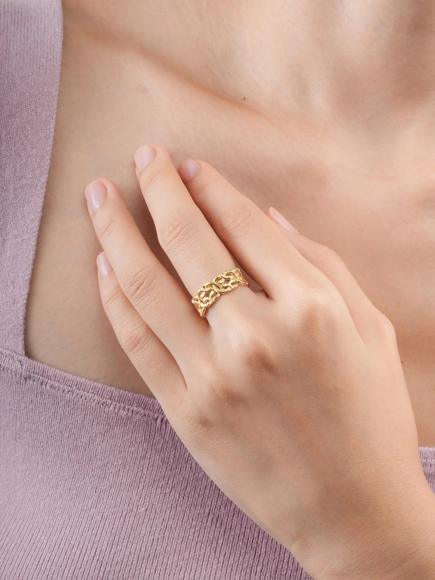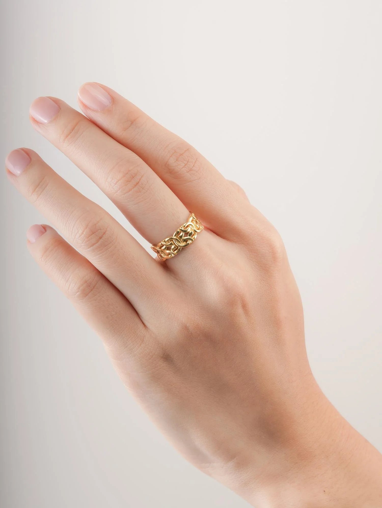 This ring combines a touch of nostalgia with a feminine charm. Its complex byzantine pattern demonstrates high - level craftsmanship. It is hand - crafted in 18k gold vermeil.