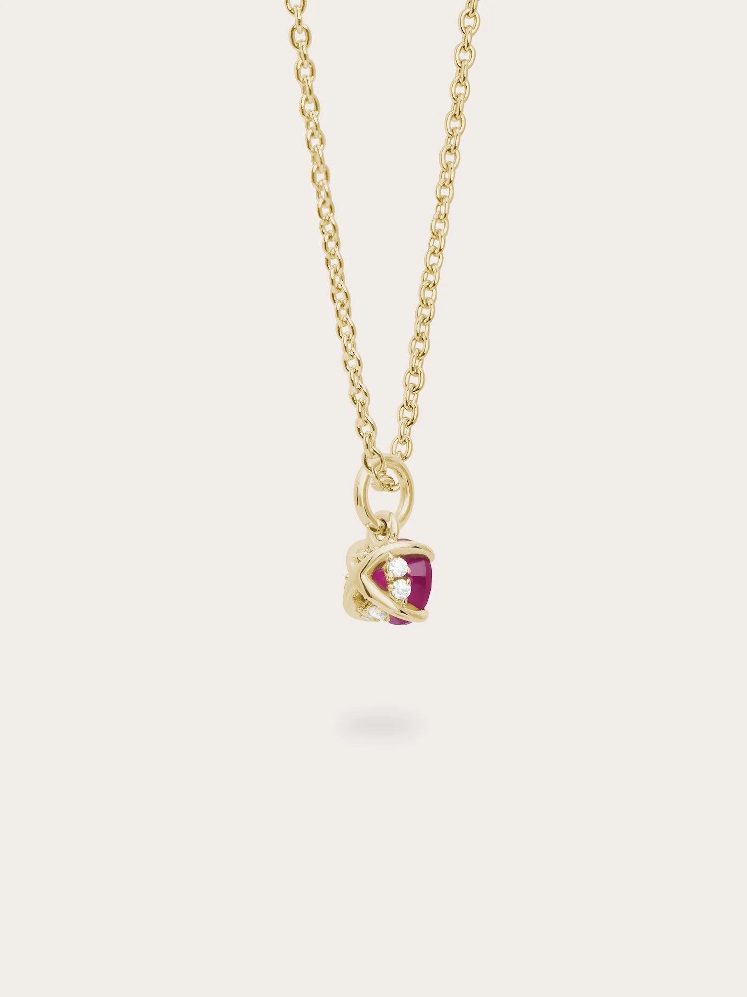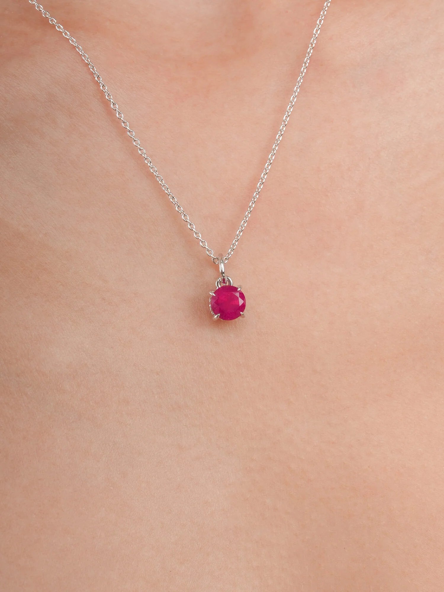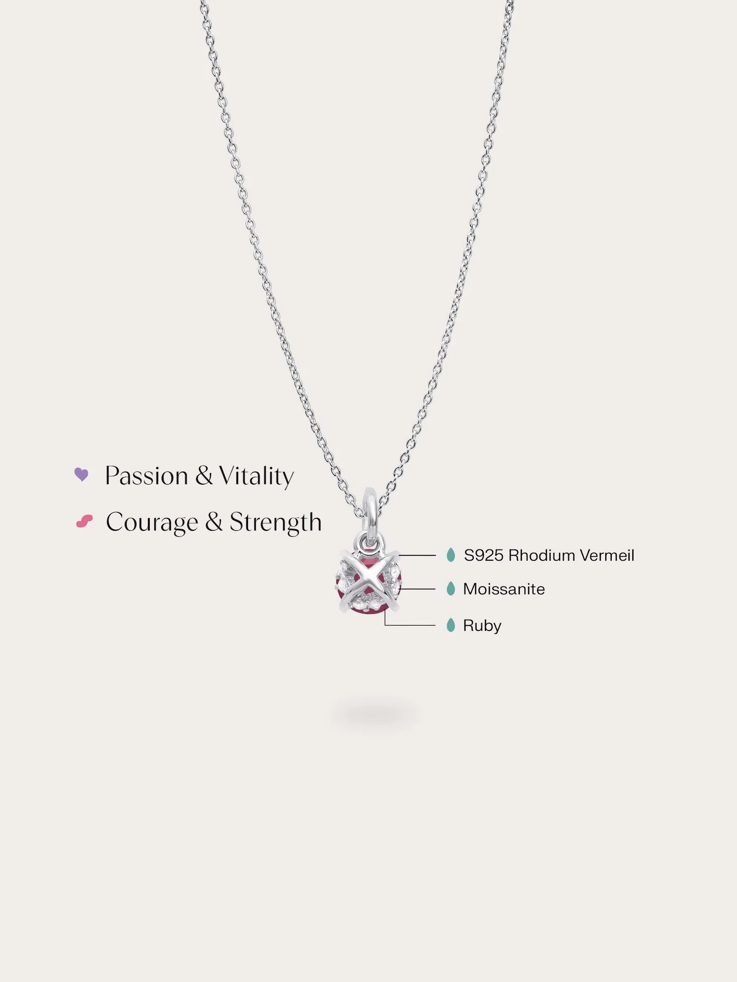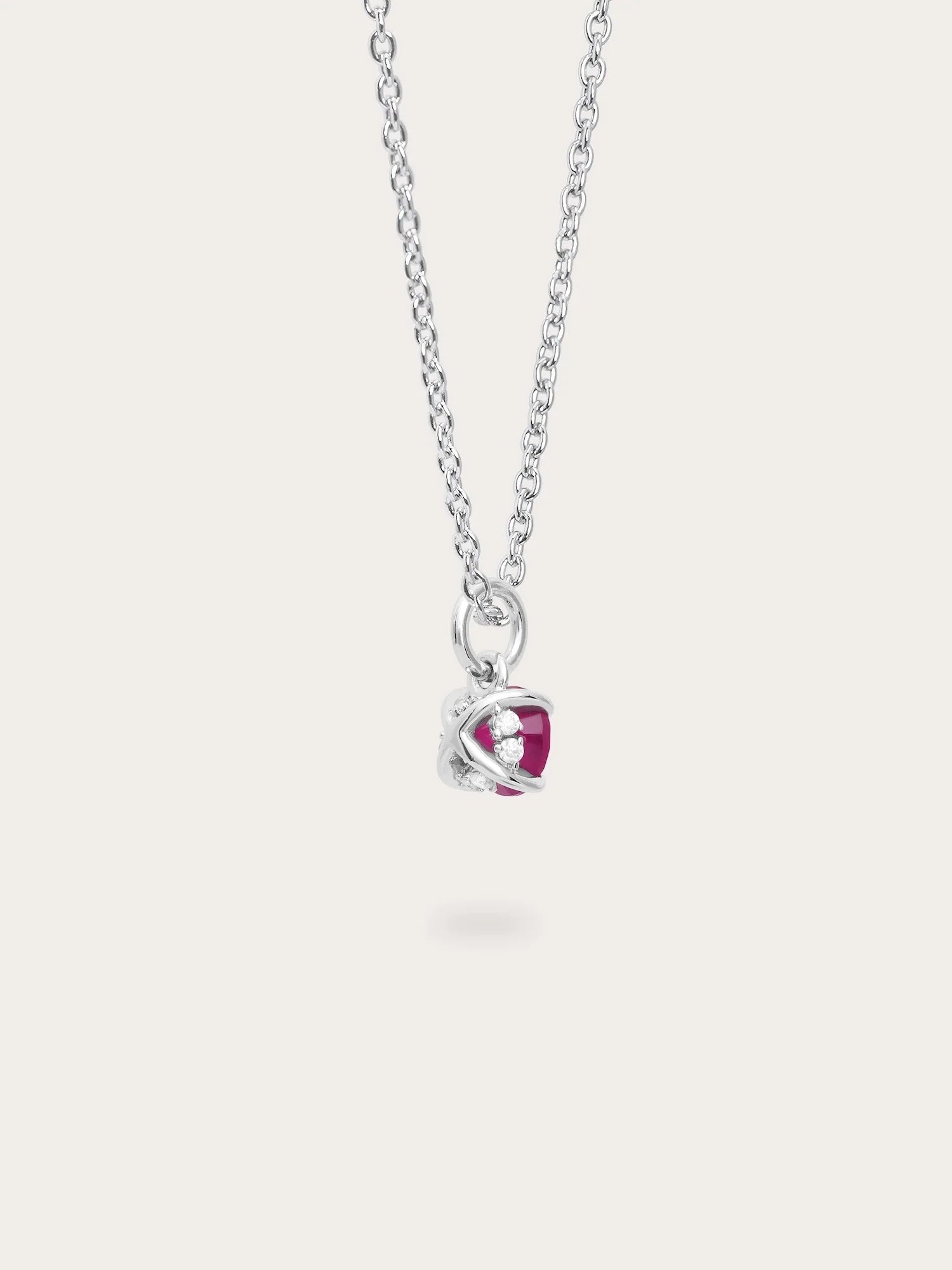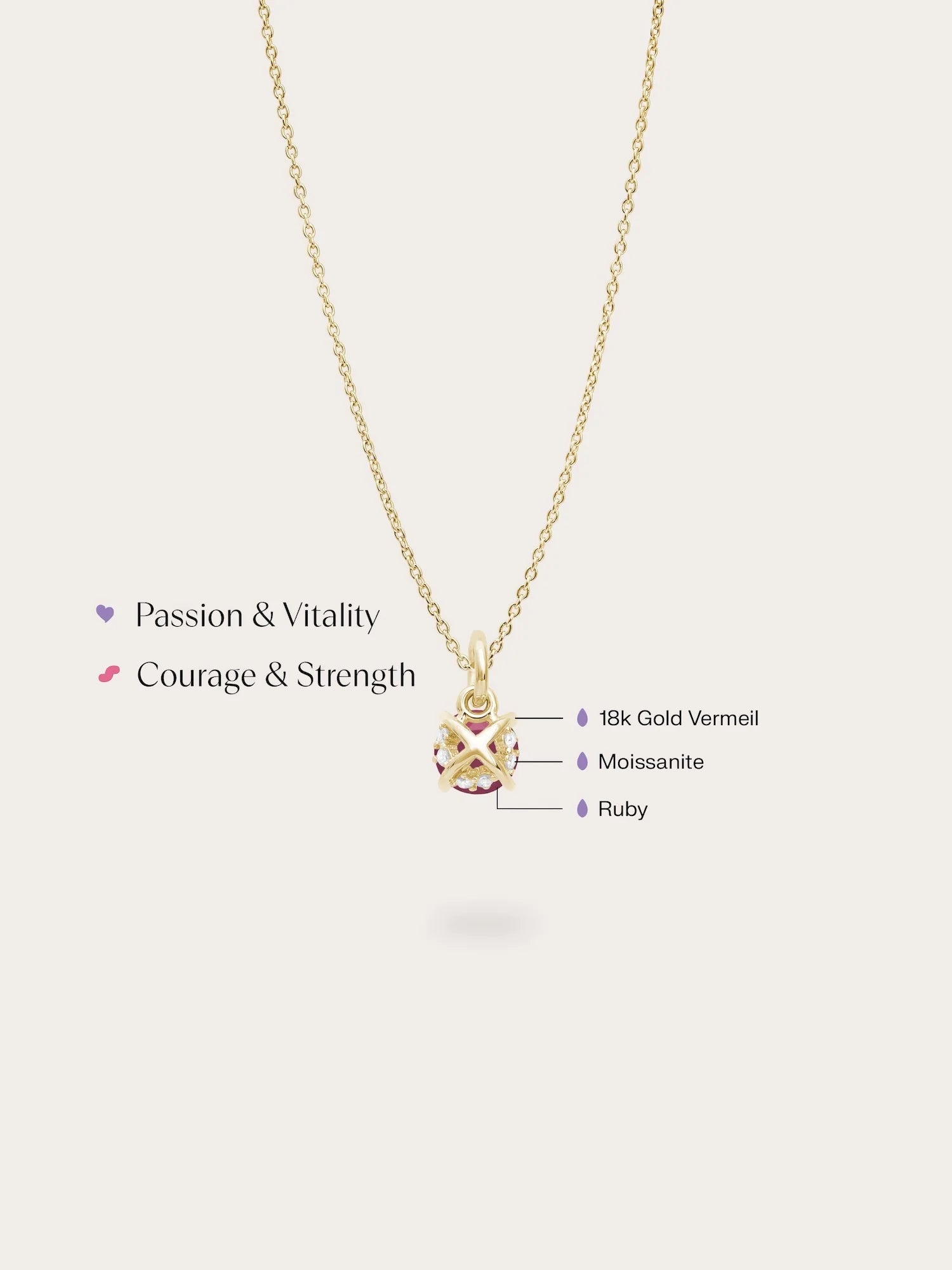 The July Birthstone Necklace showcases a natural treated ruby, set in a pendant inspired by the timeless “XO” symbol of hugs and kisses - symbolizing love and connection.