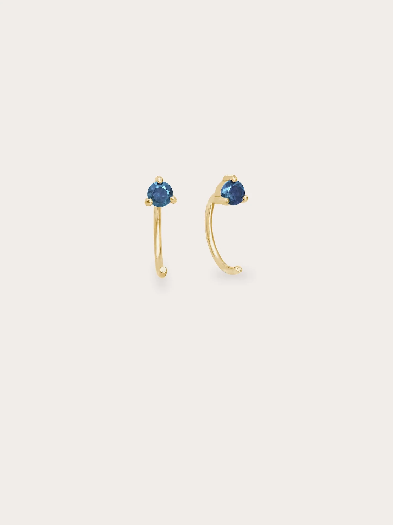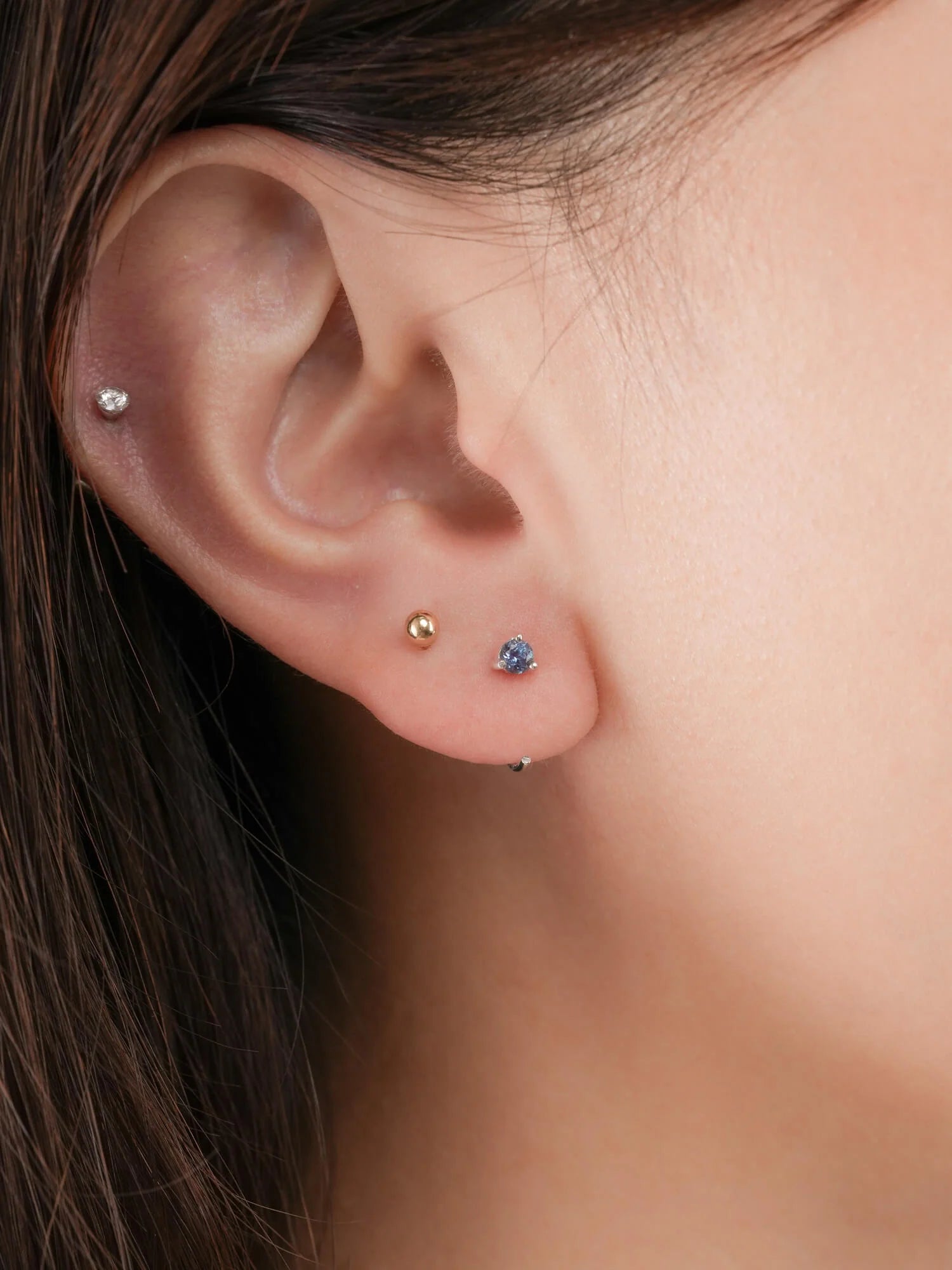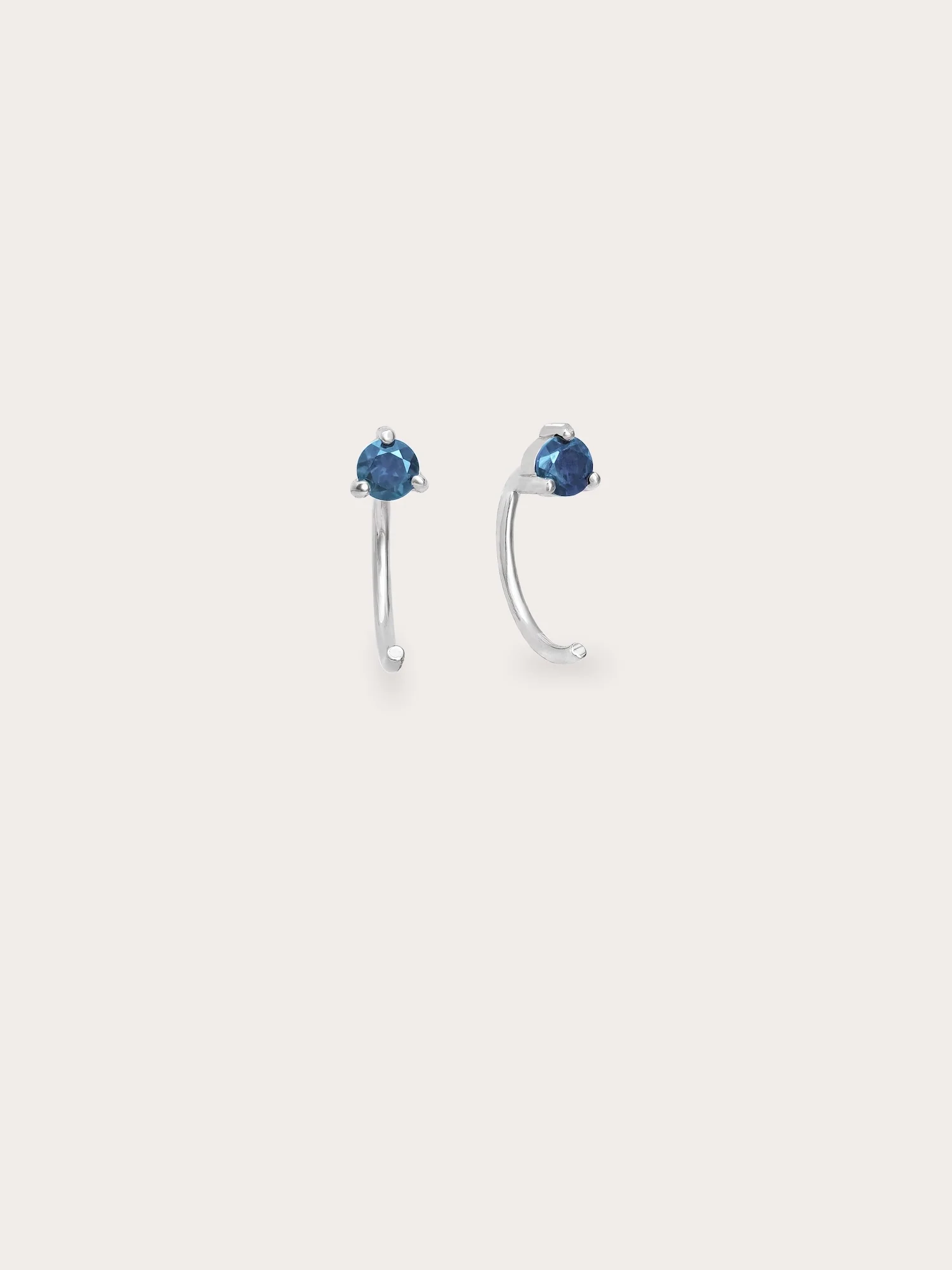 These mini hoop earrings feature lab-grown alexandrite stones. They are designed for daily wear. The open hoops are easy to wear, lightweight, versatile, and comfortable. They are suitable for the 1st, 2nd, and 3rd piercings. They are handcrafted with a type of vermeil where a thick layer of rhodium is plated on sterling silver.