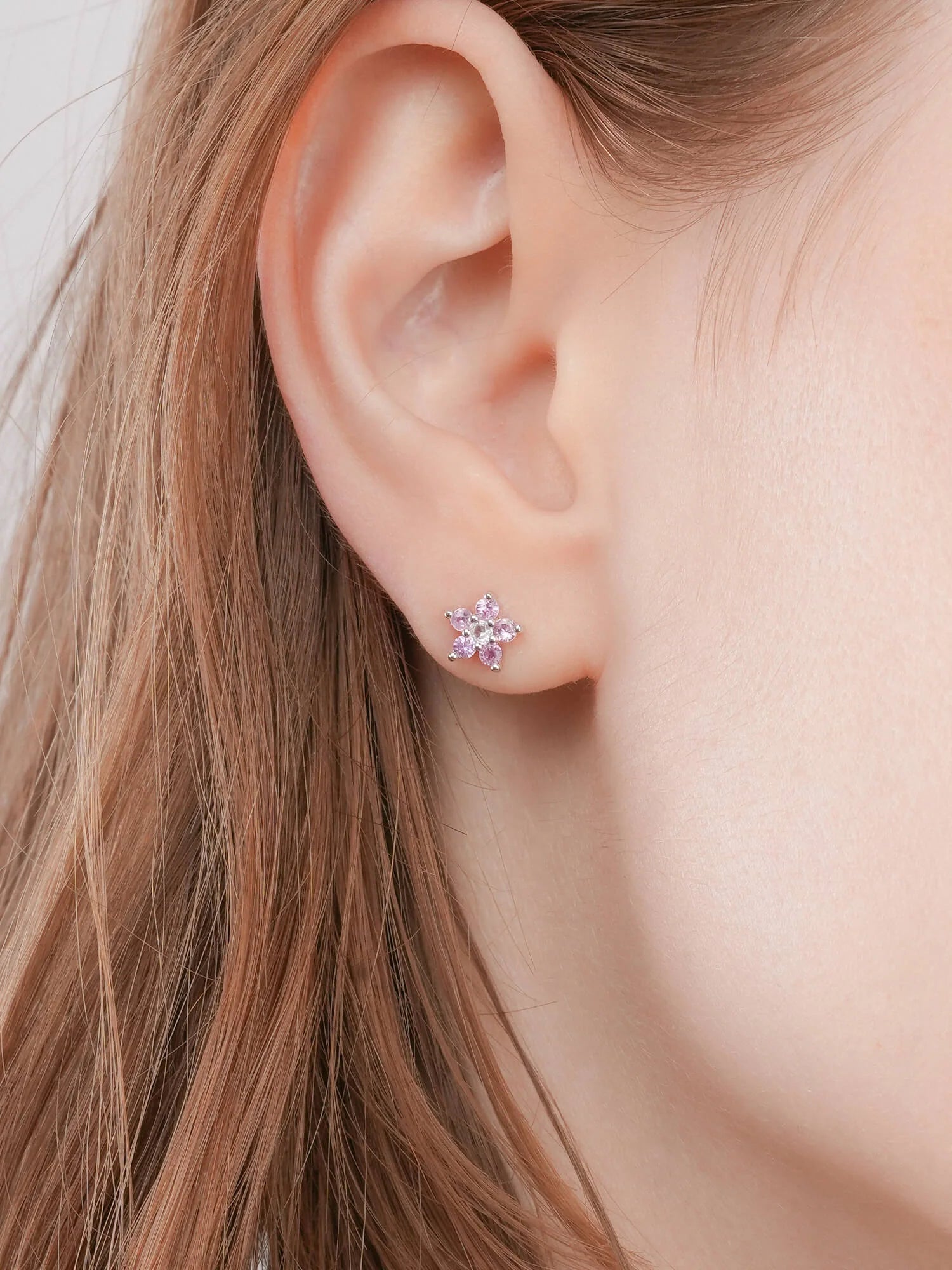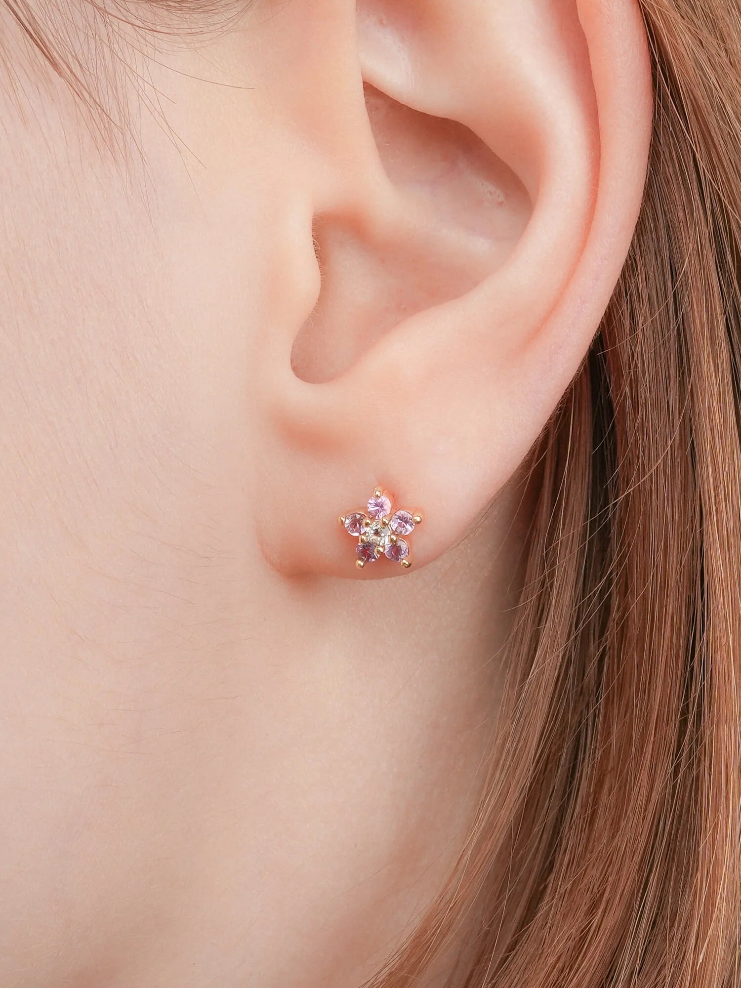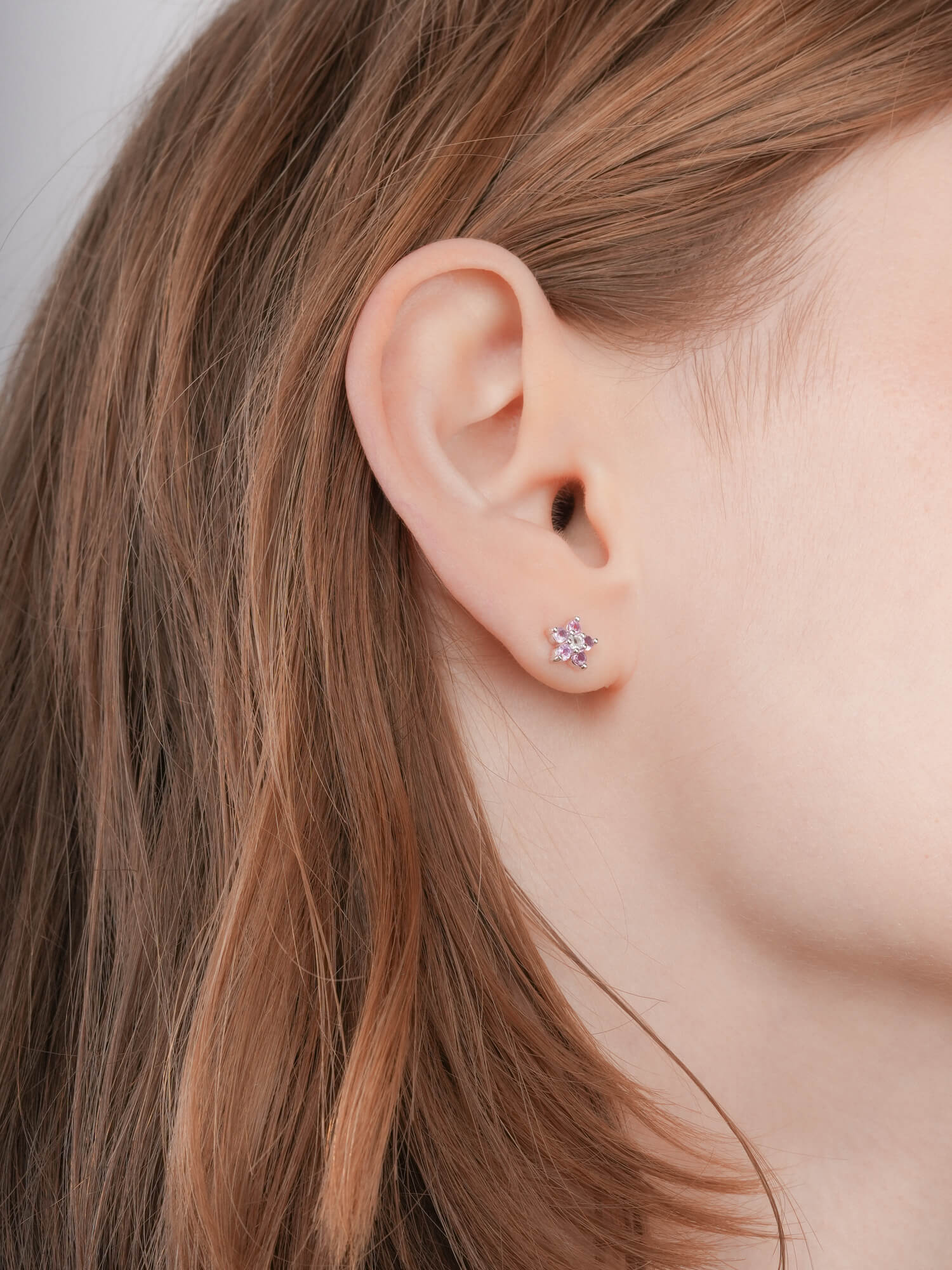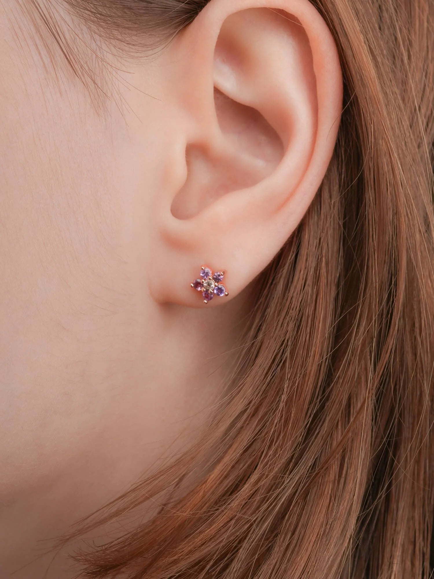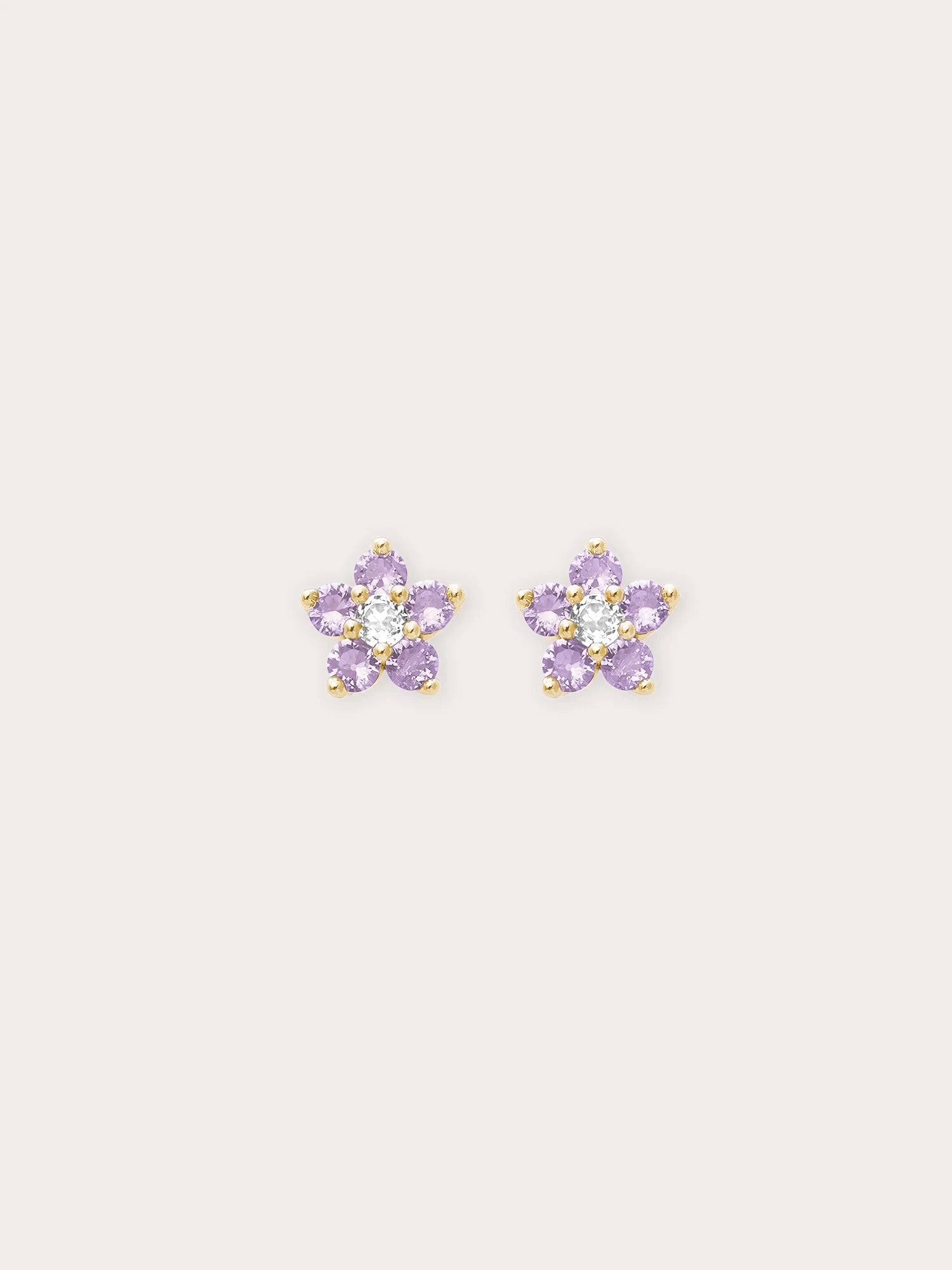 Celebrate your journey with the Lavender Flower Stud Earrings, a tribute to growth and inner wisdom. Featuring five light purple sapphire stones, these dainty flower earrings bring a soft touch of elegance and meaning to your everyday style. Handcrafted in 18k rose gold vermeil.