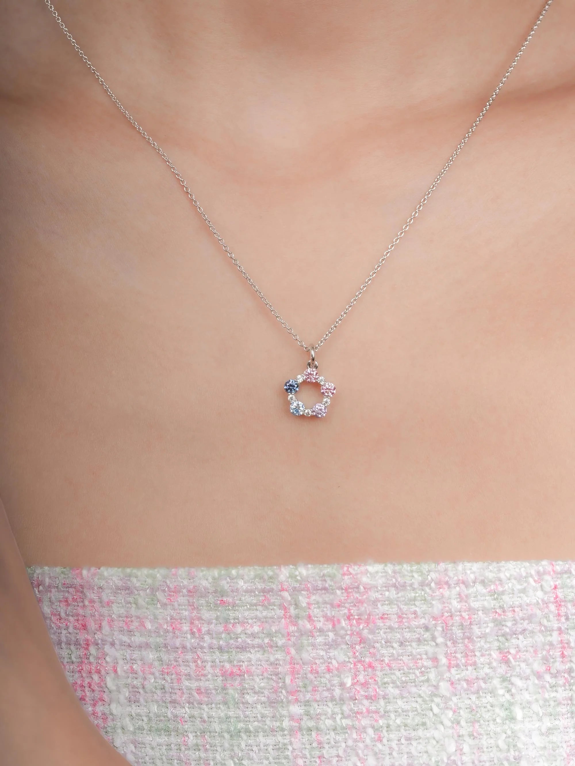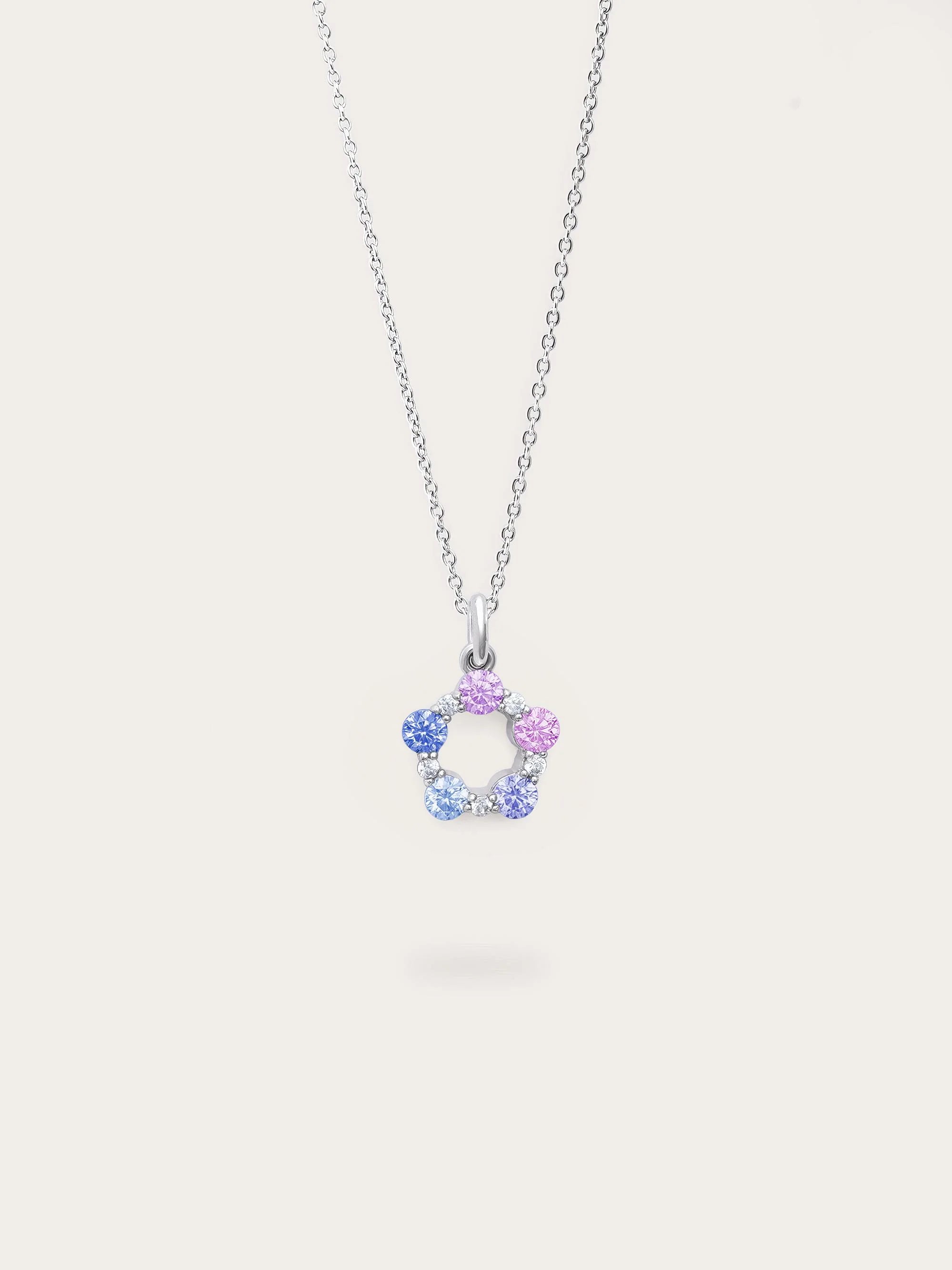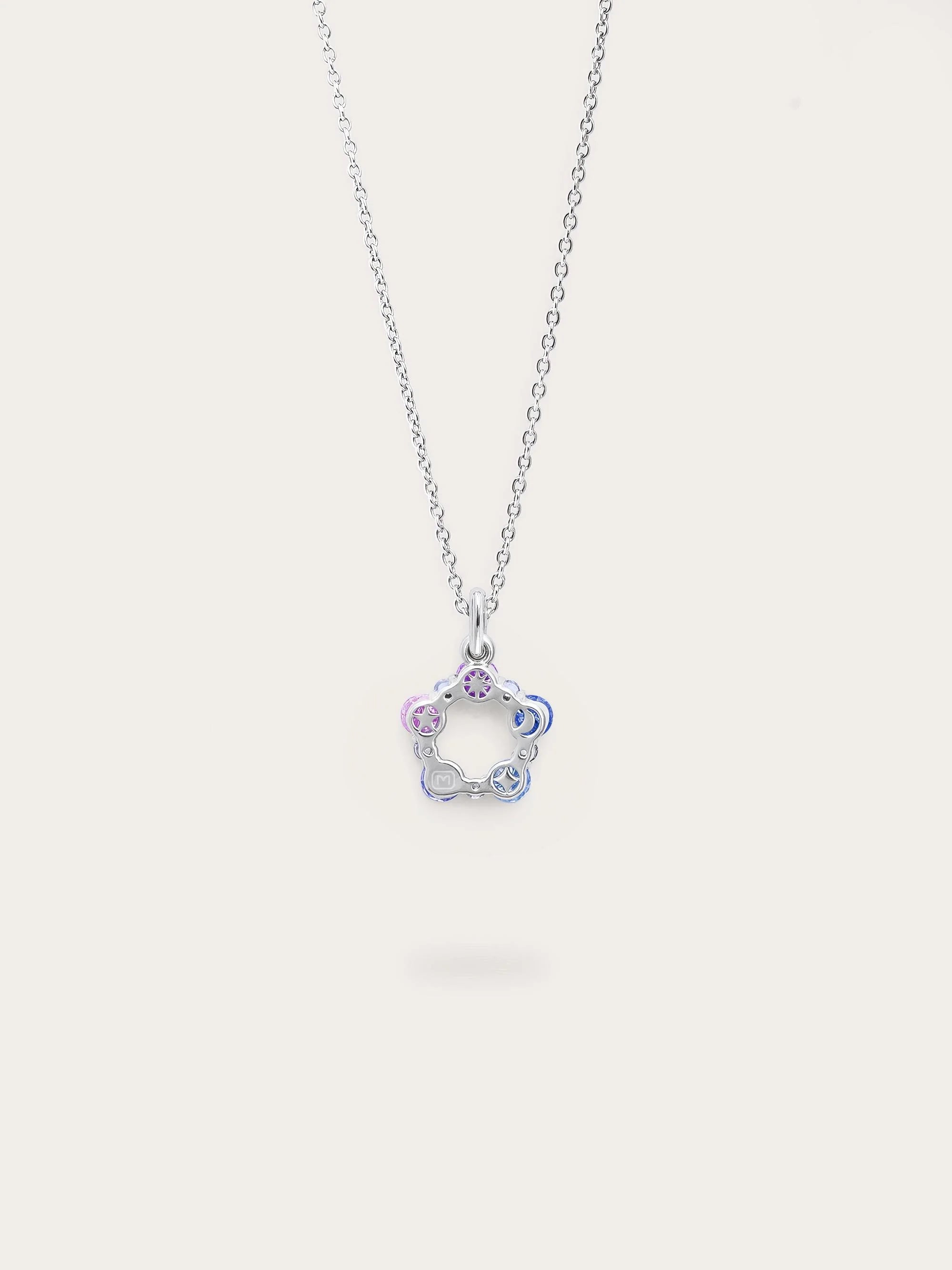 Evoking the tranquility of a lilac sunset, this necklace showcases 5 moissanite stones with a captivating pink, purple, and blue gradient, mirroring the gentle, dreamy tones of twilight. It's hand - crafted using a particular rhodium - plated silver material.