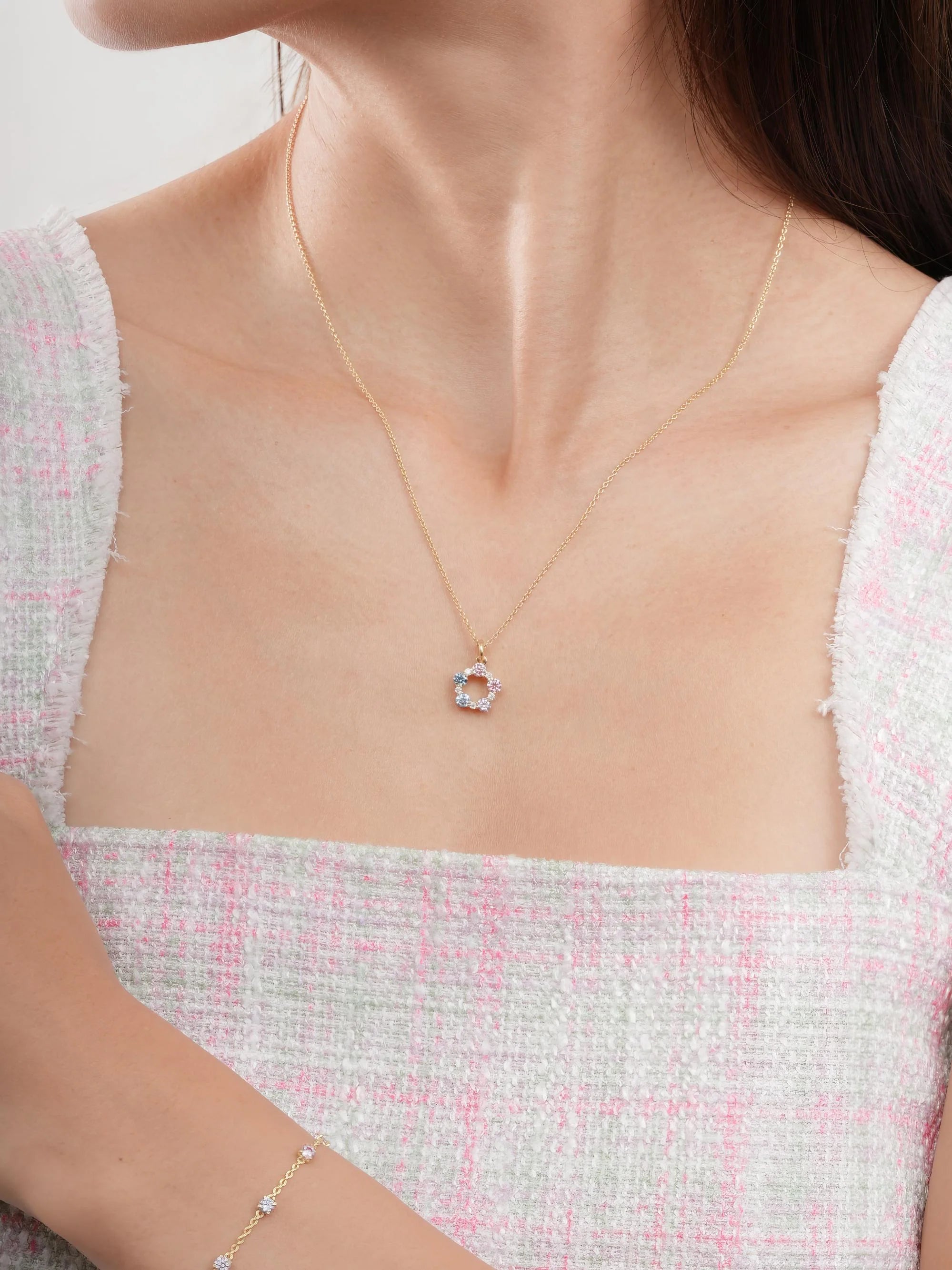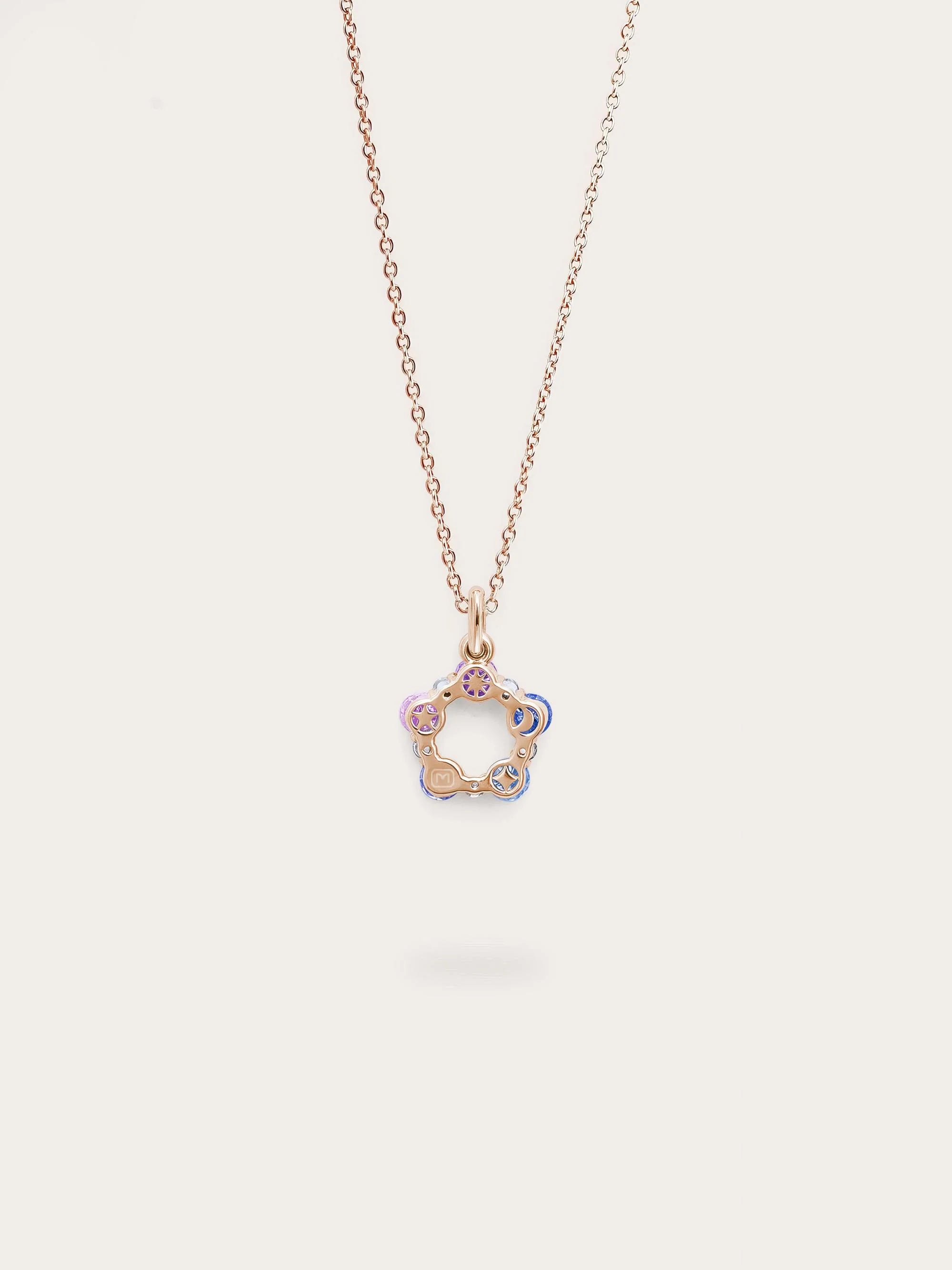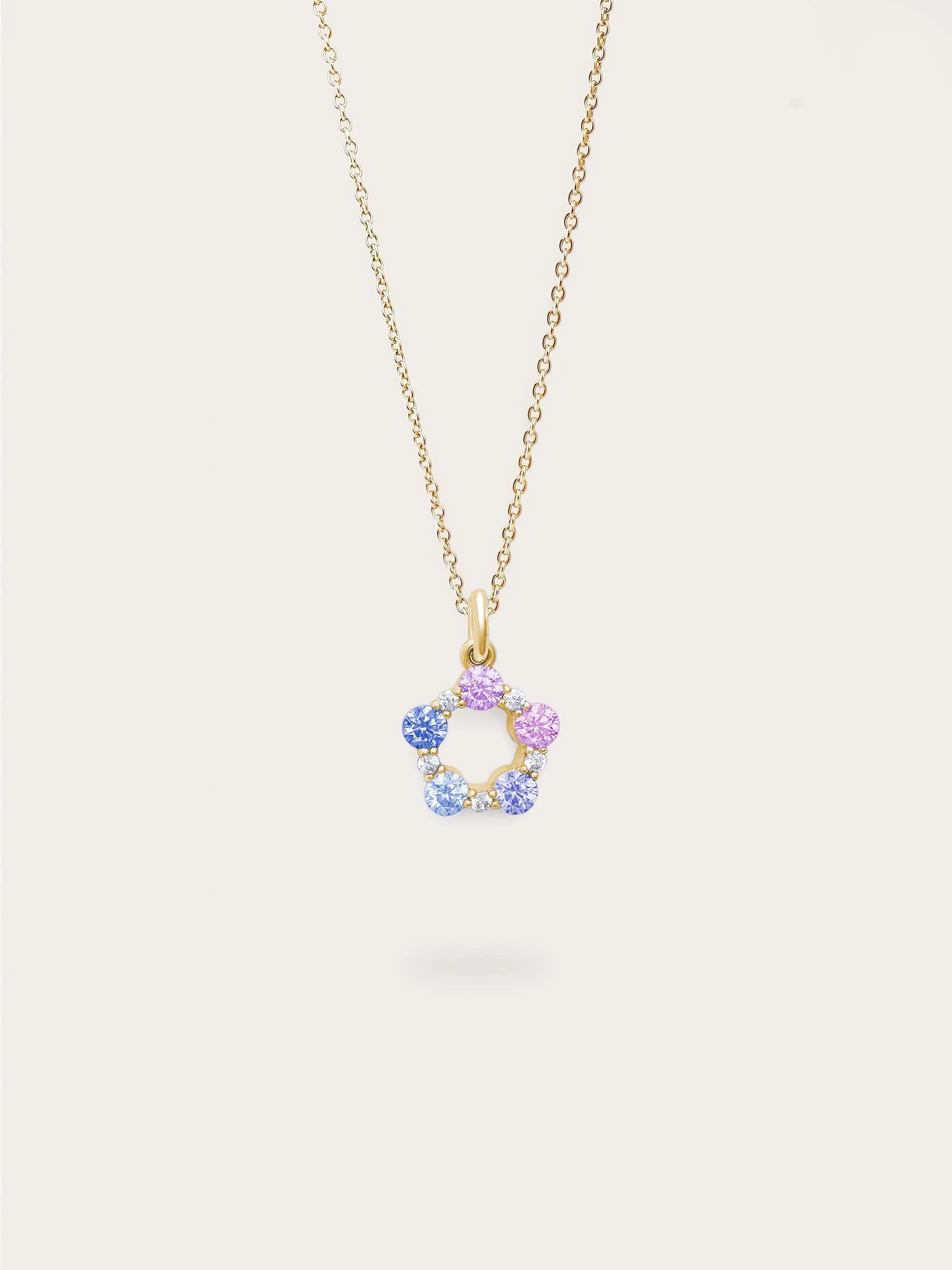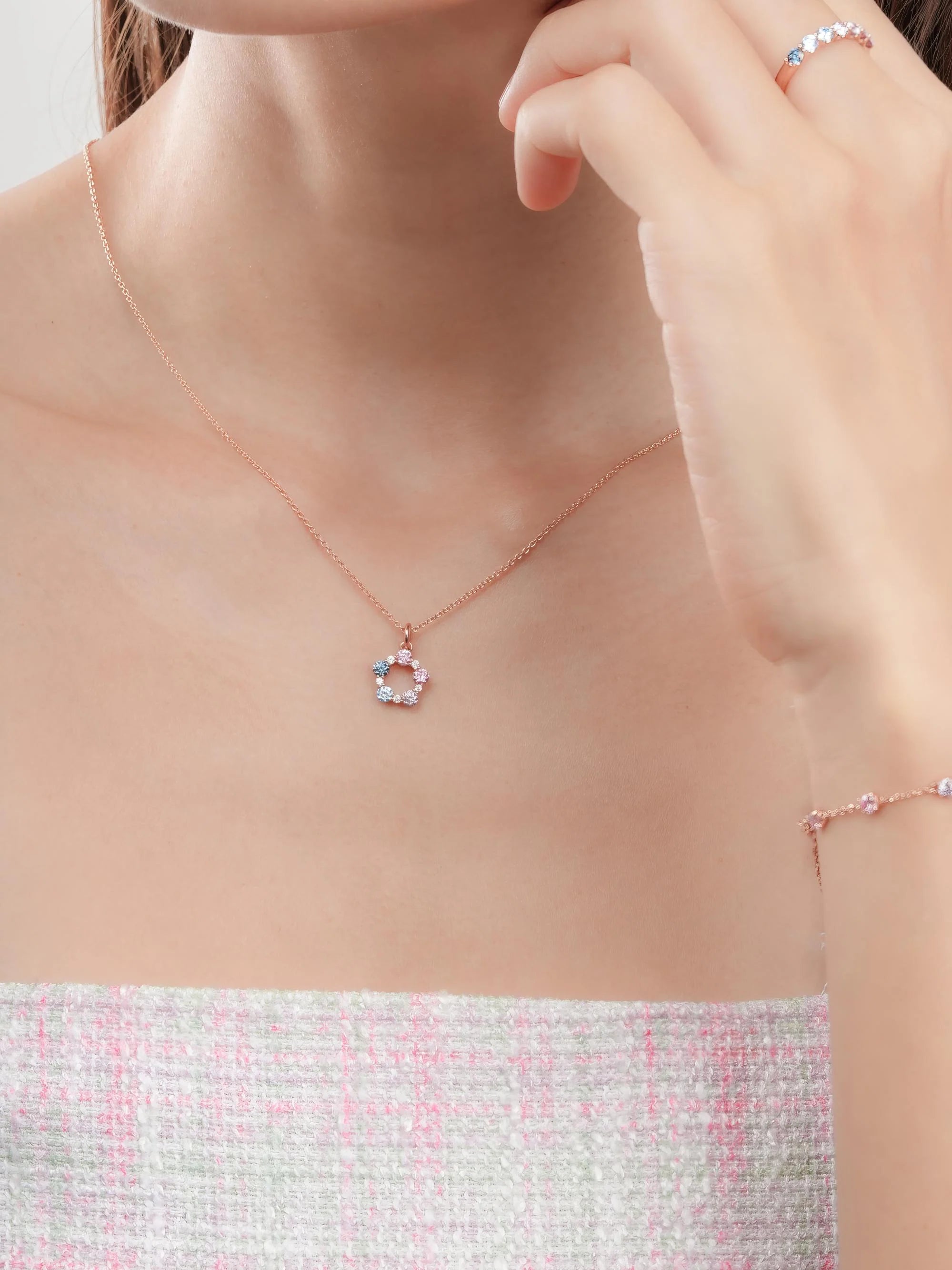 Evoking the tranquility of a lilac sunset, this necklace showcases 5 moissanite stones with a captivating pink, purple, and blue gradient, mirroring the gentle, dreamy tones of twilight. It's hand - crafted using a particular rhodium - plated silver material.