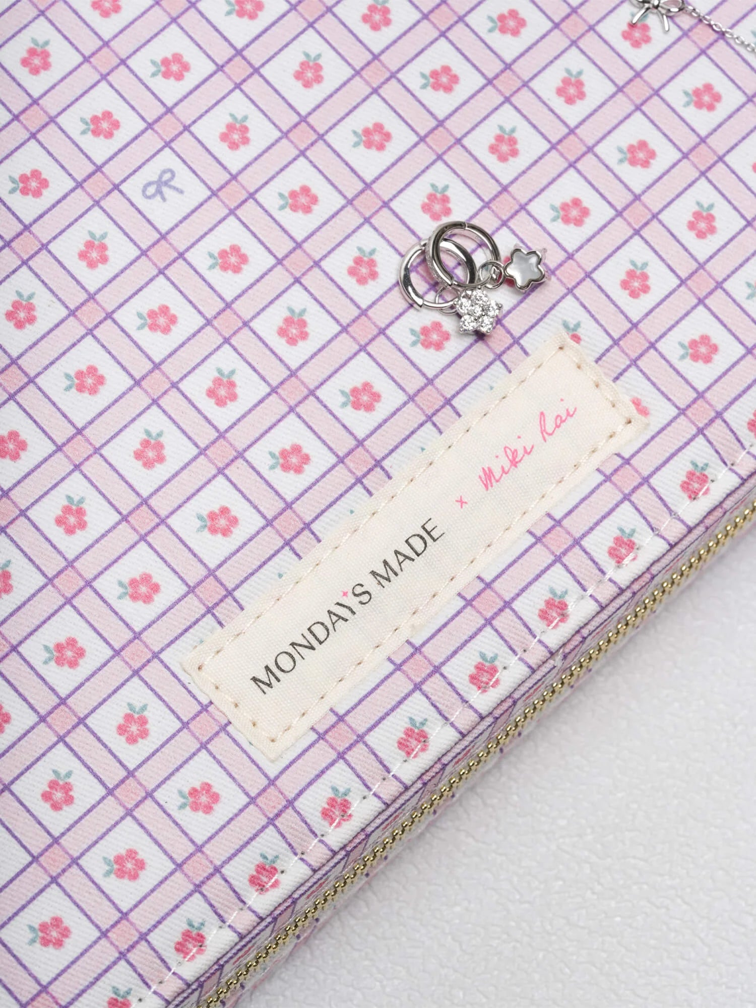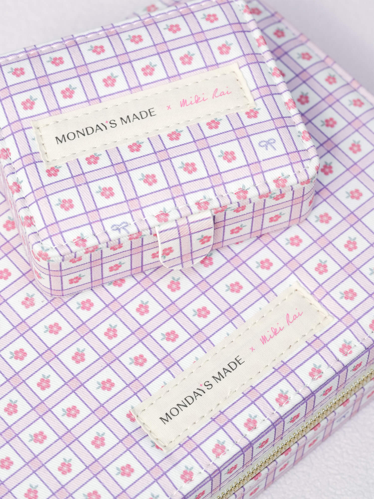 It is wrapped in a checkerboard cotton fabric with small floral accents and lined with soft blush pink suede. It not only serves as an eye - catching item on your dresser but also a secure place for your jewelry.