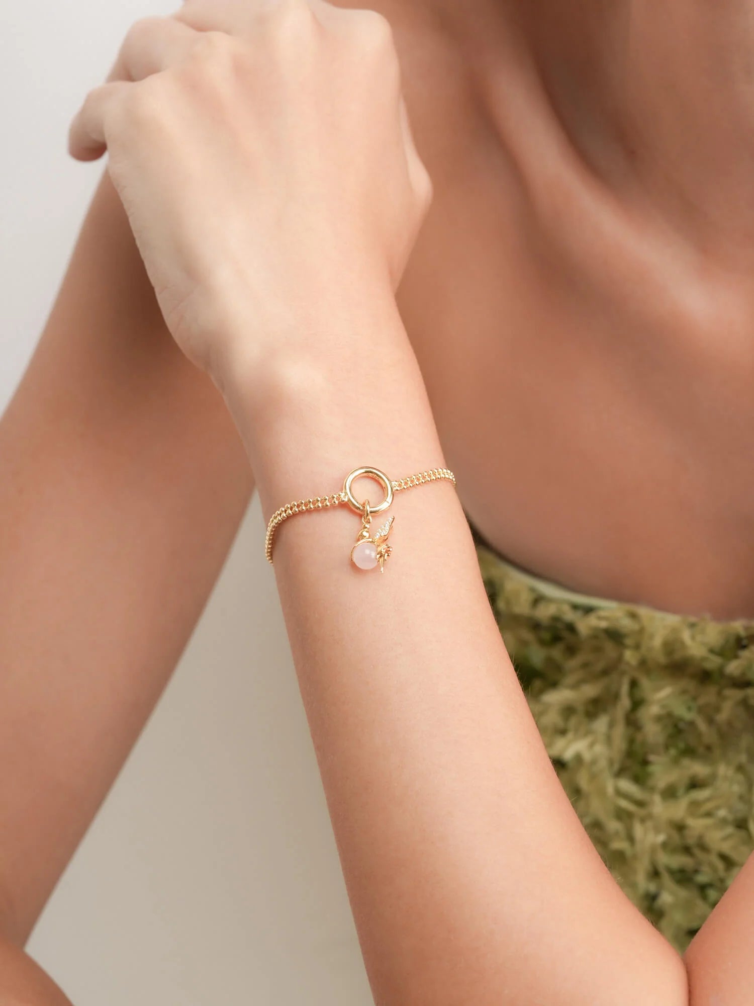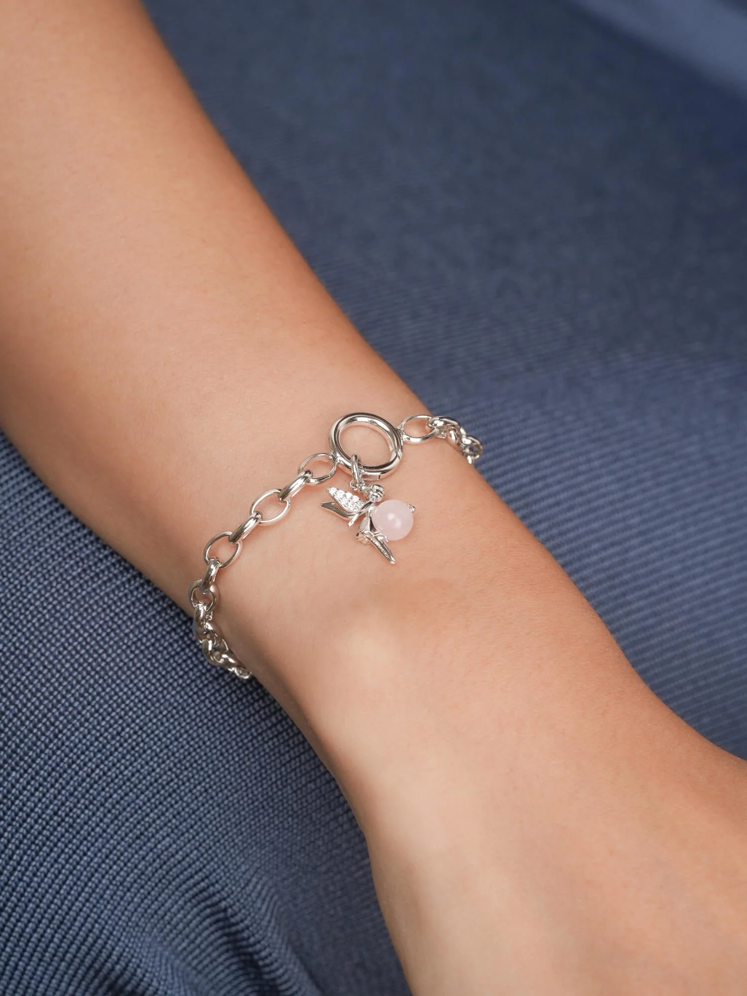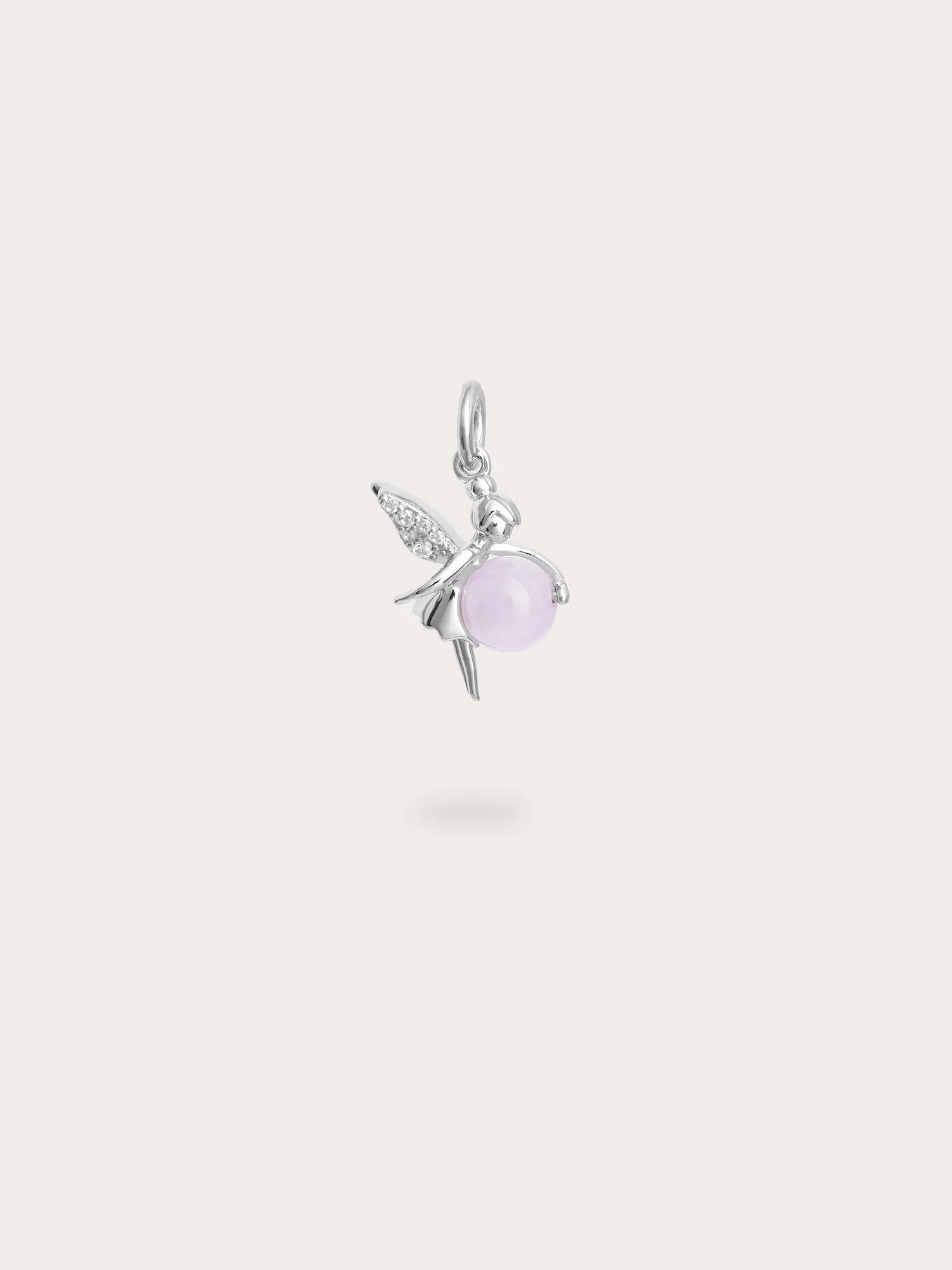 Skillfully crafted, this charm depicts a charming fairy holding a glowing rose quartz stone, conveying wishes of love, kindness, and emotional restoration. It's a meaningful memento or a considerate gift, carrying your wishes and making them come true. Handmade with 18k gold vermeil.