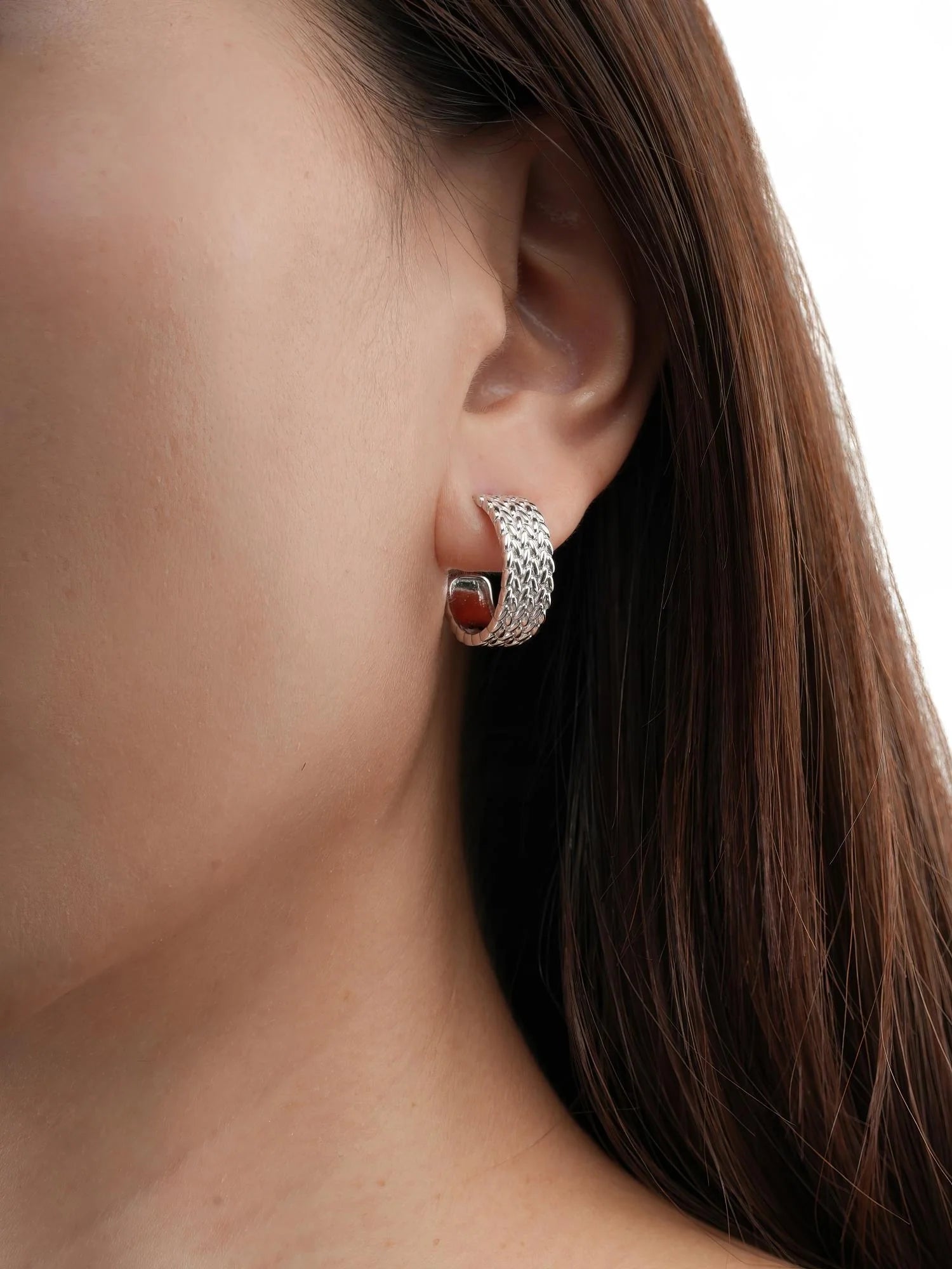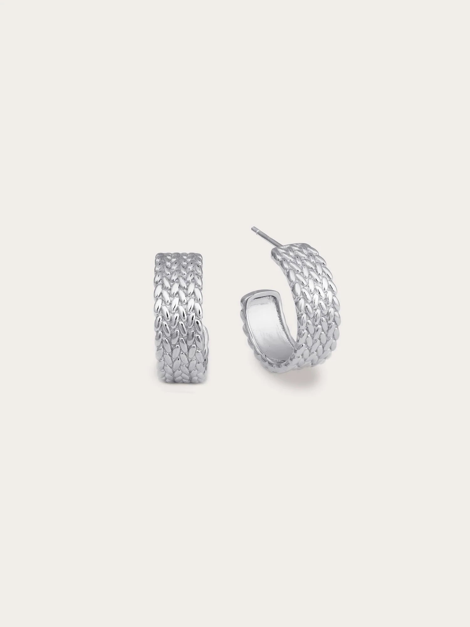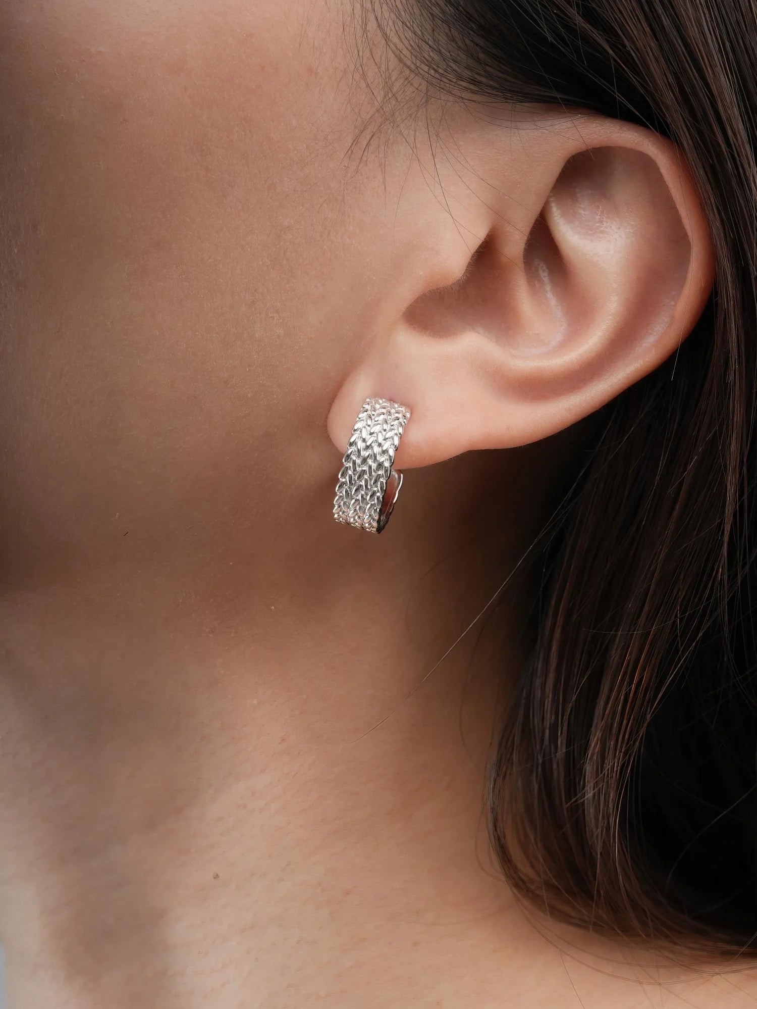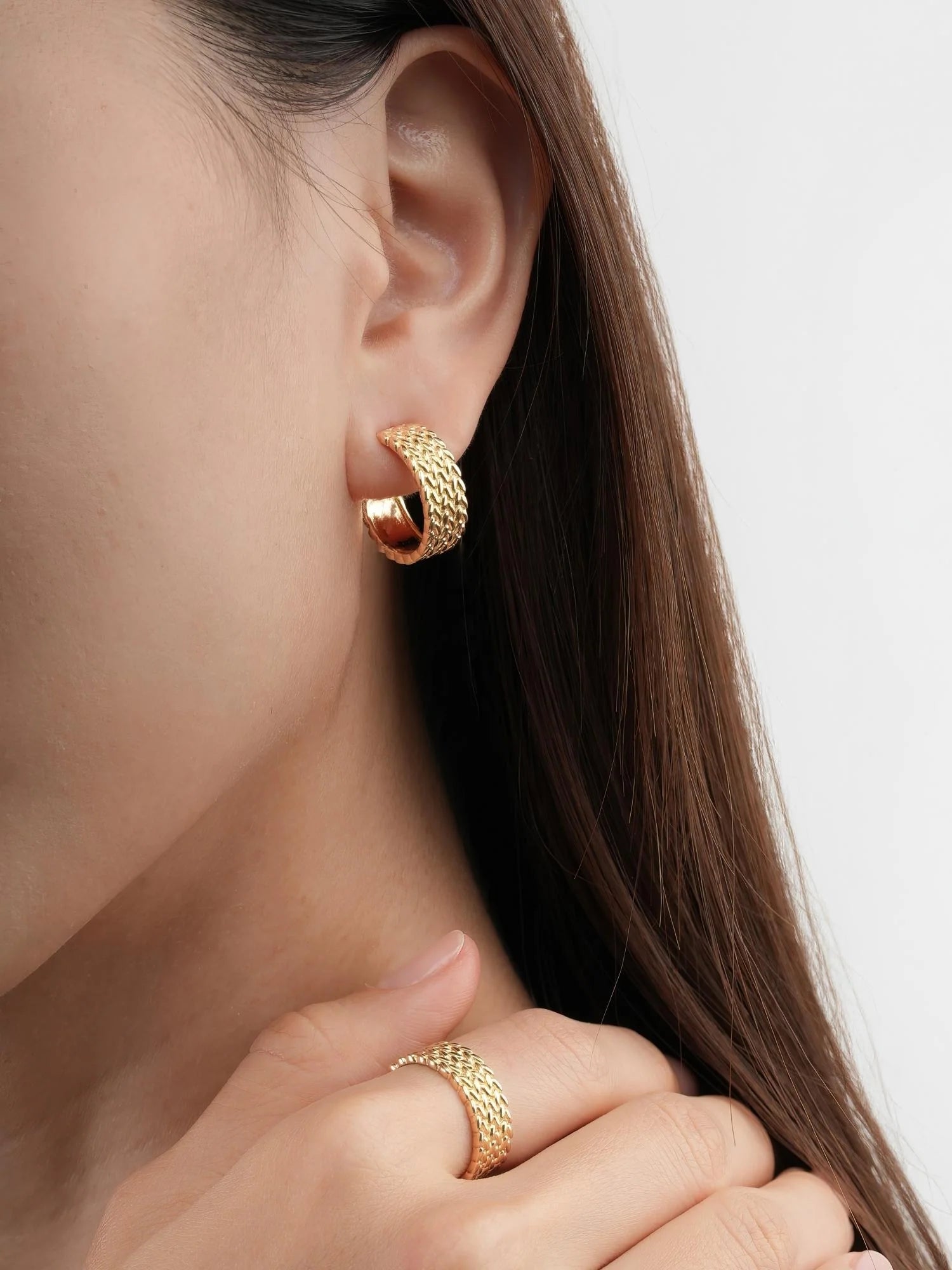 Inspired by old - style mesh watch bands, these hoop earrings combine tradition with modern elements. Their unique texture quietly showcases a trendy style. Hand - made with 18k gold vermeil.