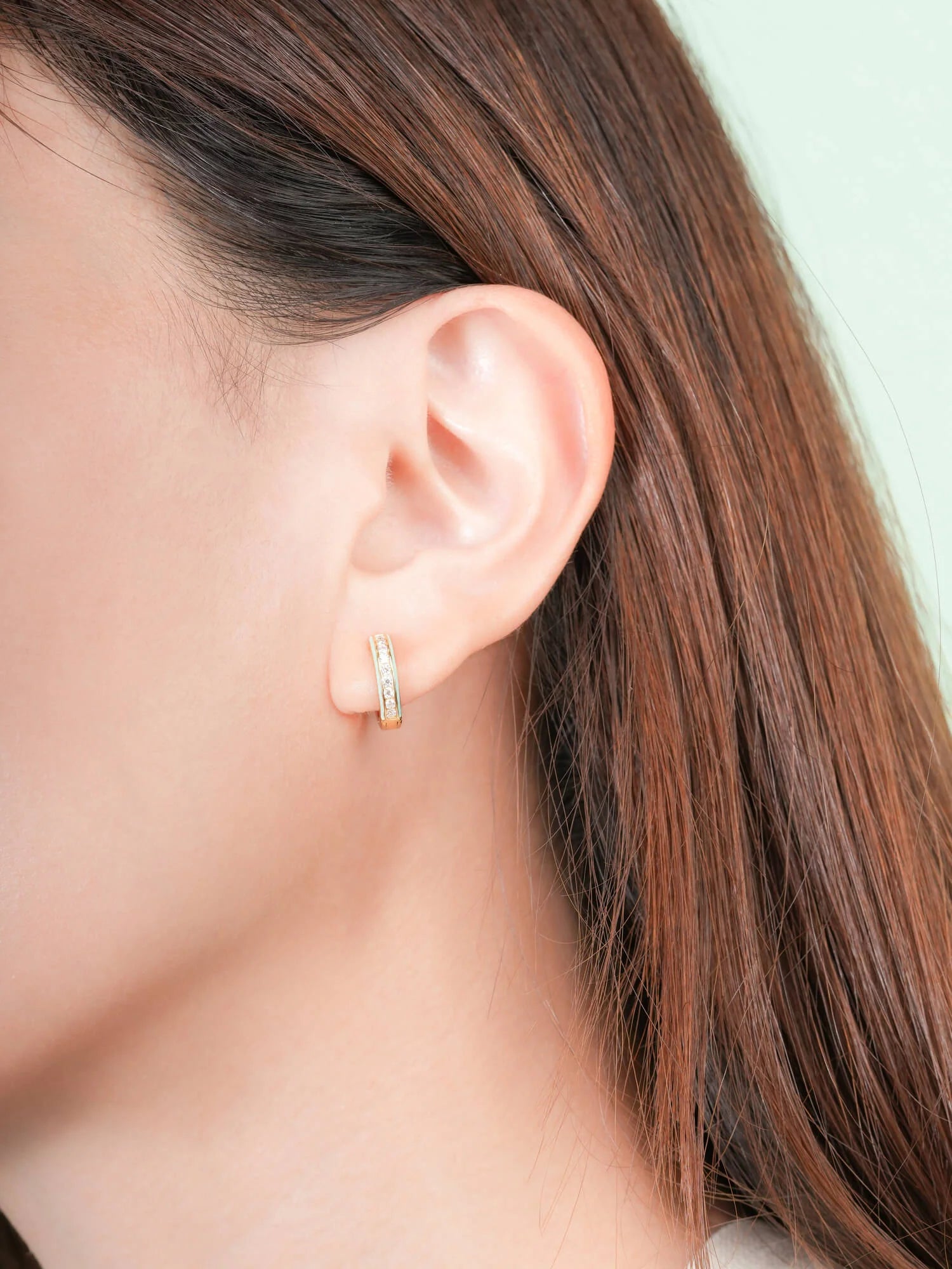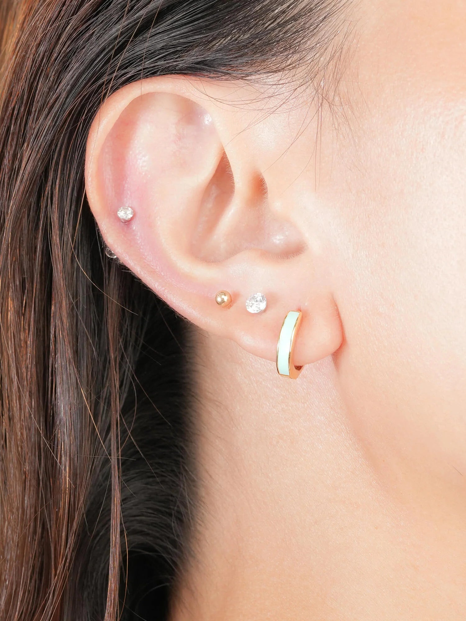 The mint enamel moissanite reversible huggie earrings offer two styles in one. It's a mint - green enamel huggie earring.