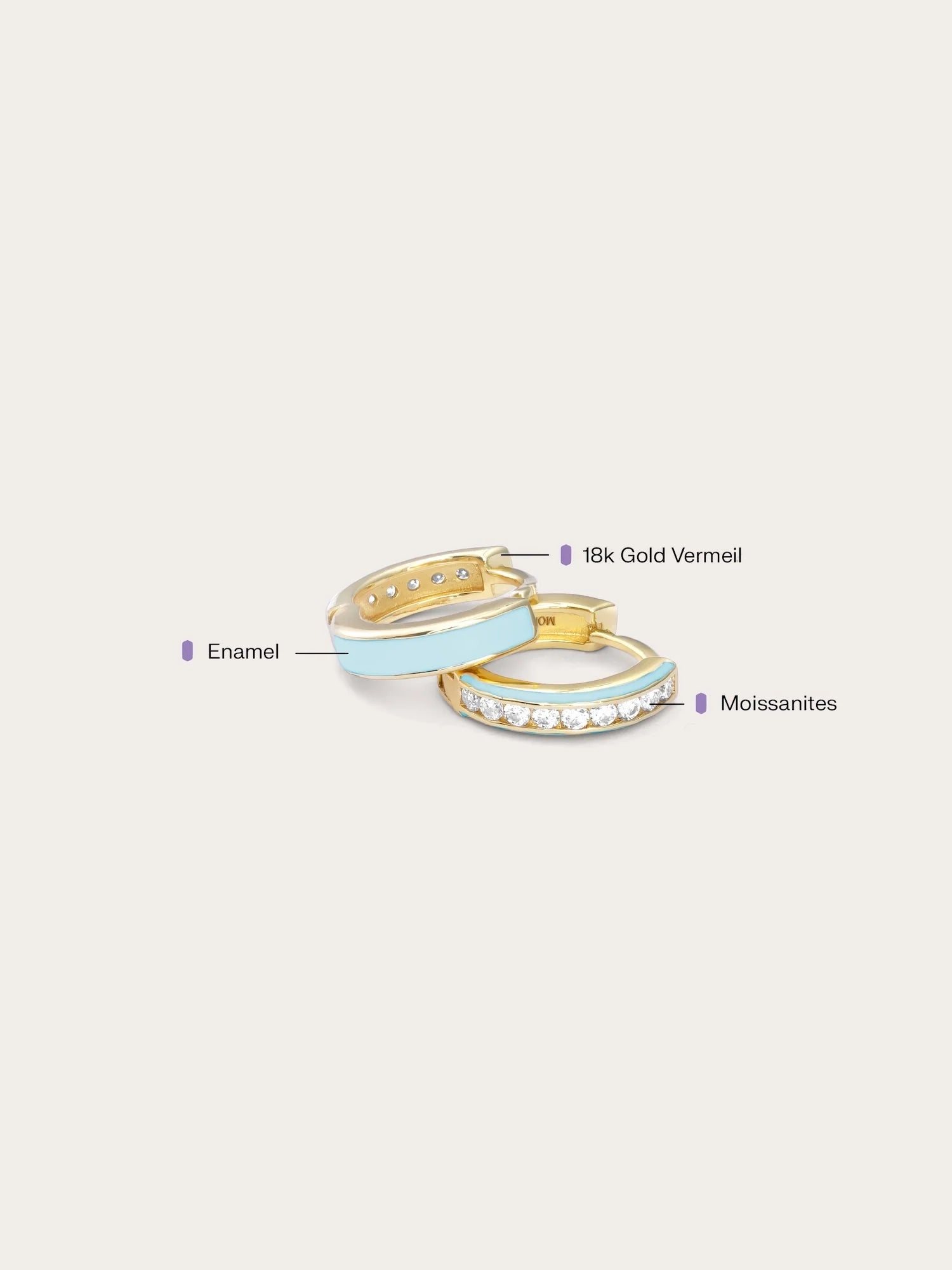 Lightweight and comfortable, these huggies fit close to the ear and are ideal for daily wear. The pastel enamel adds a soft splash of color, making them easy to pair for any event.