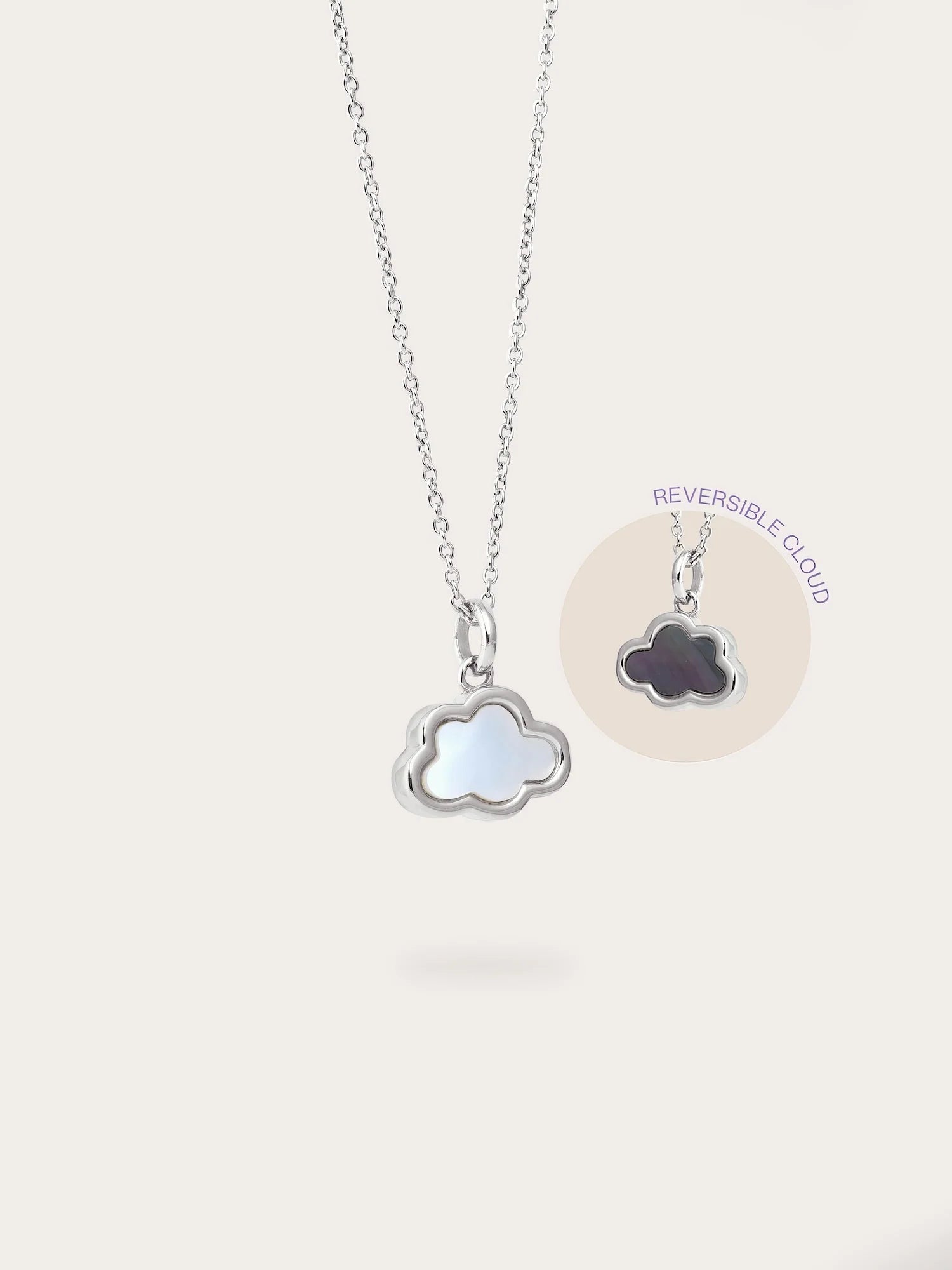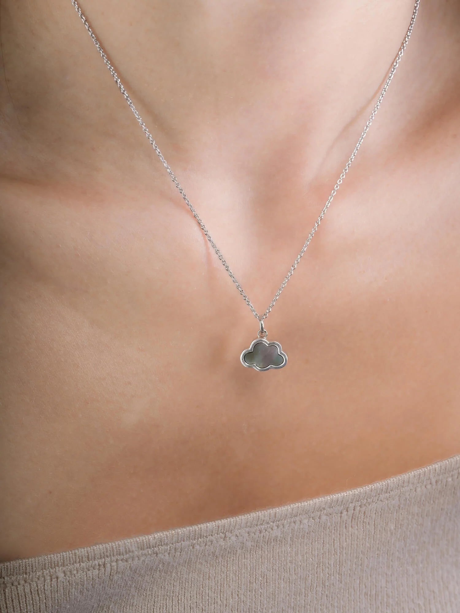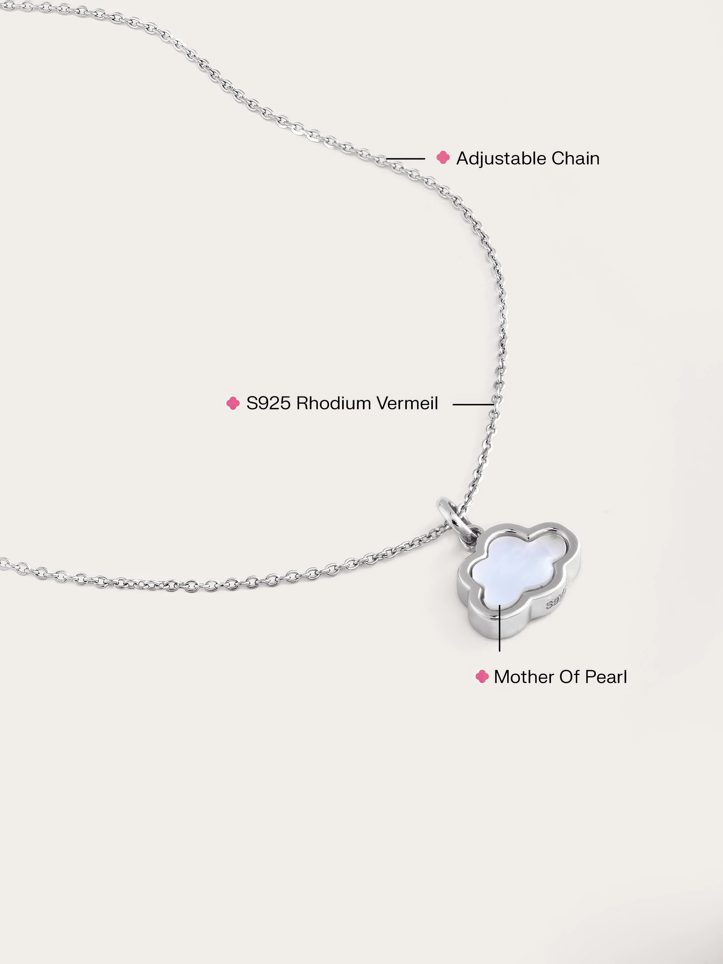 This pendant is crafted in a simple cloud design to emphasize the glow of natural mother-of-pearl. It's hand - made with a special rhodium - plated material.