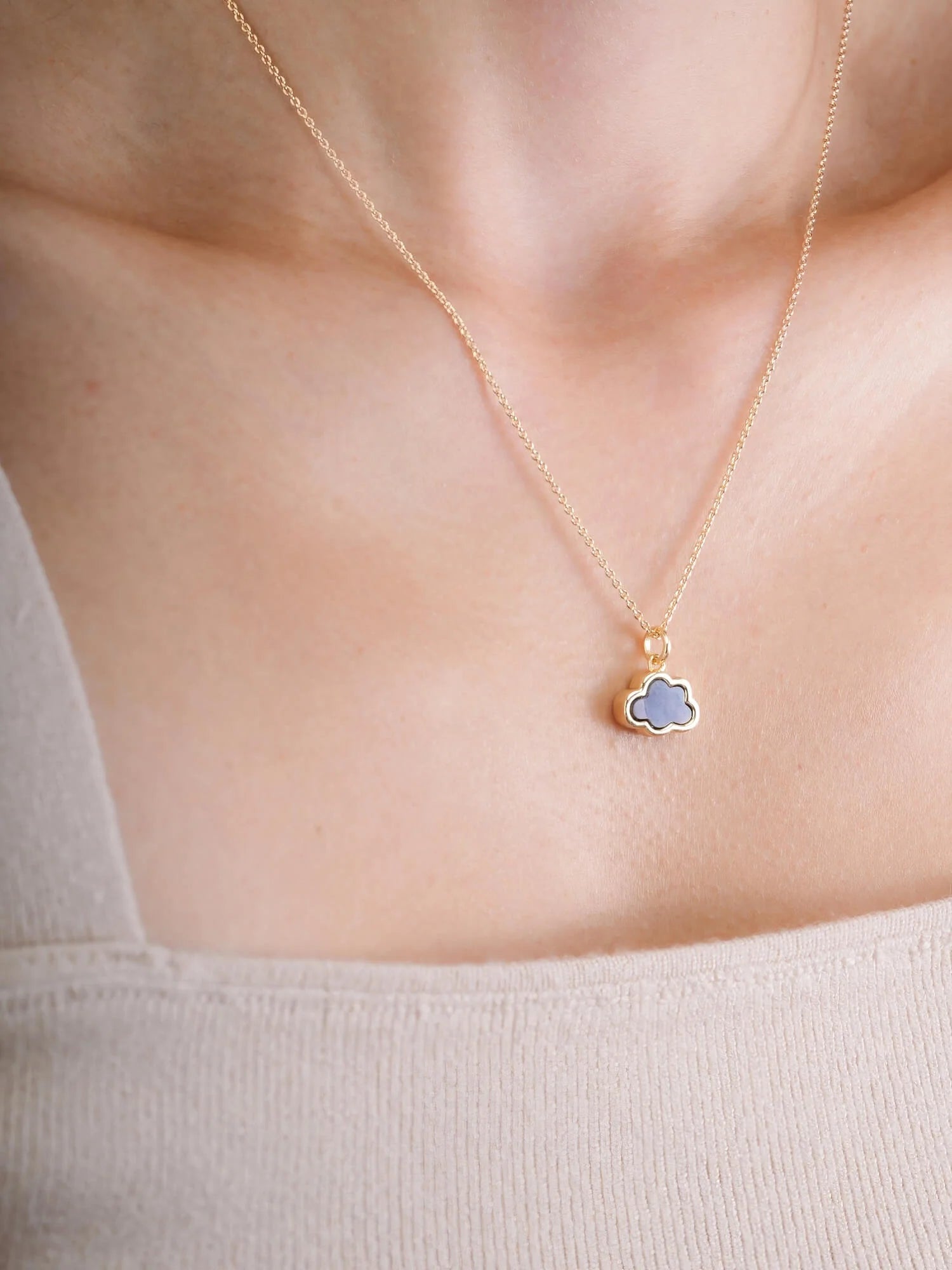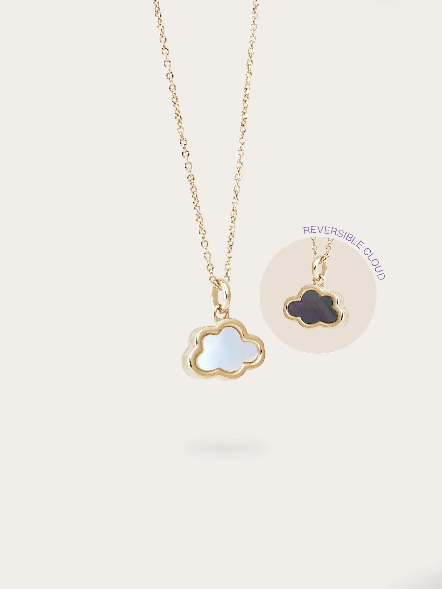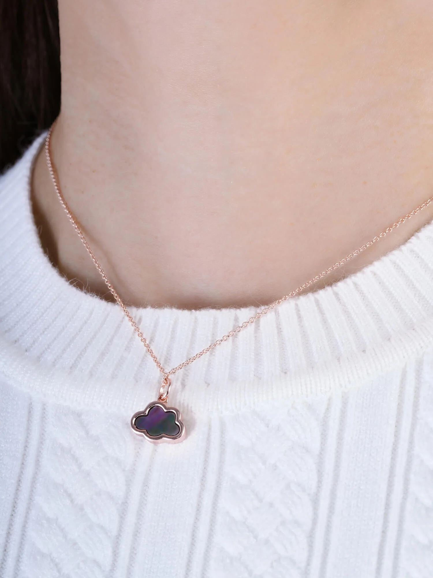 This pendant is crafted in a simple cloud design to emphasize the glow of natural mother-of-pearl. It's hand - made with a special rhodium - plated material.