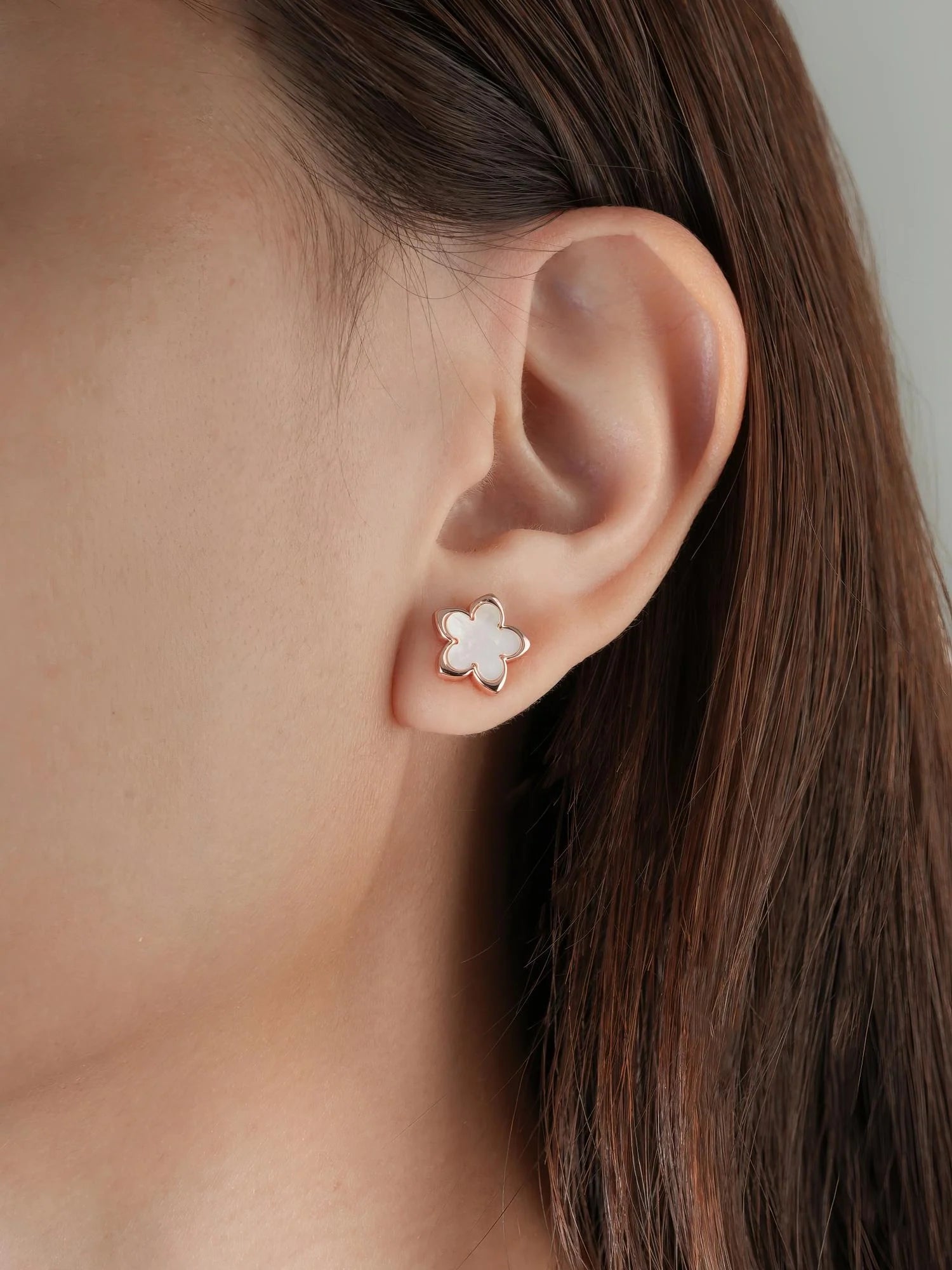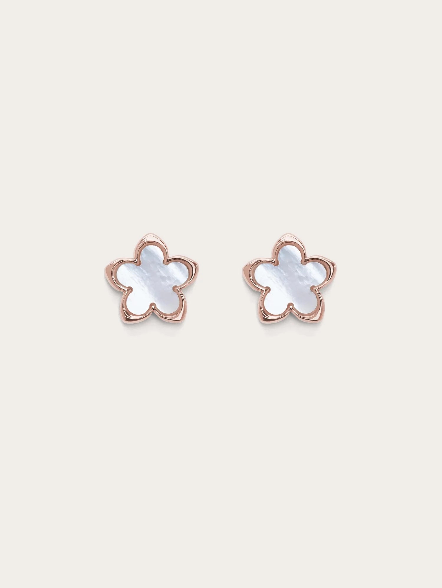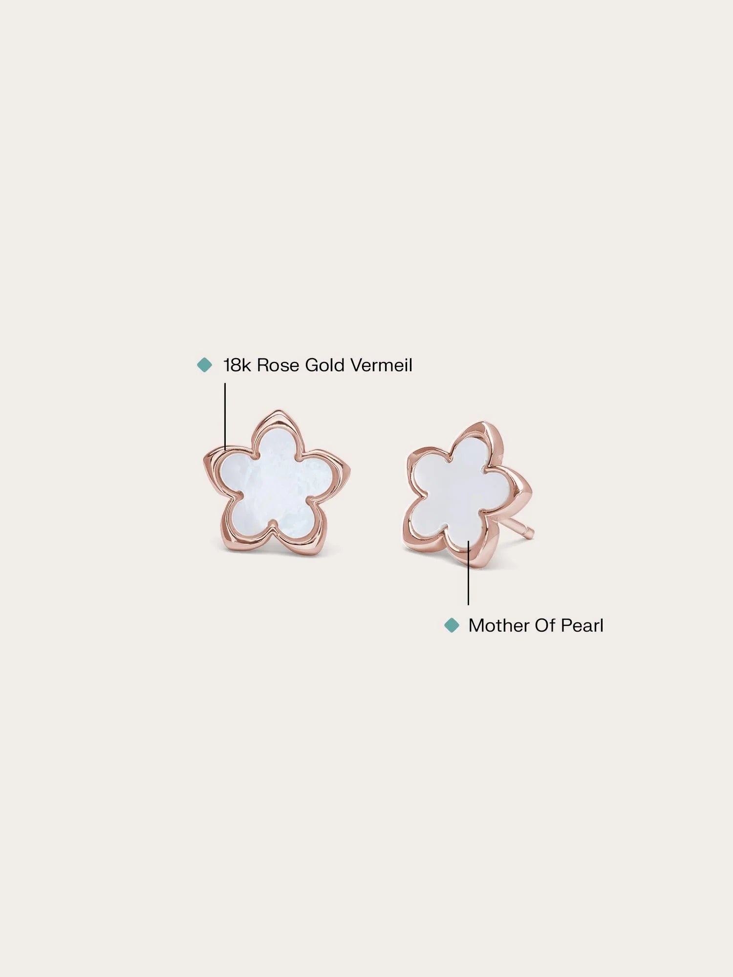 These stud earrings feature natural mother of pearl in Sakura motifs to capture the essence of beauty and renewal. Handcrafted in 18k rose gold vermeil.