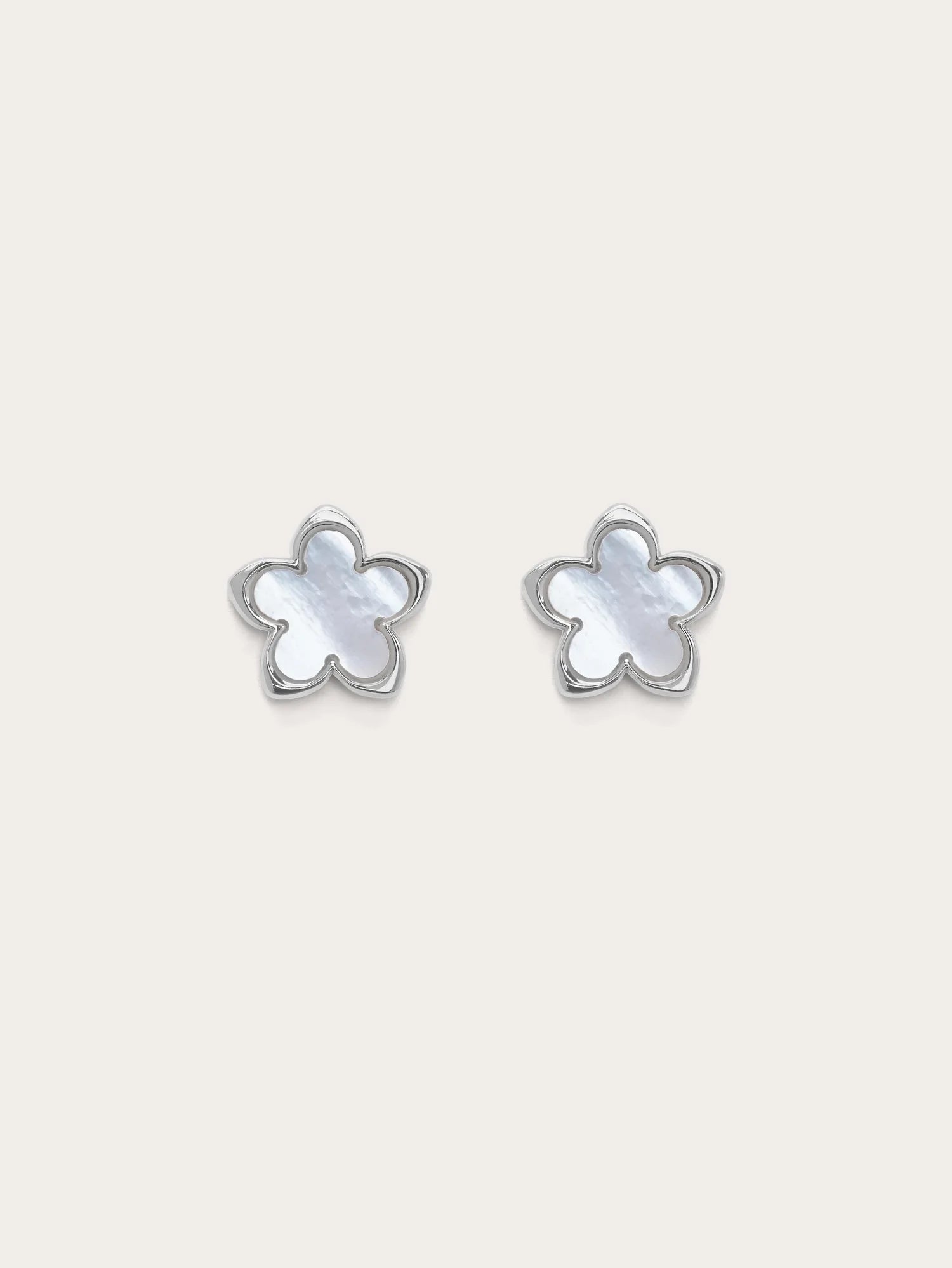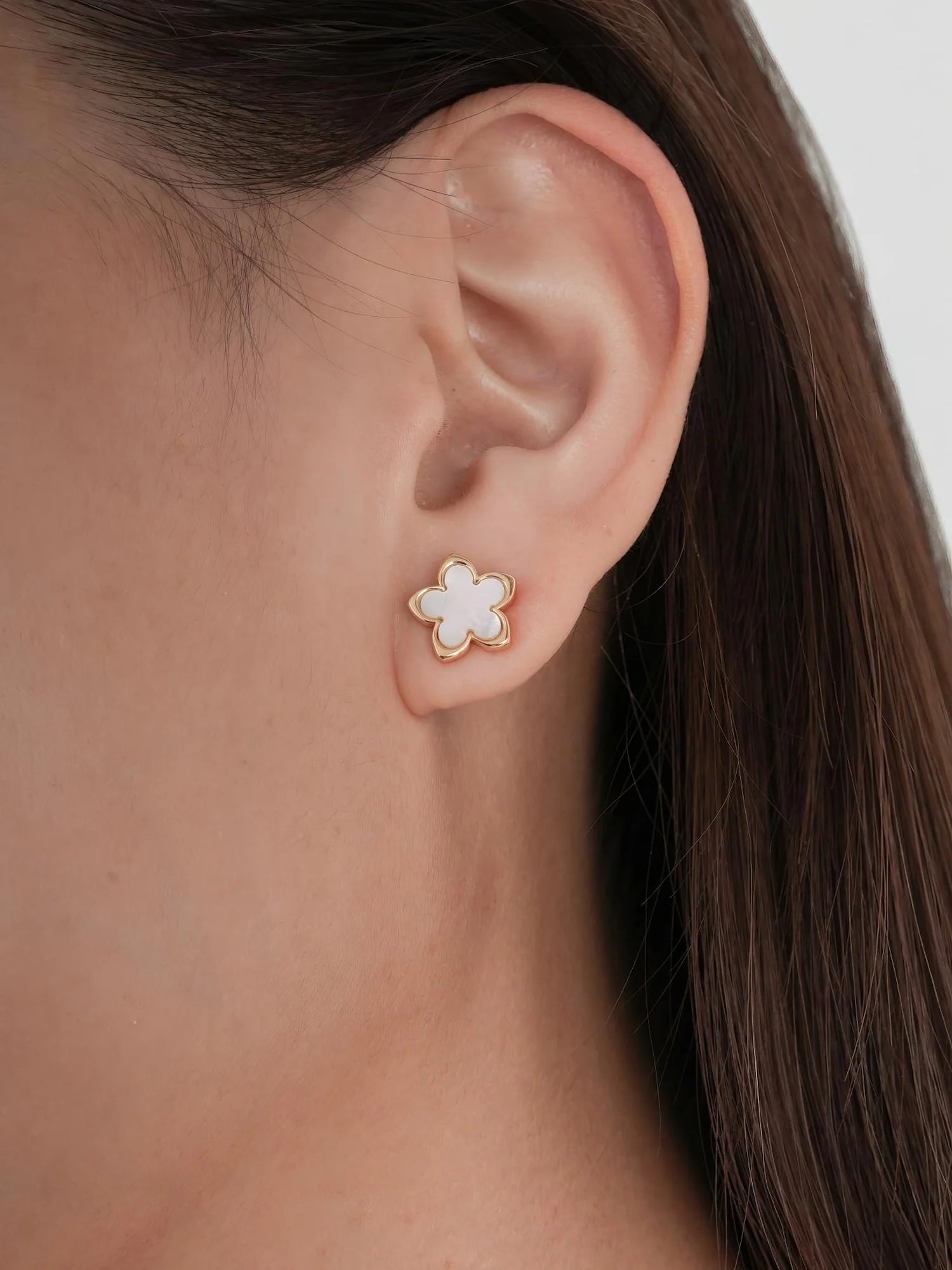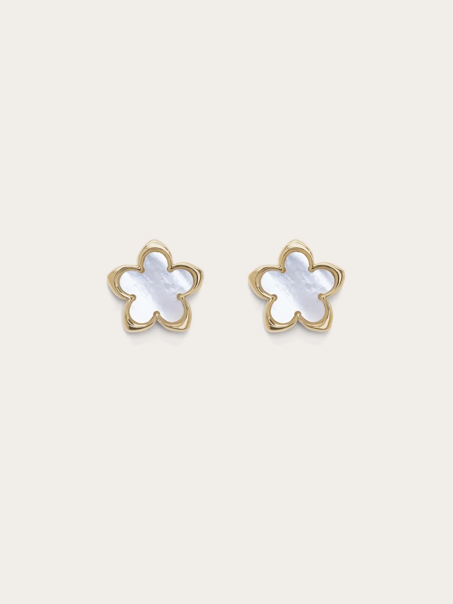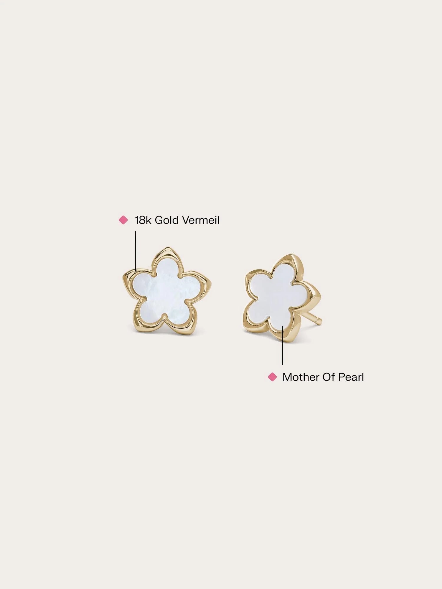 These stud earrings feature natural mother of pearl in Sakura motifs to capture the essence of beauty and renewal. Handcrafted in 18k rose gold vermeil.