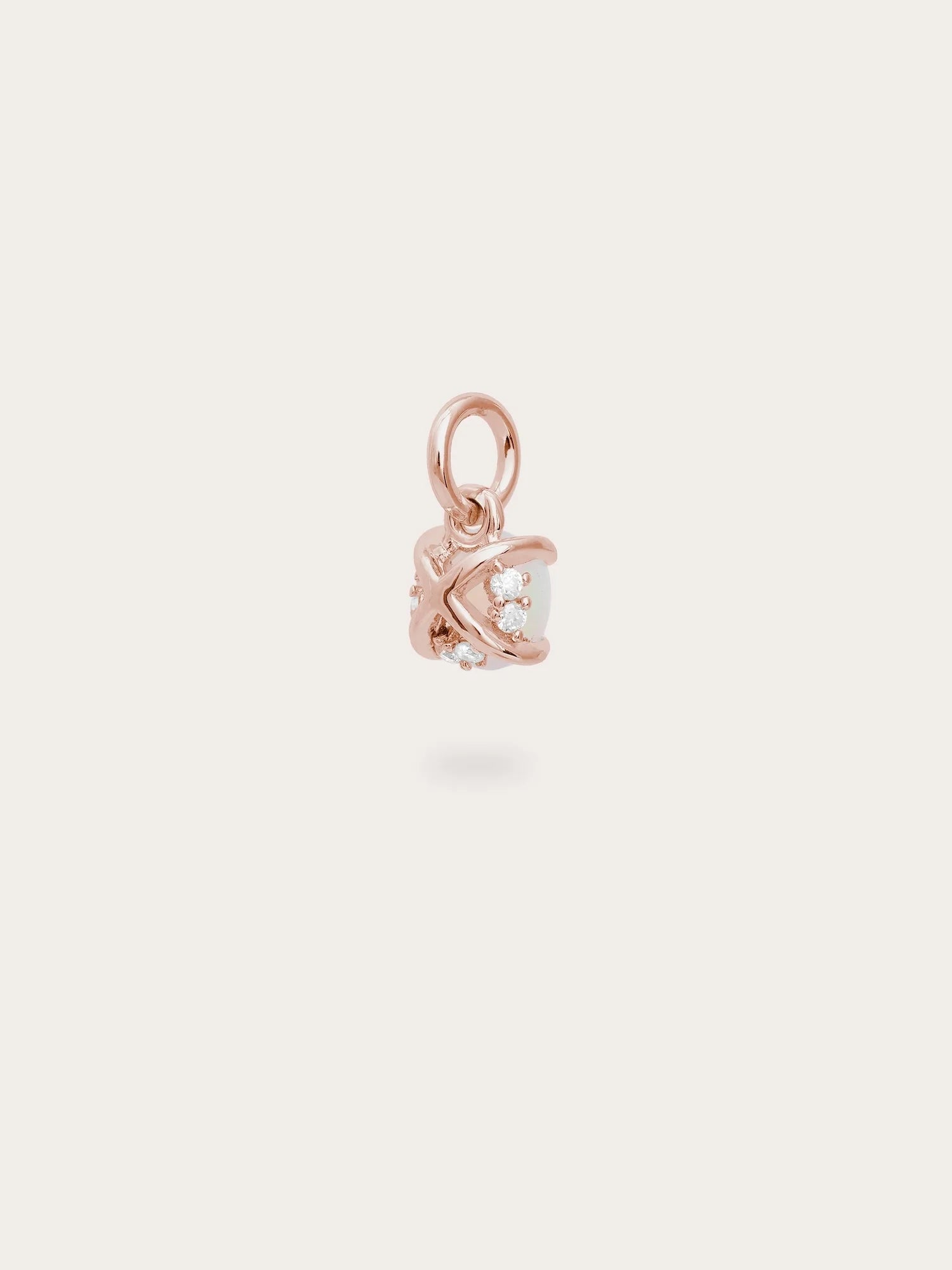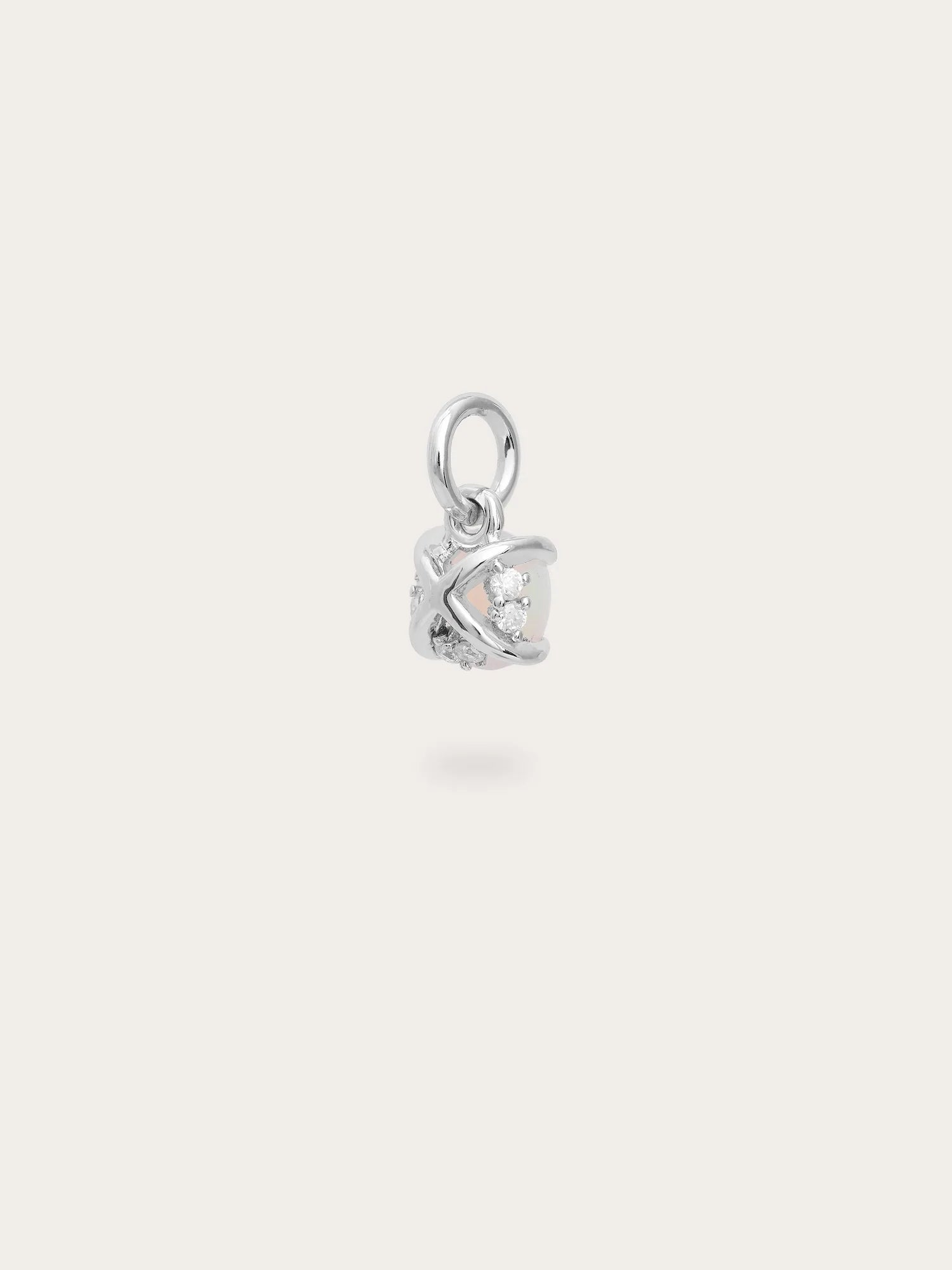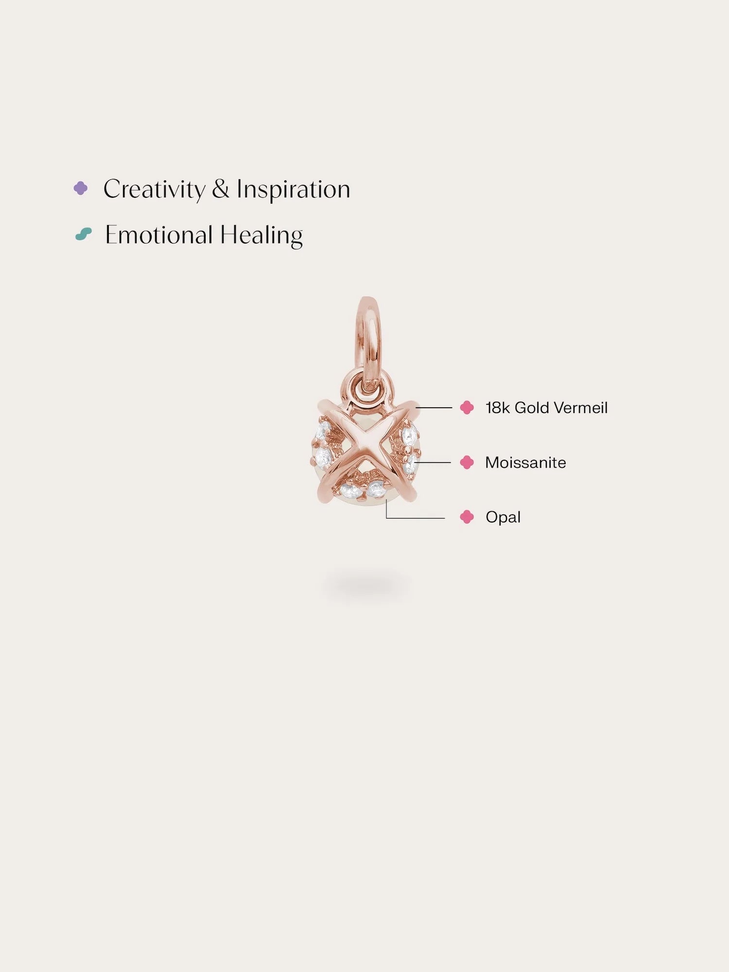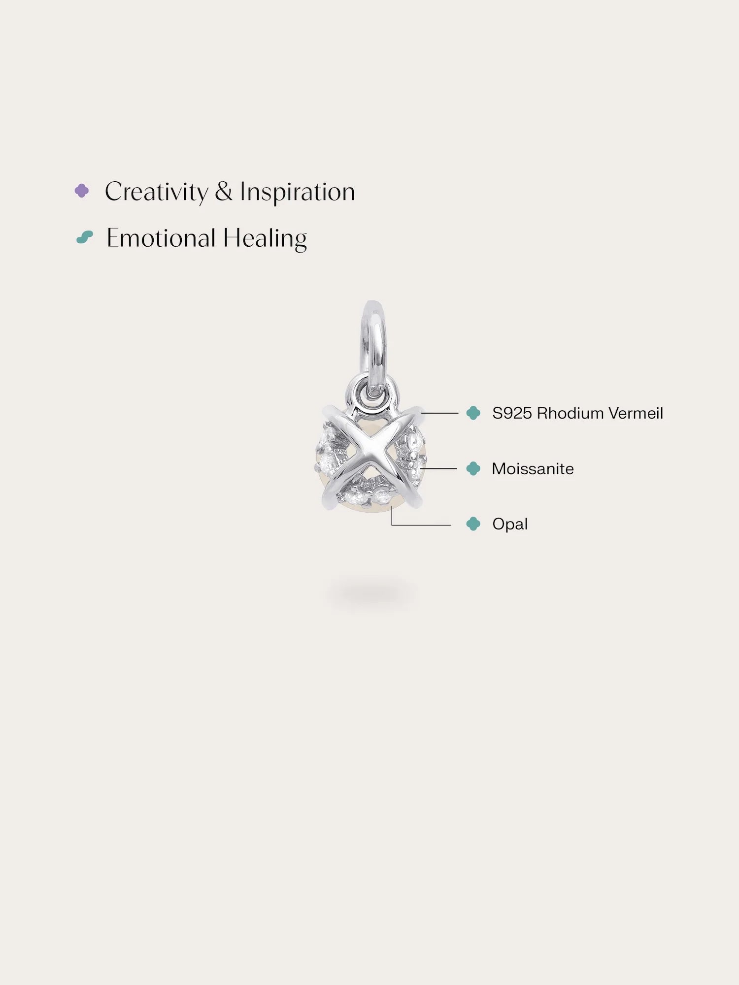 This charm features a natural opal, set in a design inspired by a classic symbol representing love and connection.
