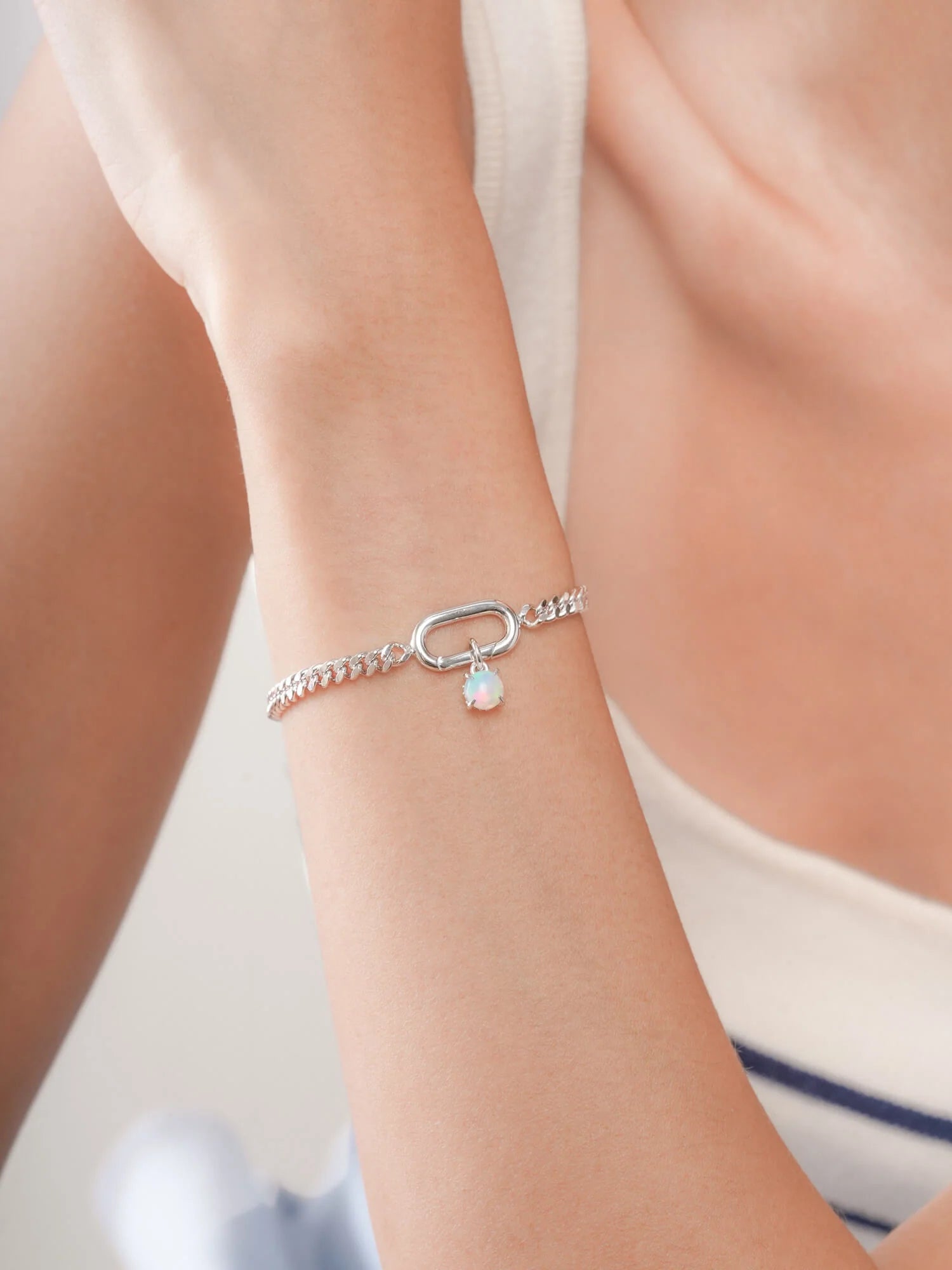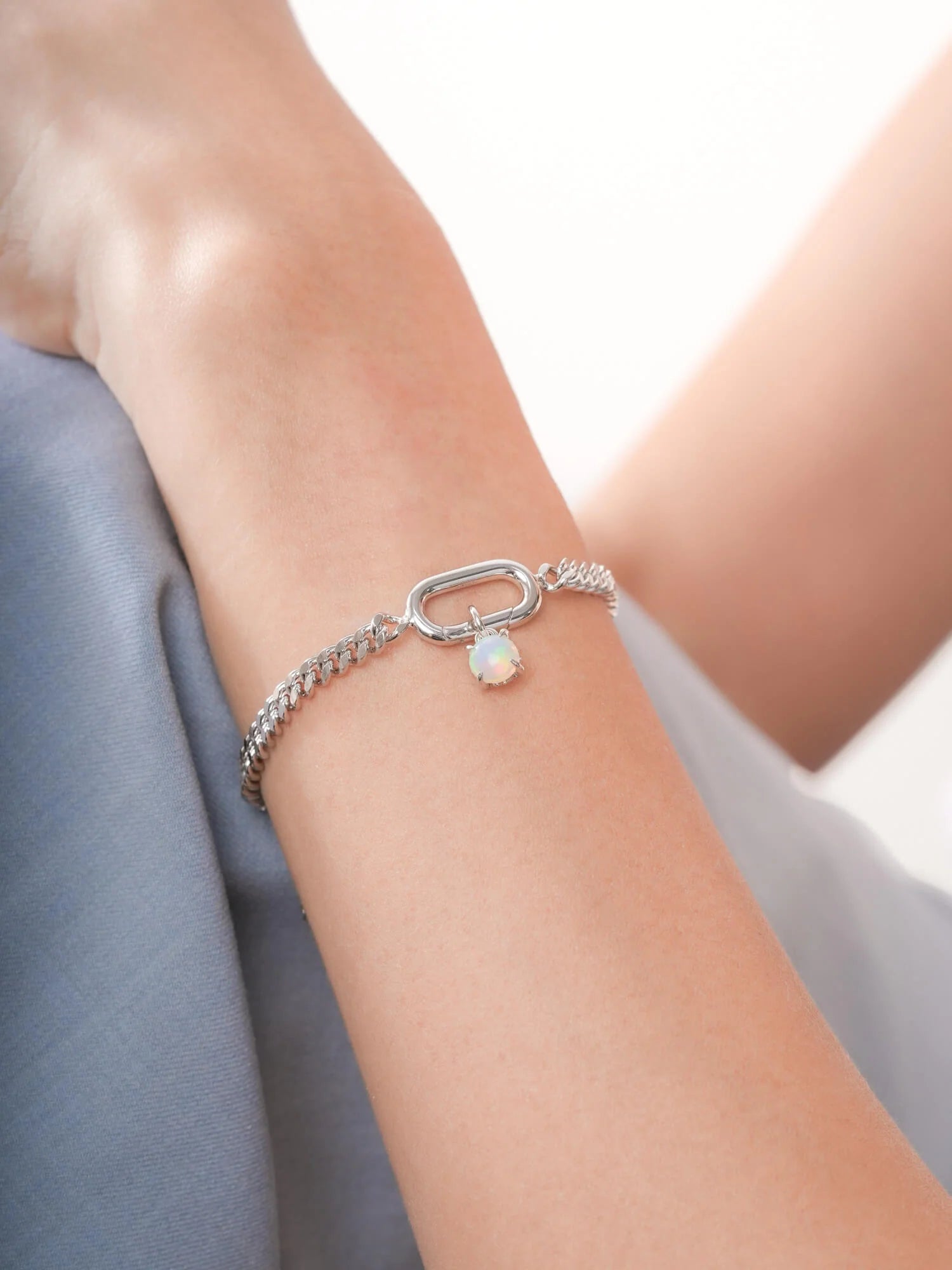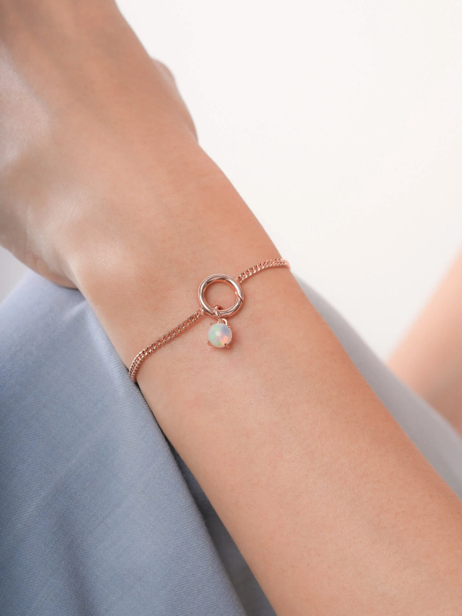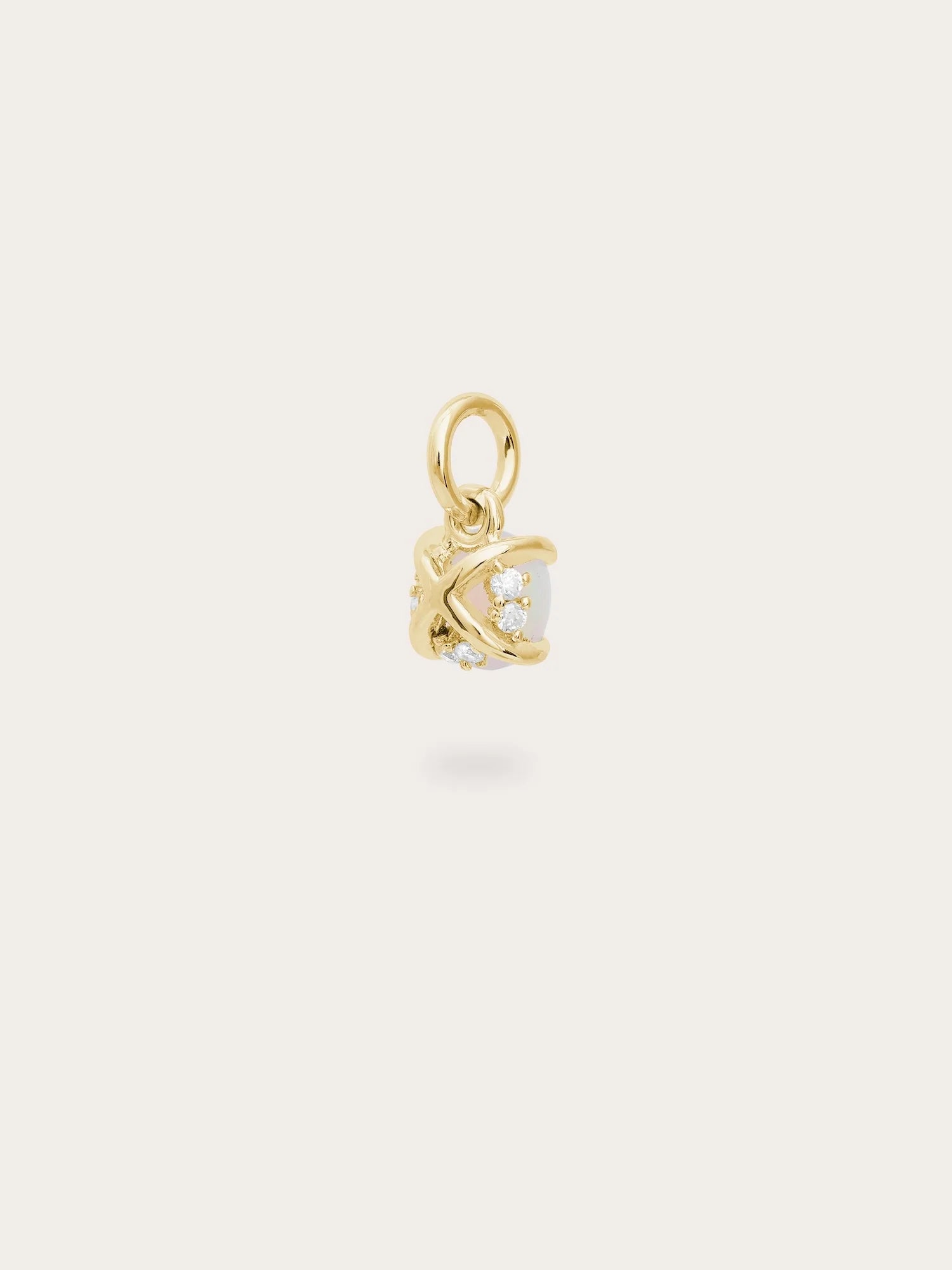 This charm features a natural opal, set in a design inspired by a classic symbol representing love and connection.
