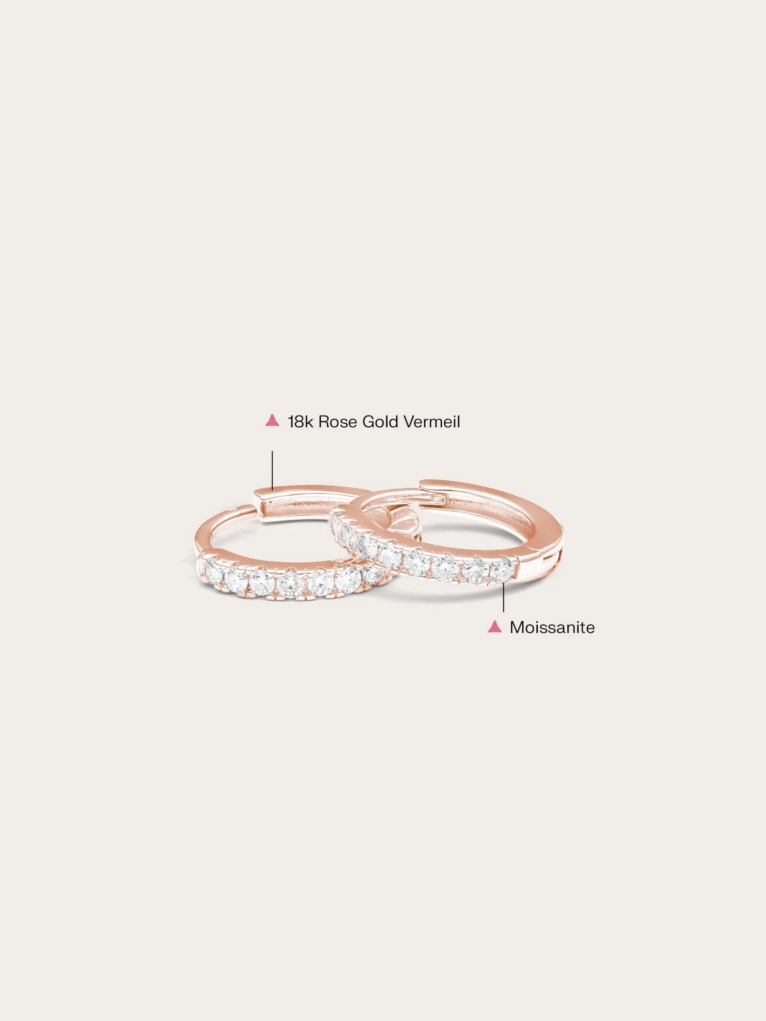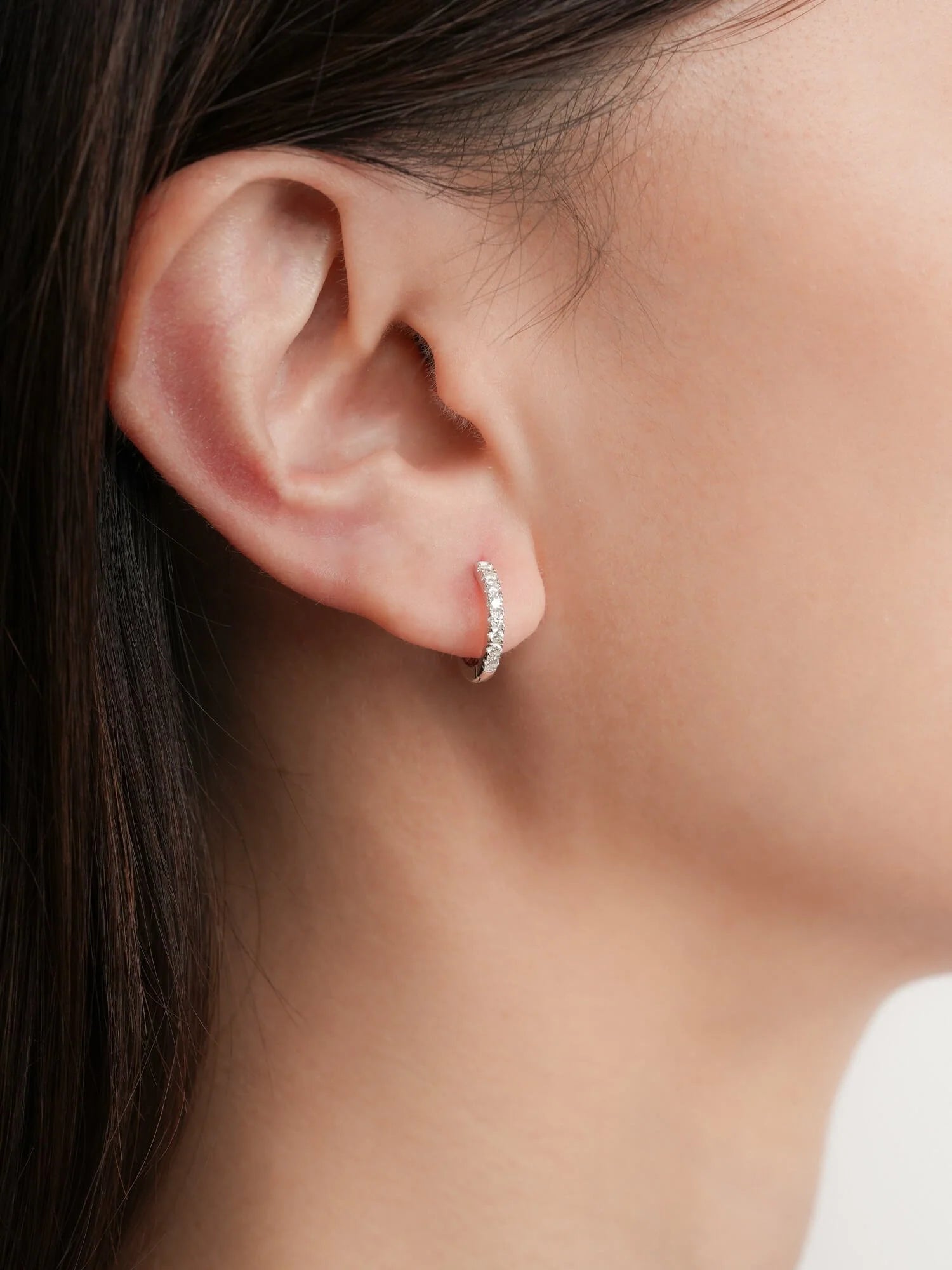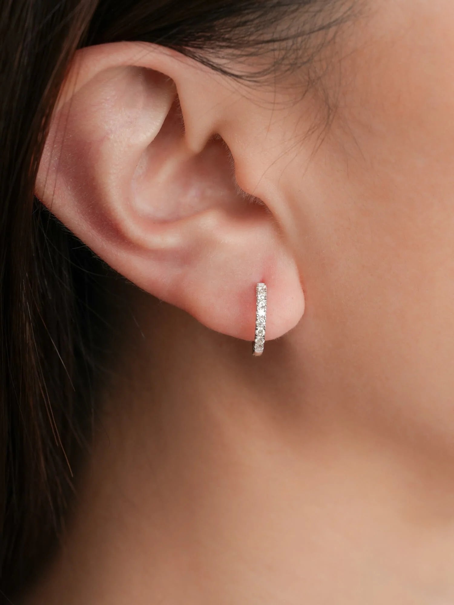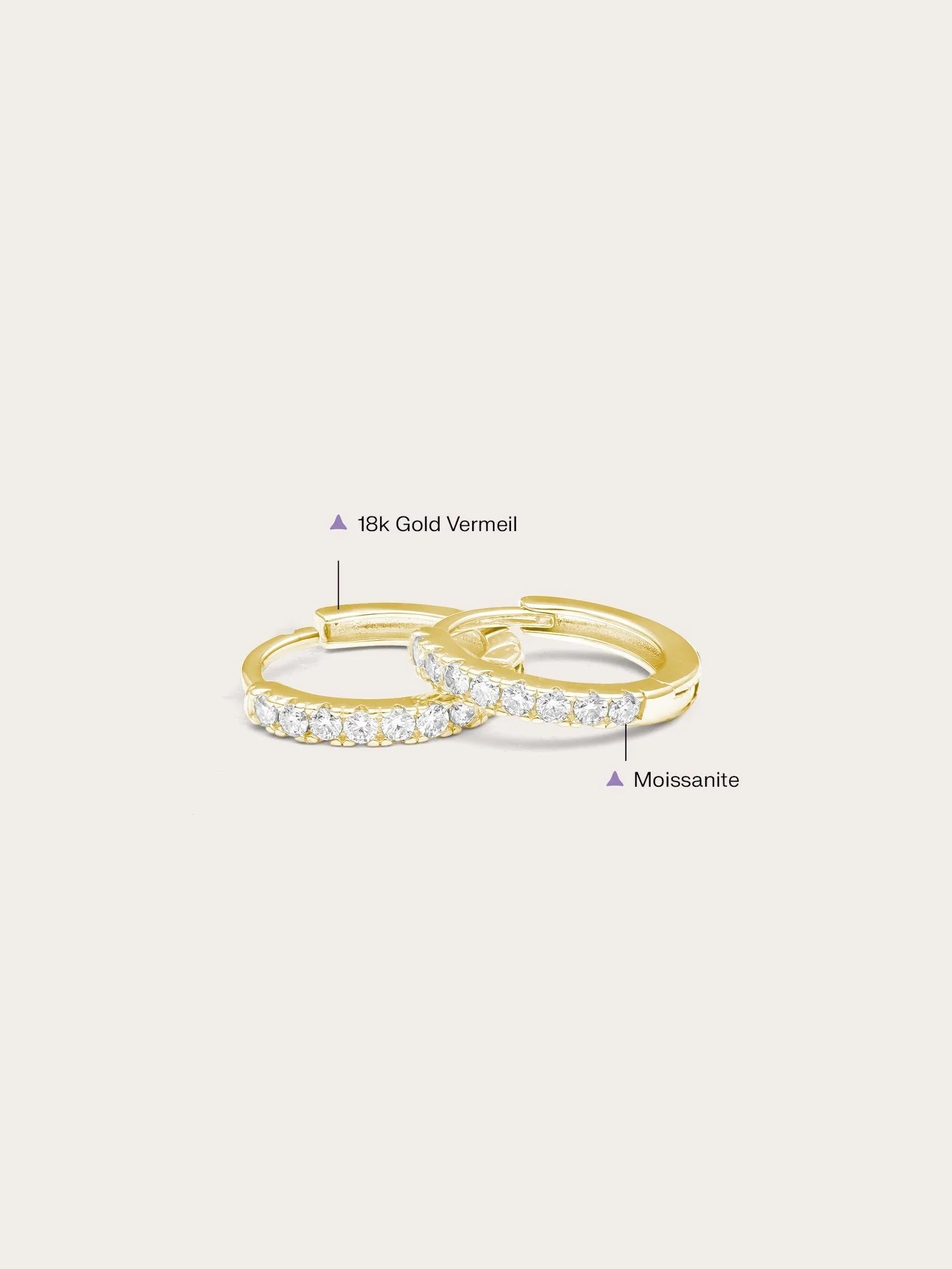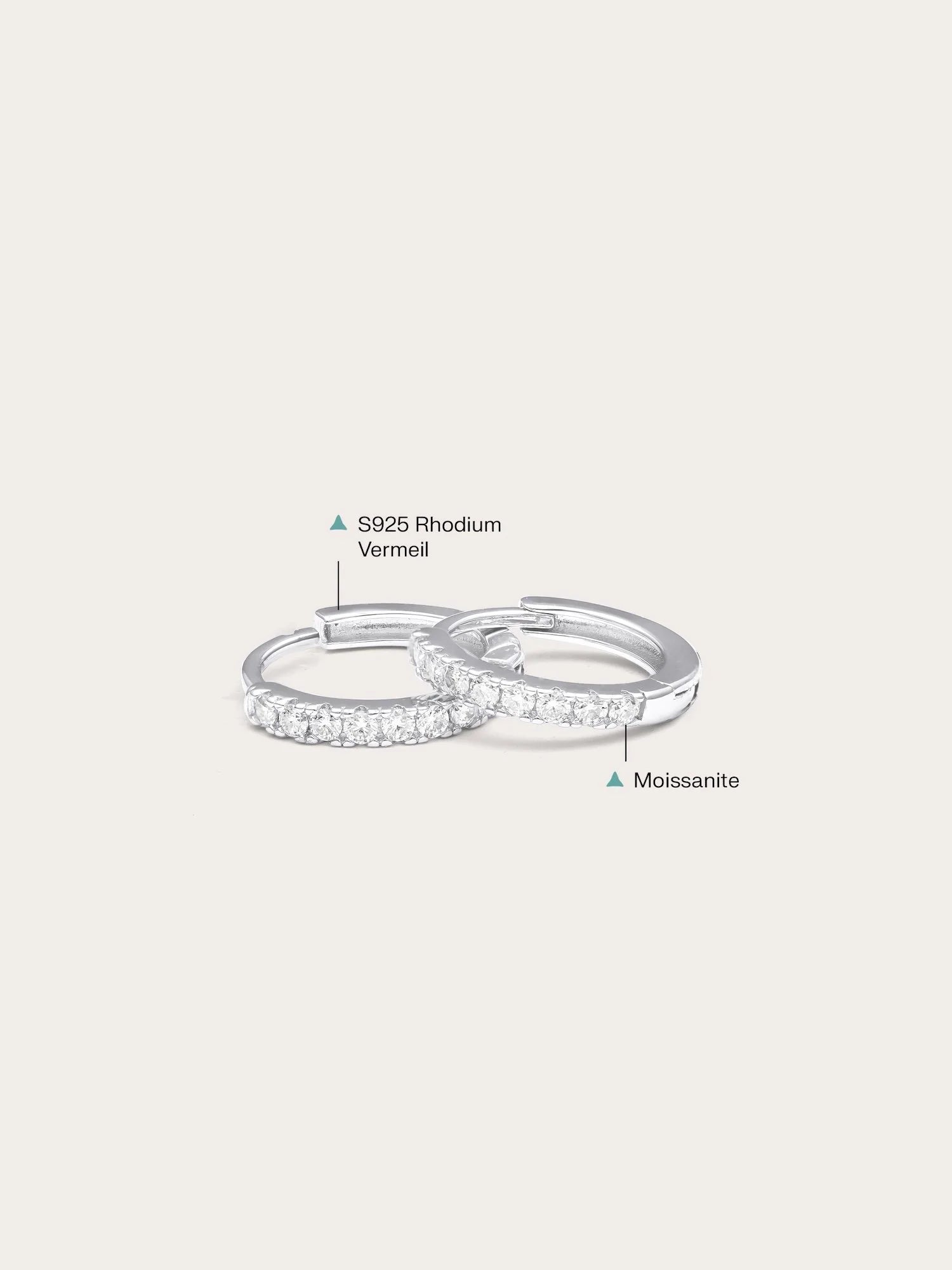 The Pavé Moissanite Huggie Earrings are the perfect everyday earrings. Featuring brilliant moissanites, these earrings are perfectly sized to fit comfortably around your ear lopes so you can wear them all day, even to sleep. Handcrafted in S925 rhodium vermeil.