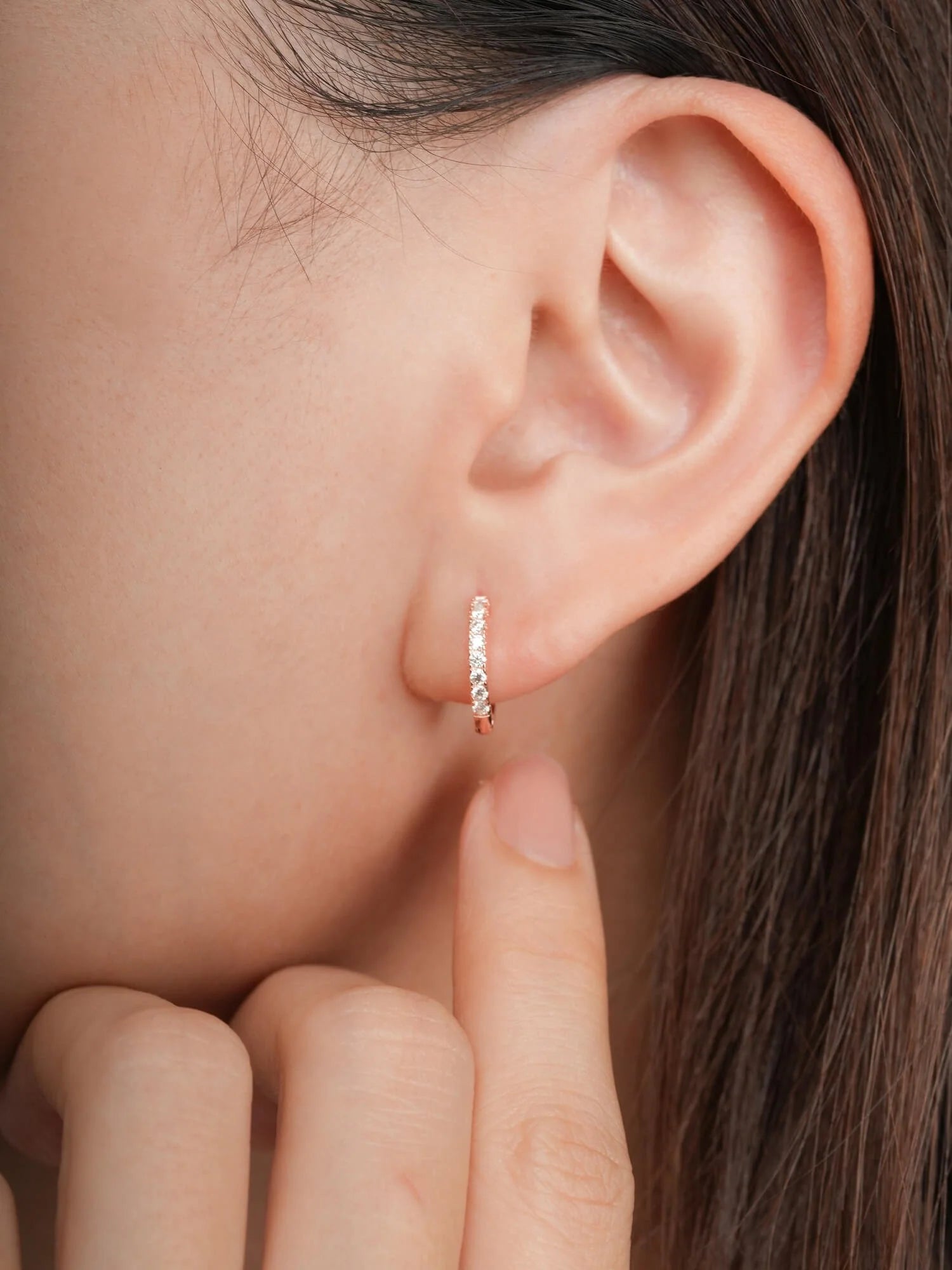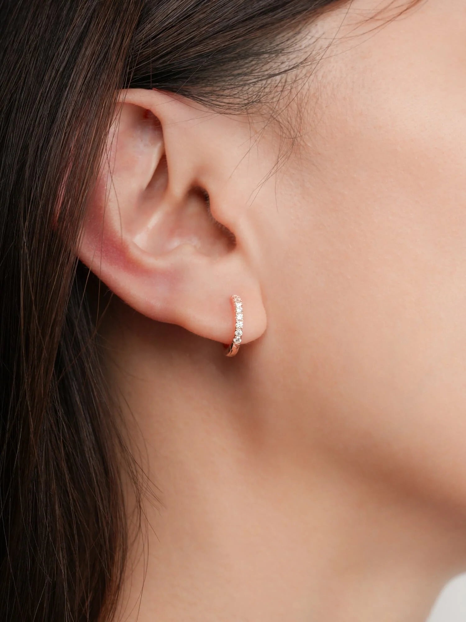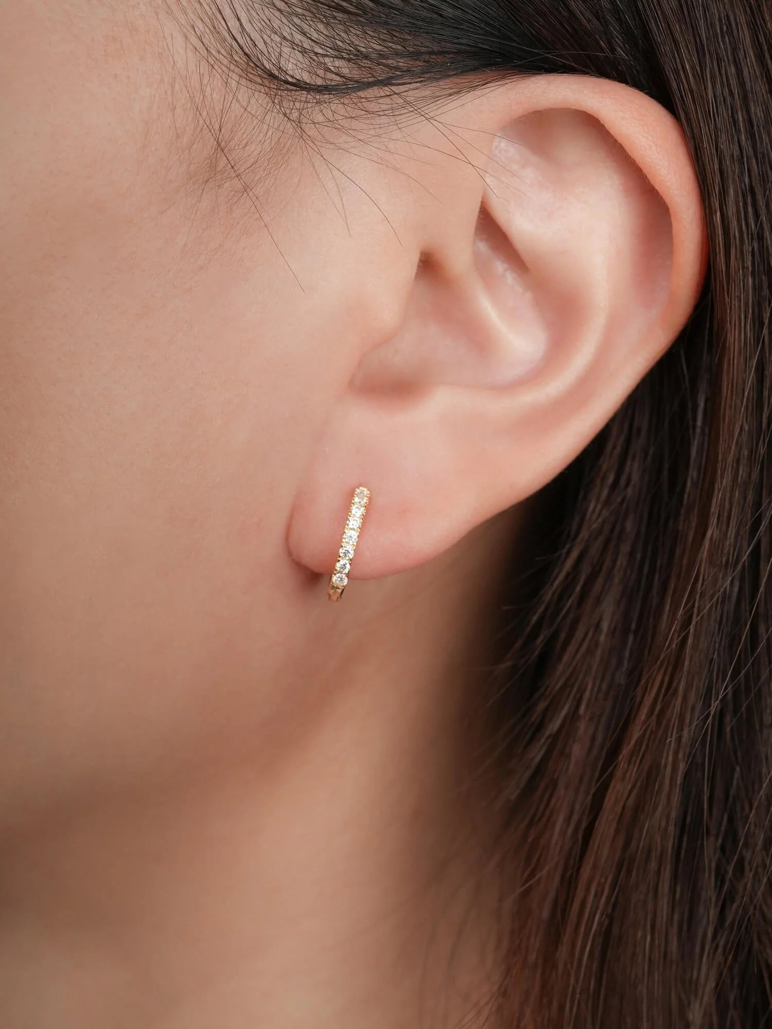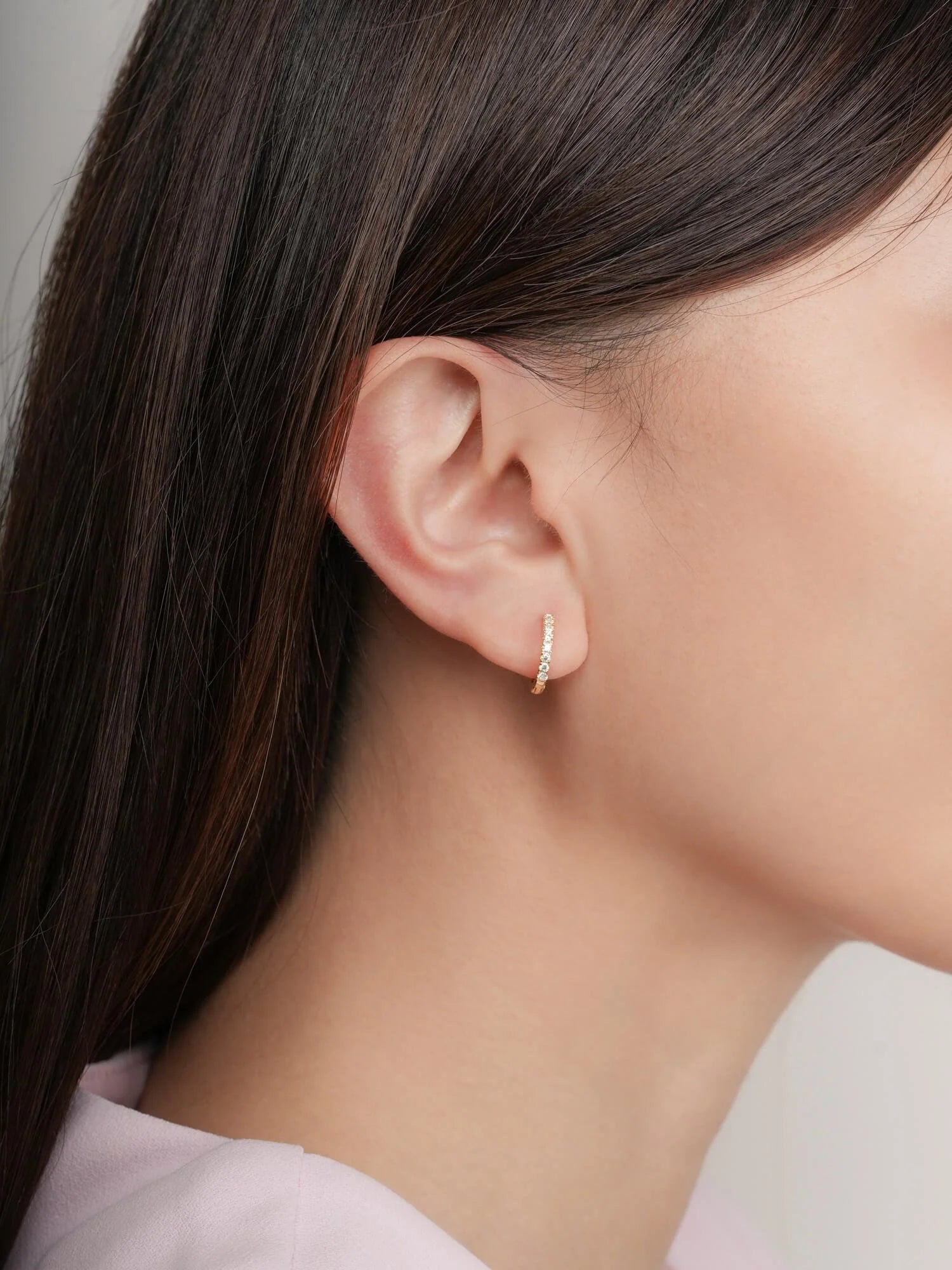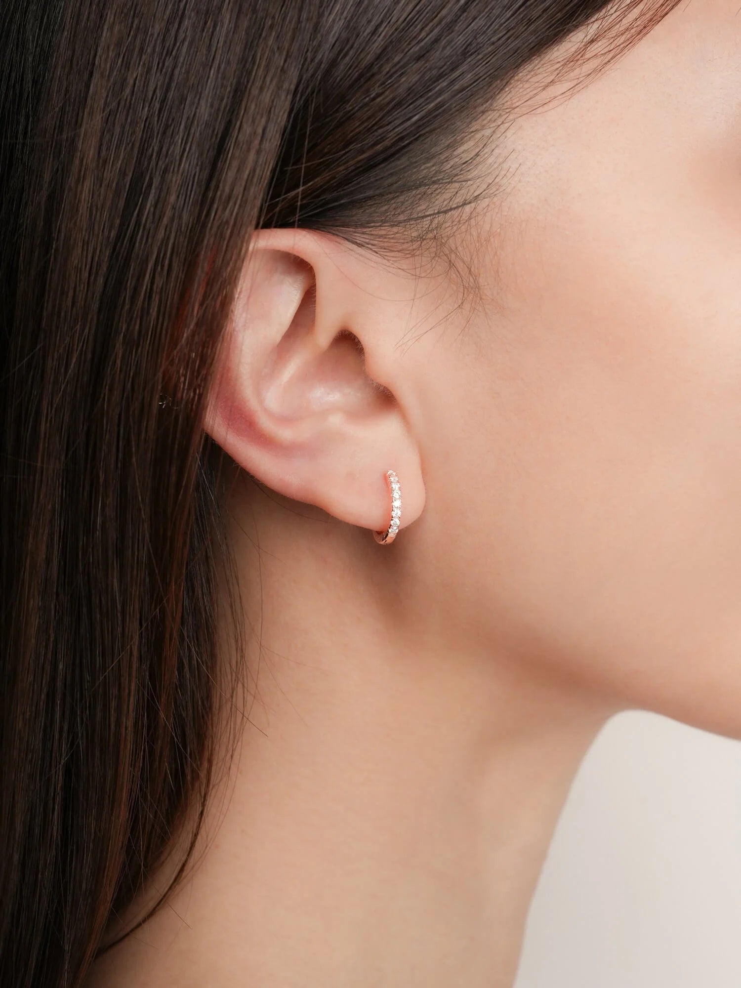 The Pavé Moissanite Huggie Earrings are the perfect everyday earrings. Featuring brilliant moissanites, these earrings are perfectly sized to fit comfortably around your ear lopes so you can wear them all day, even to sleep. Handcrafted in S925 rhodium vermeil.