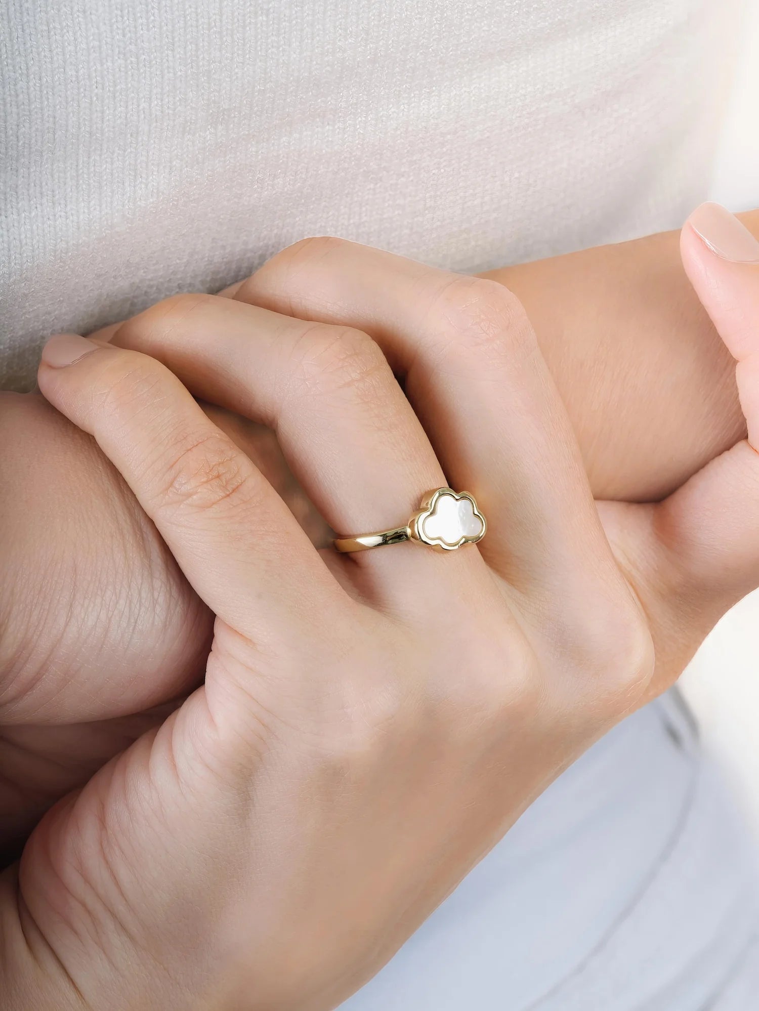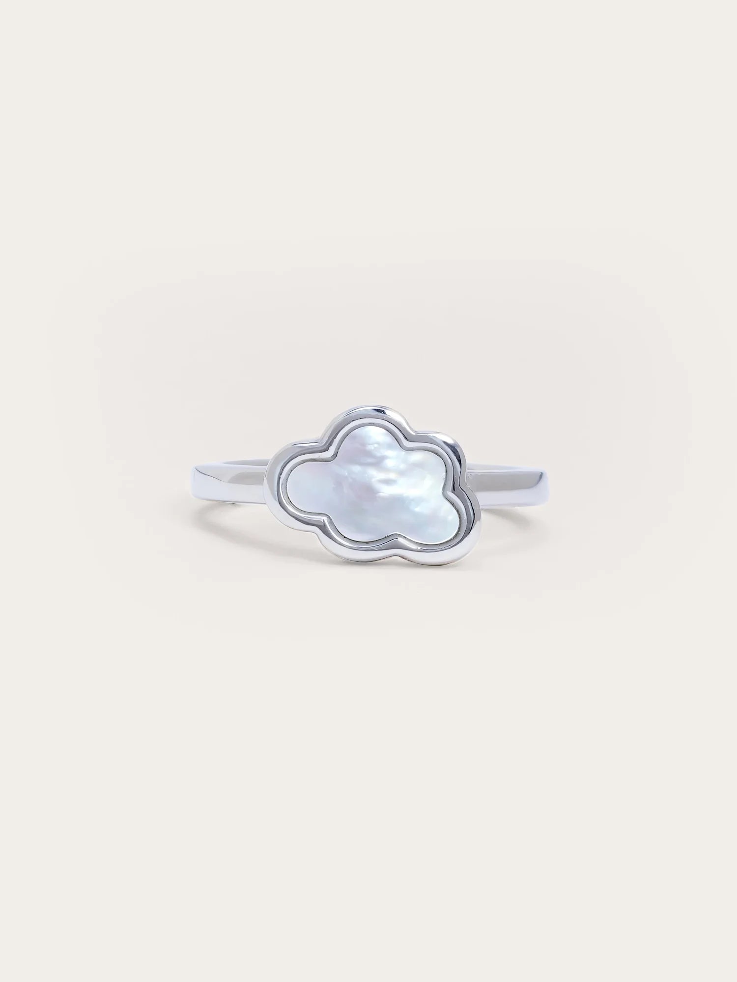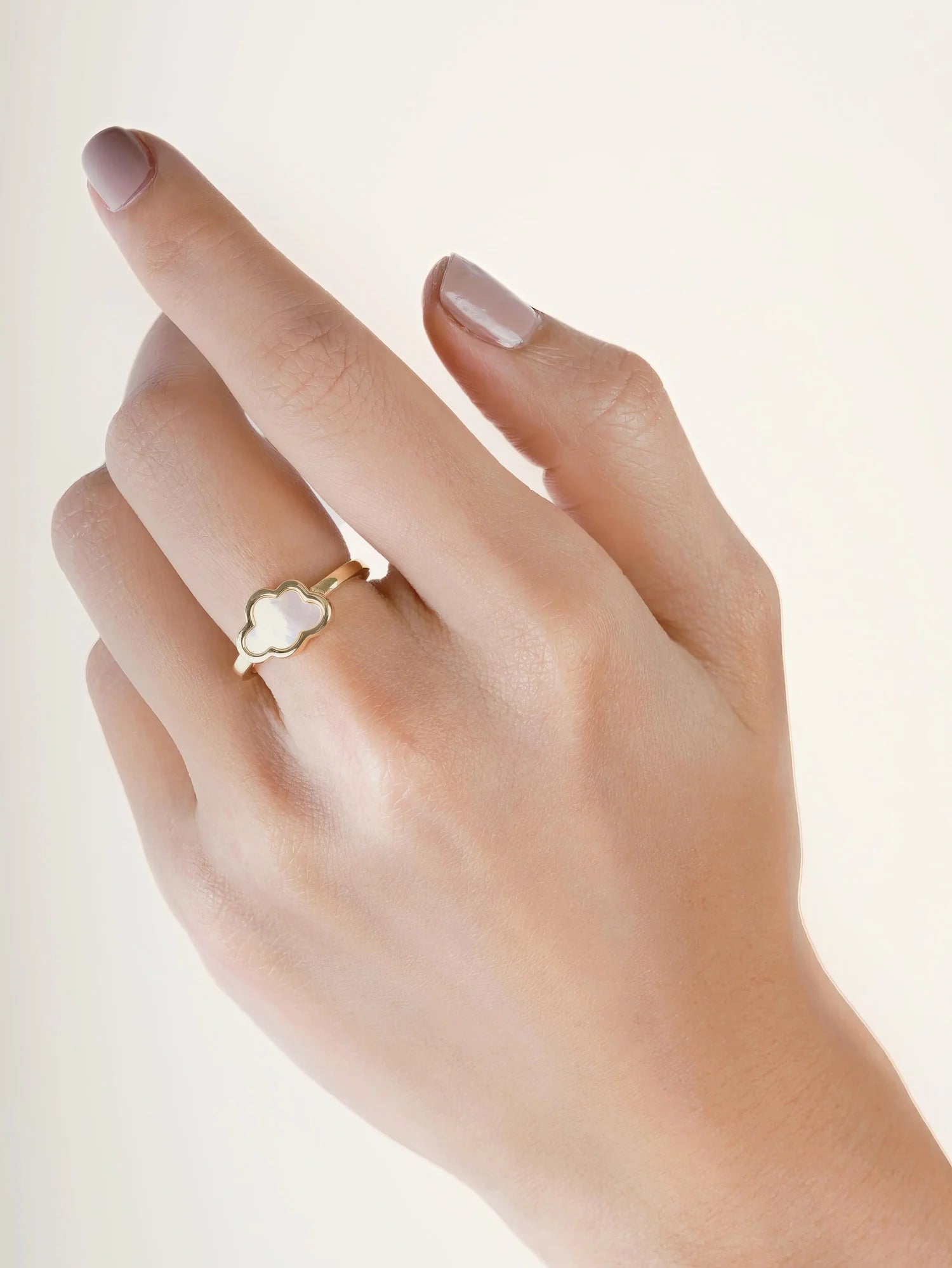 This Pearl Cloud Ring is made from shiny mother of pearl, suitable for both daily wear and formal evenings. It is hand - crafted with a type of silver plating.