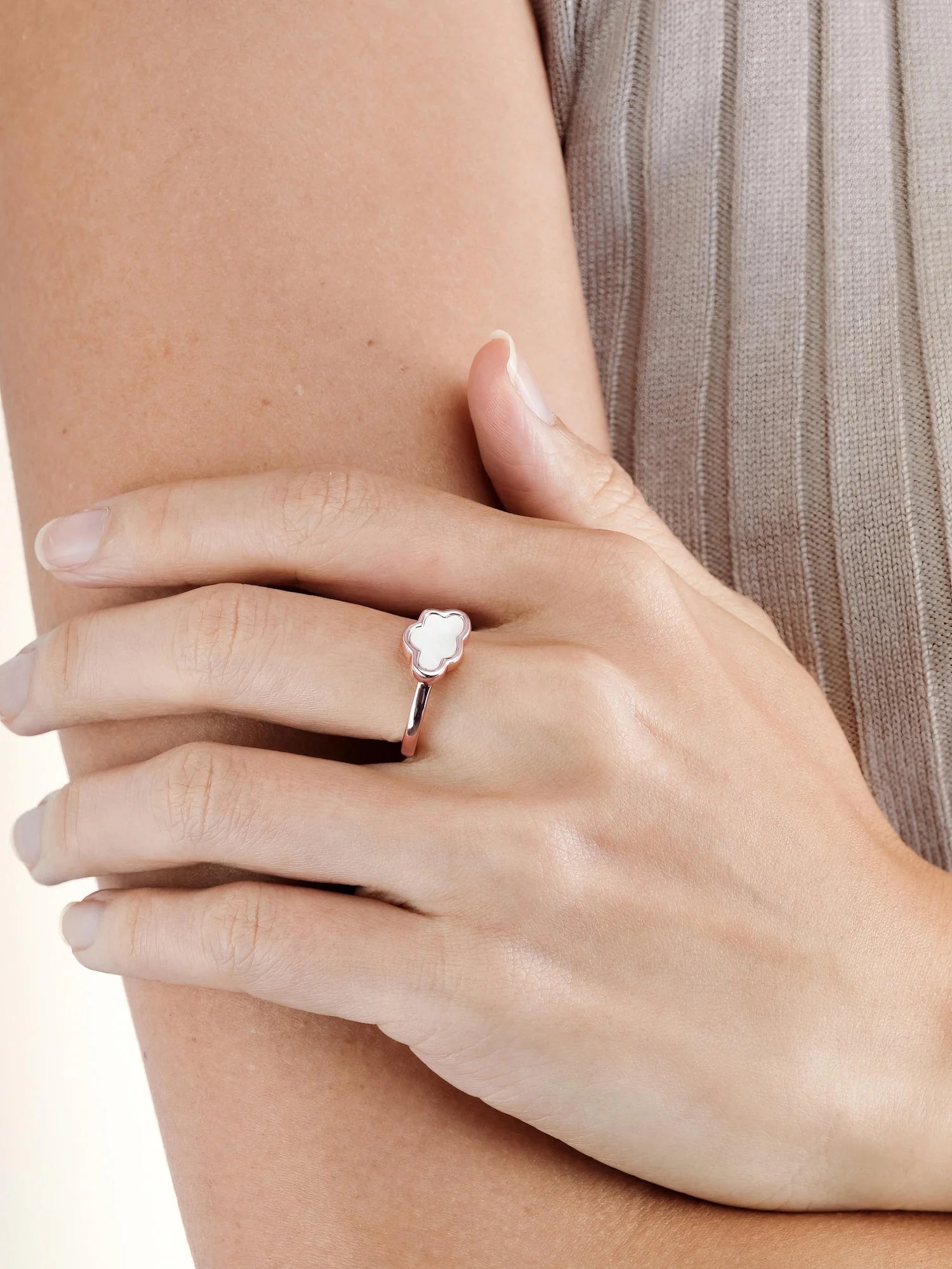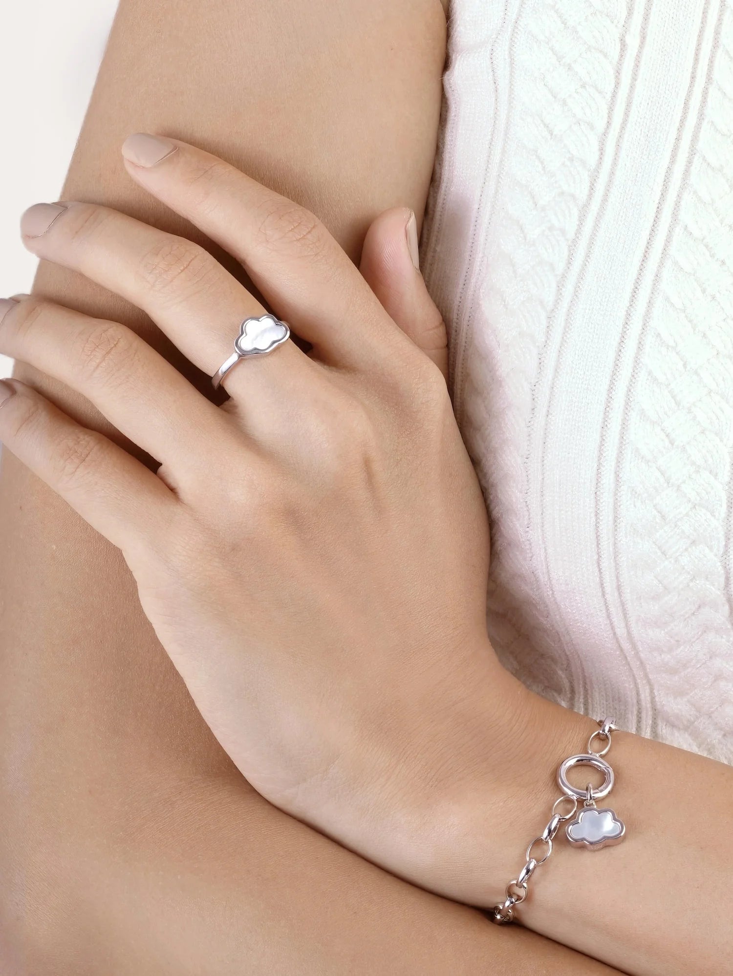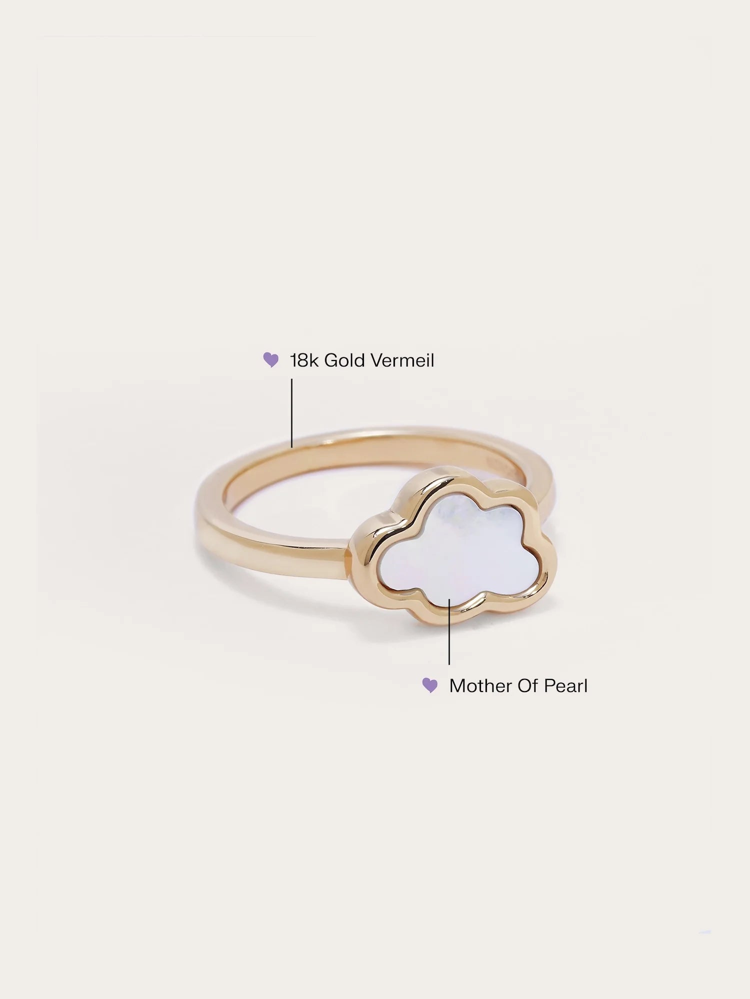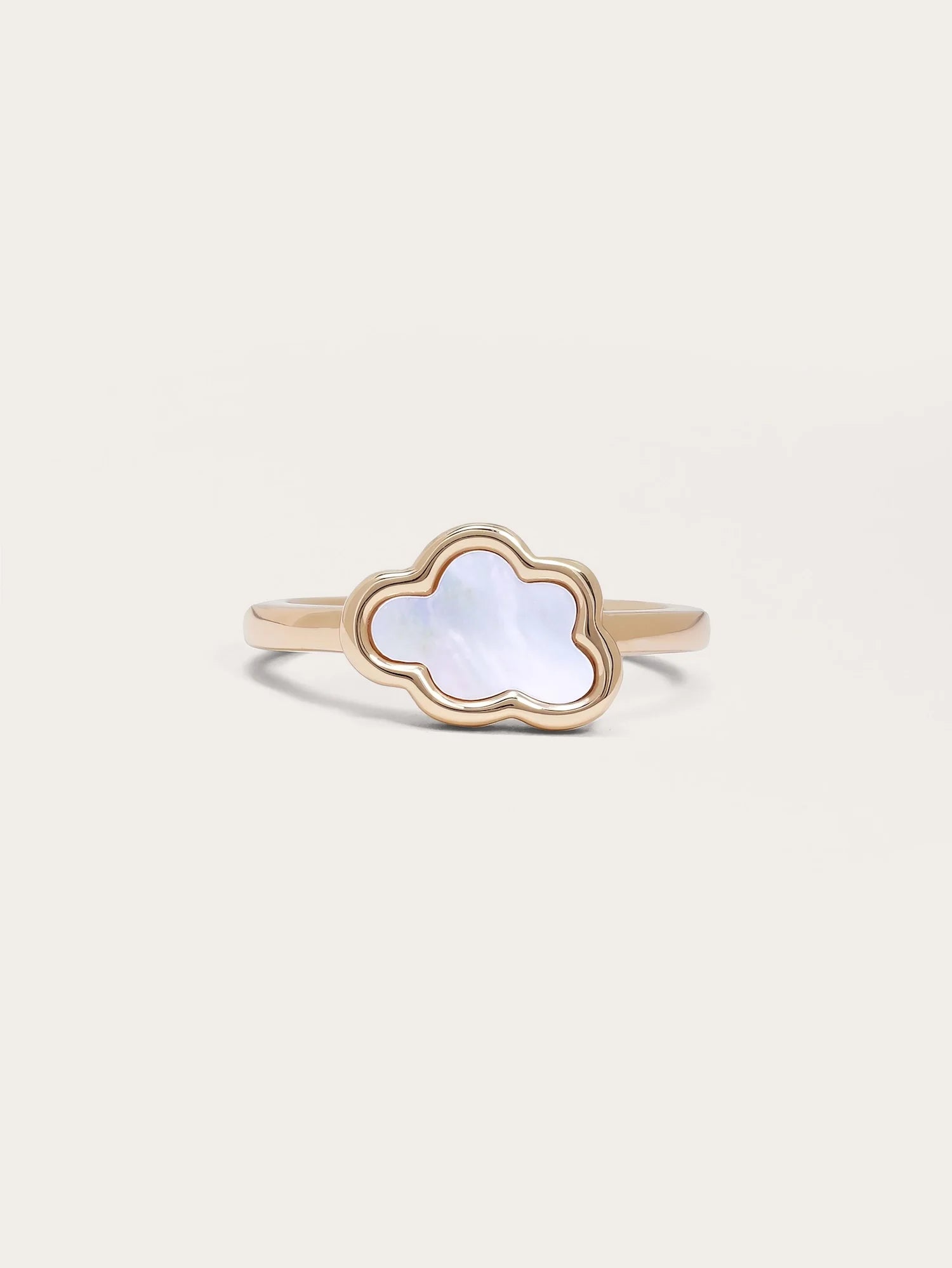 This Pearl Cloud Ring is made from shiny mother of pearl, suitable for both daily wear and formal evenings. It is hand - crafted with a type of silver plating.